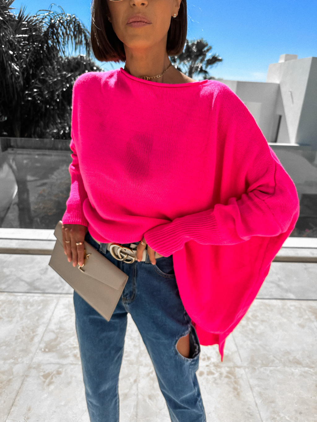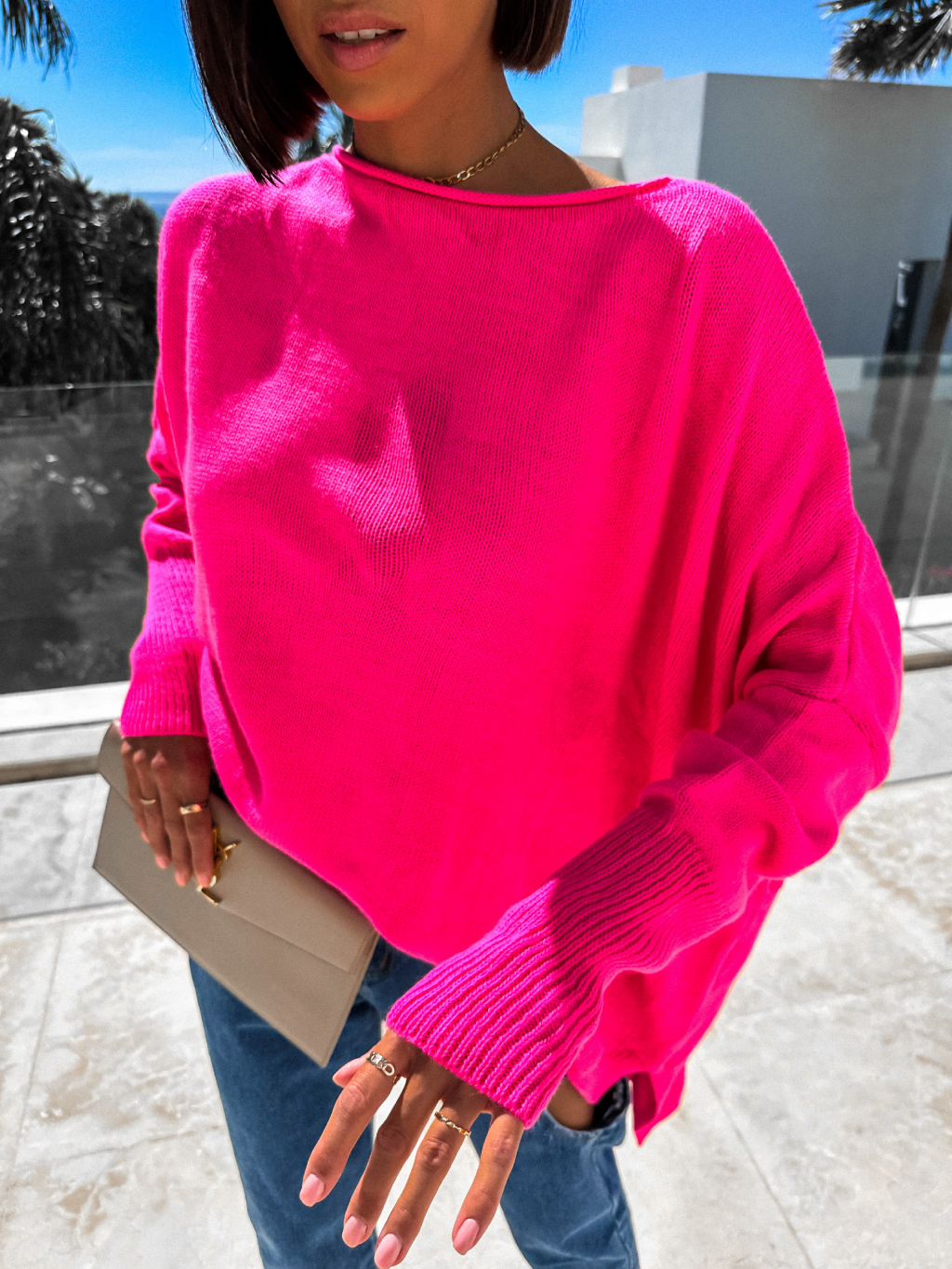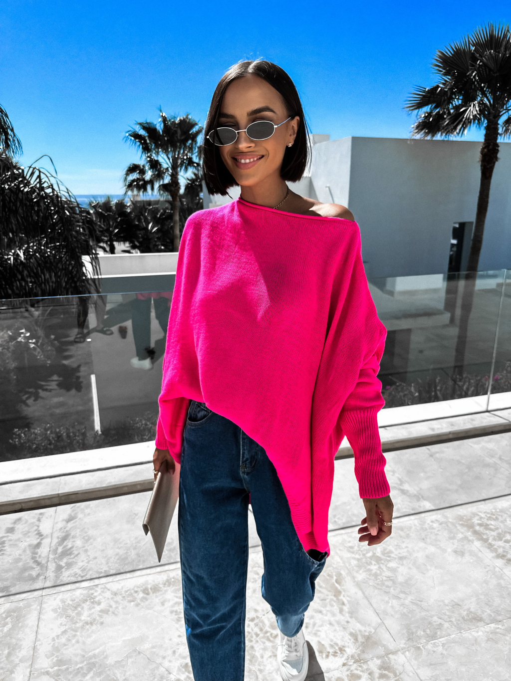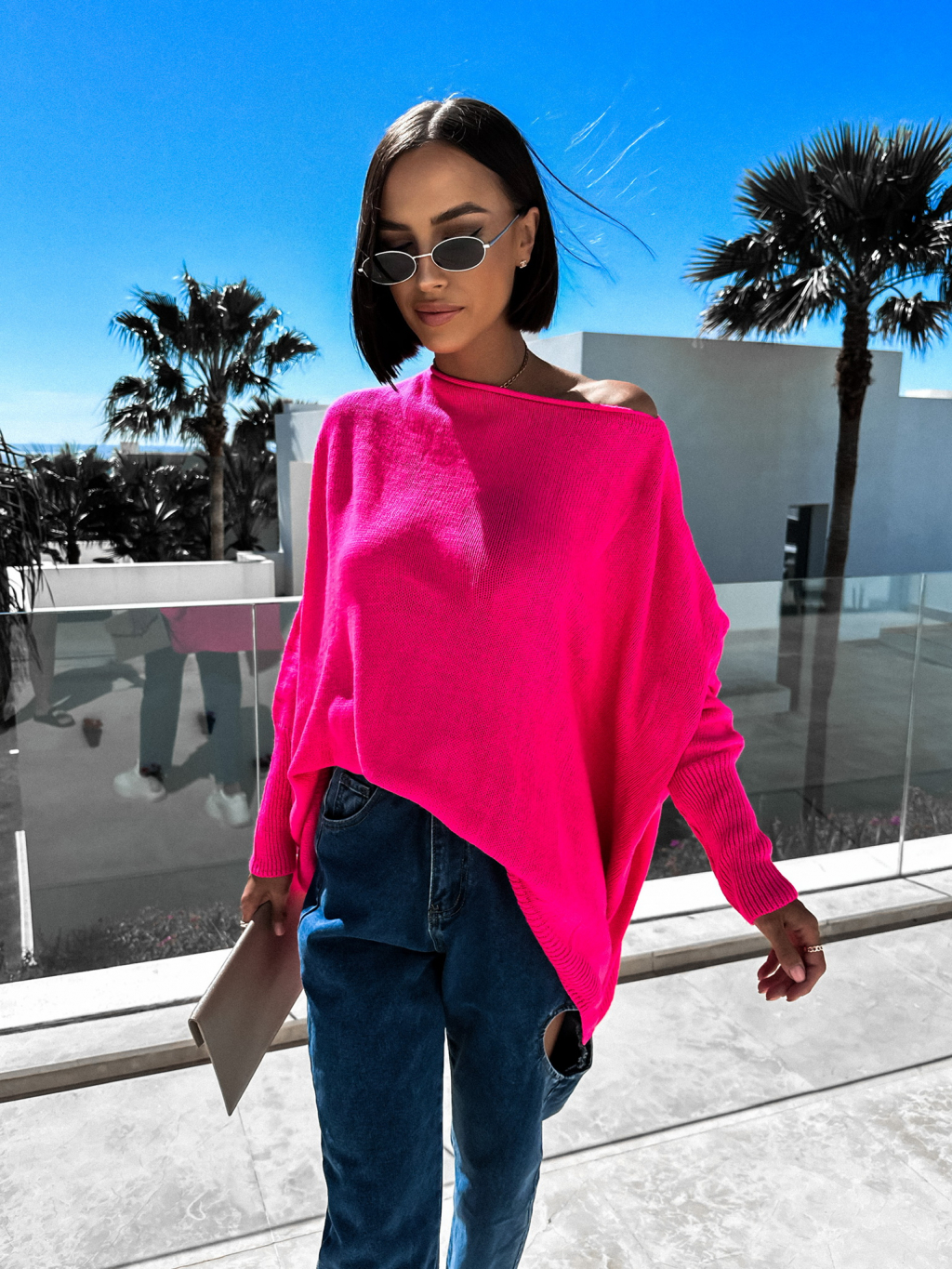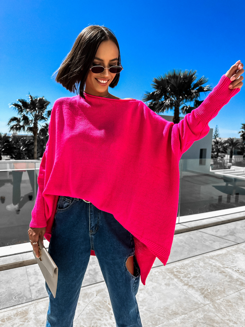 Růžový delší svetr SERENITY s dlouhým rukávem