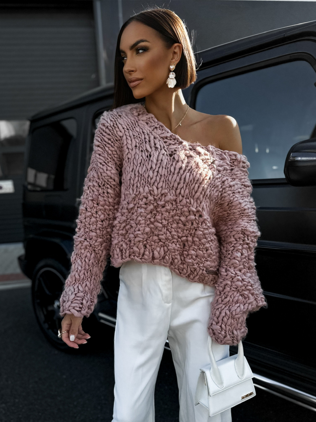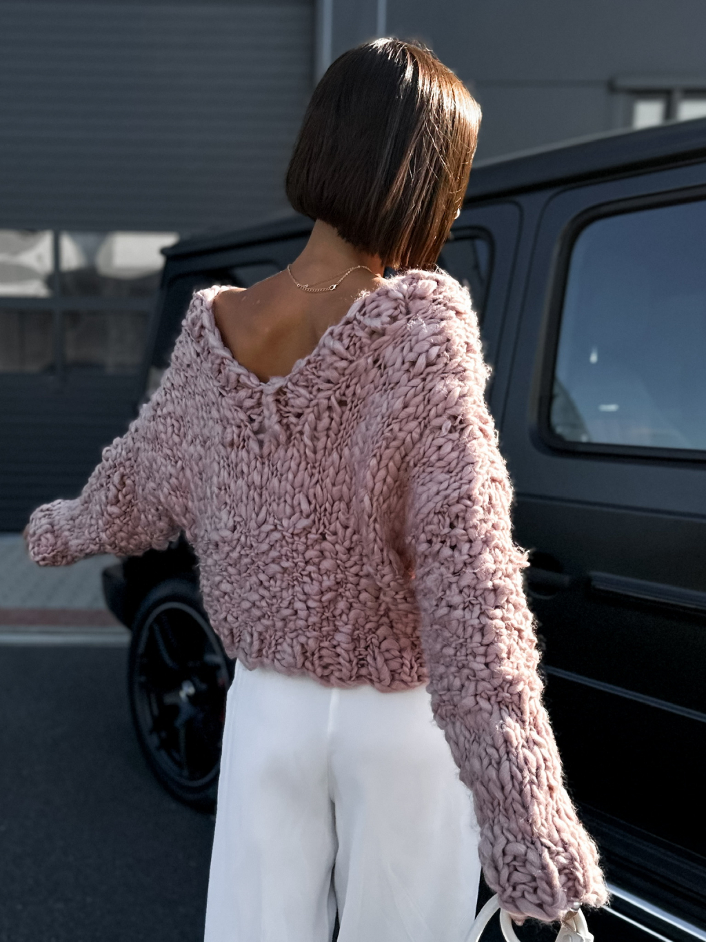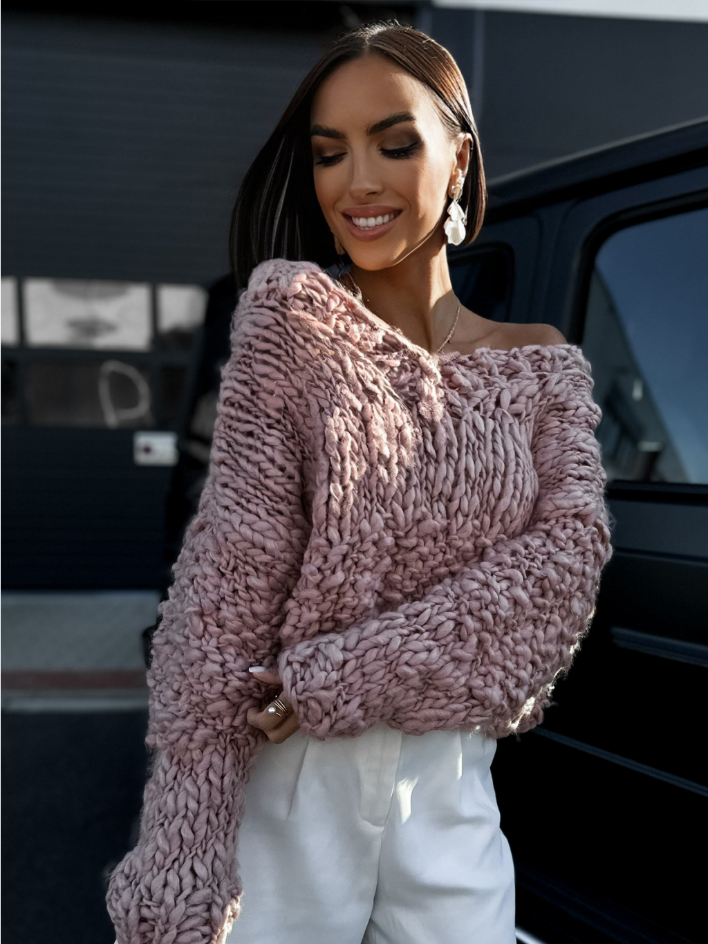 Růžový krátký pletený svetřík KETRYNS