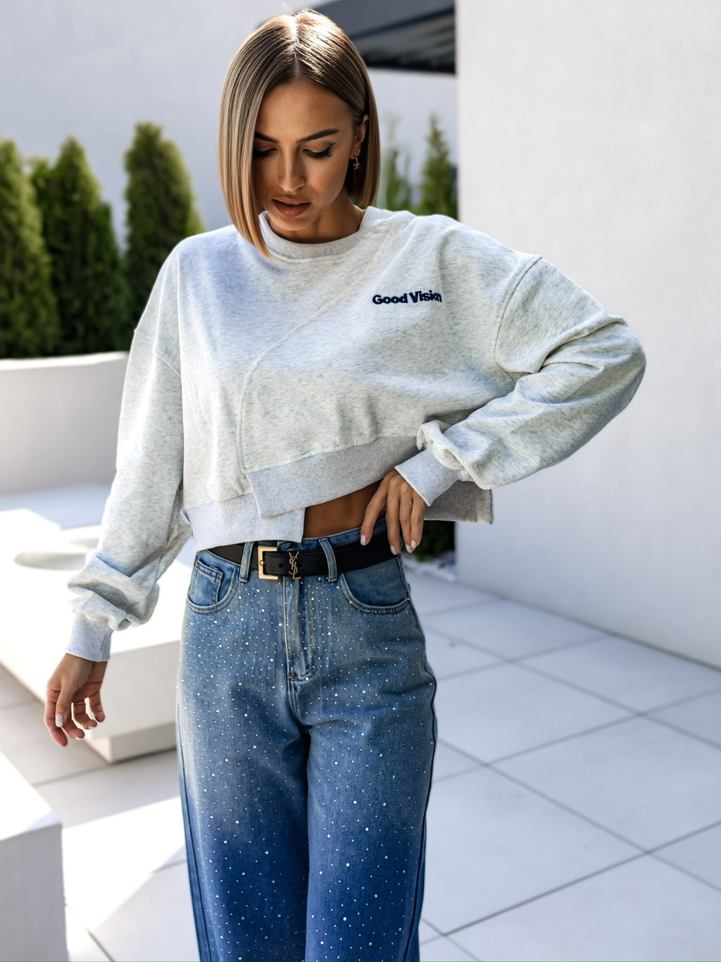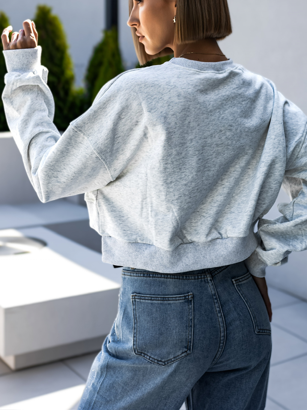 Šedá bavlněná crop mikina WADIE