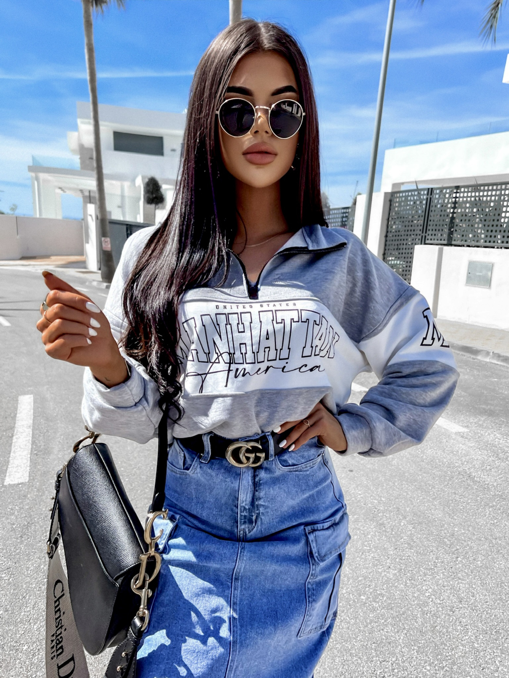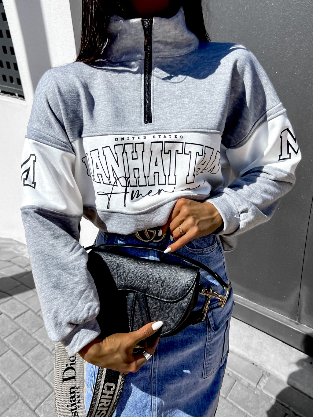 Šedá oversize mikina NESOLI se zipem