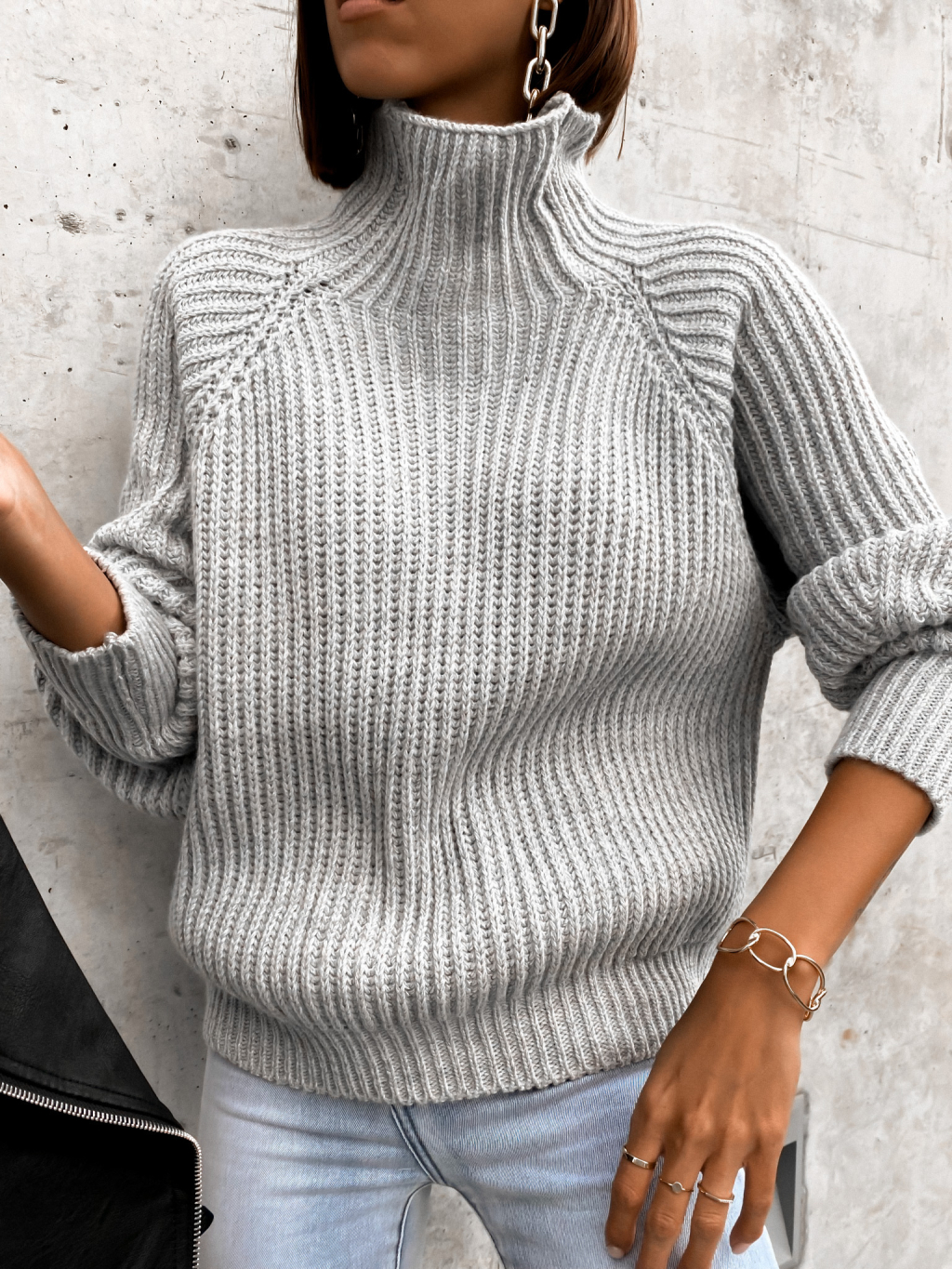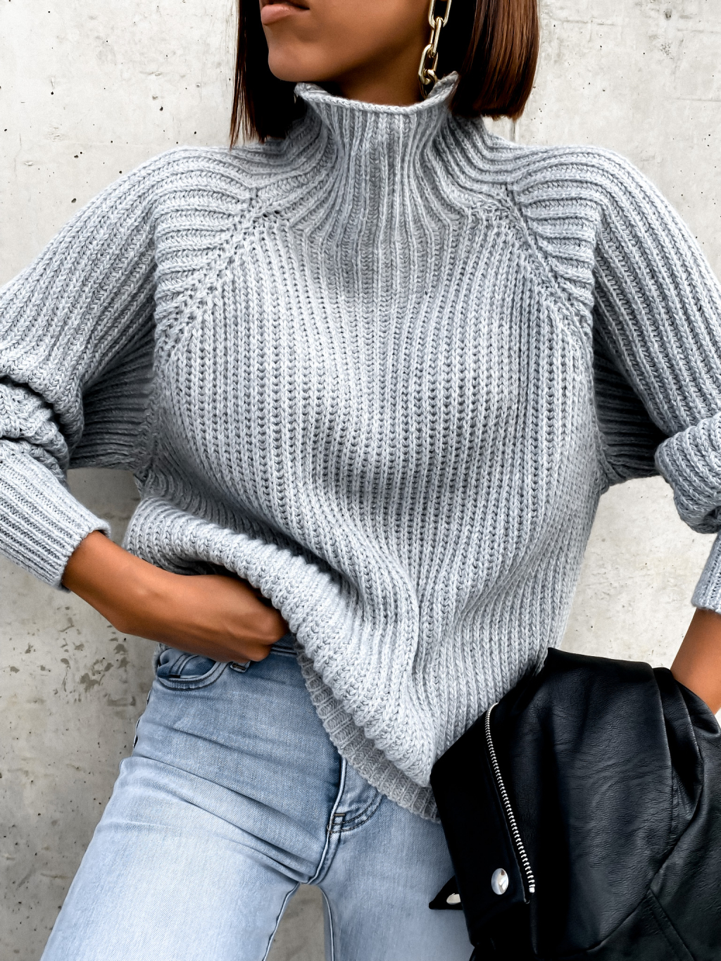 Šedý pletený svetr ALLEGIANCE s volnými rukávy
