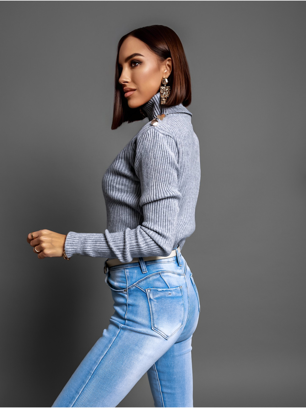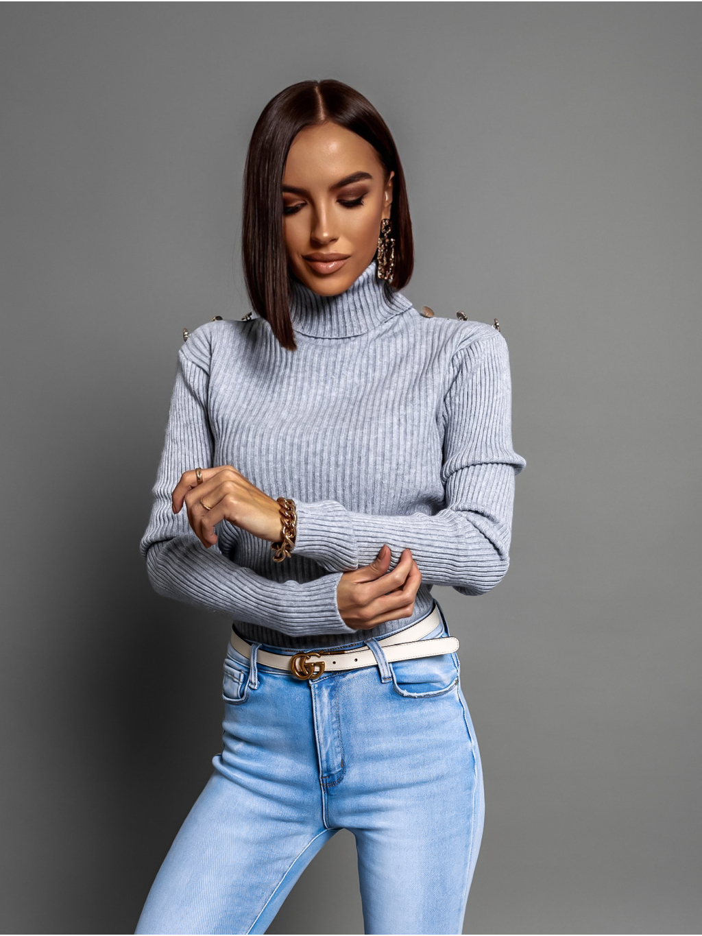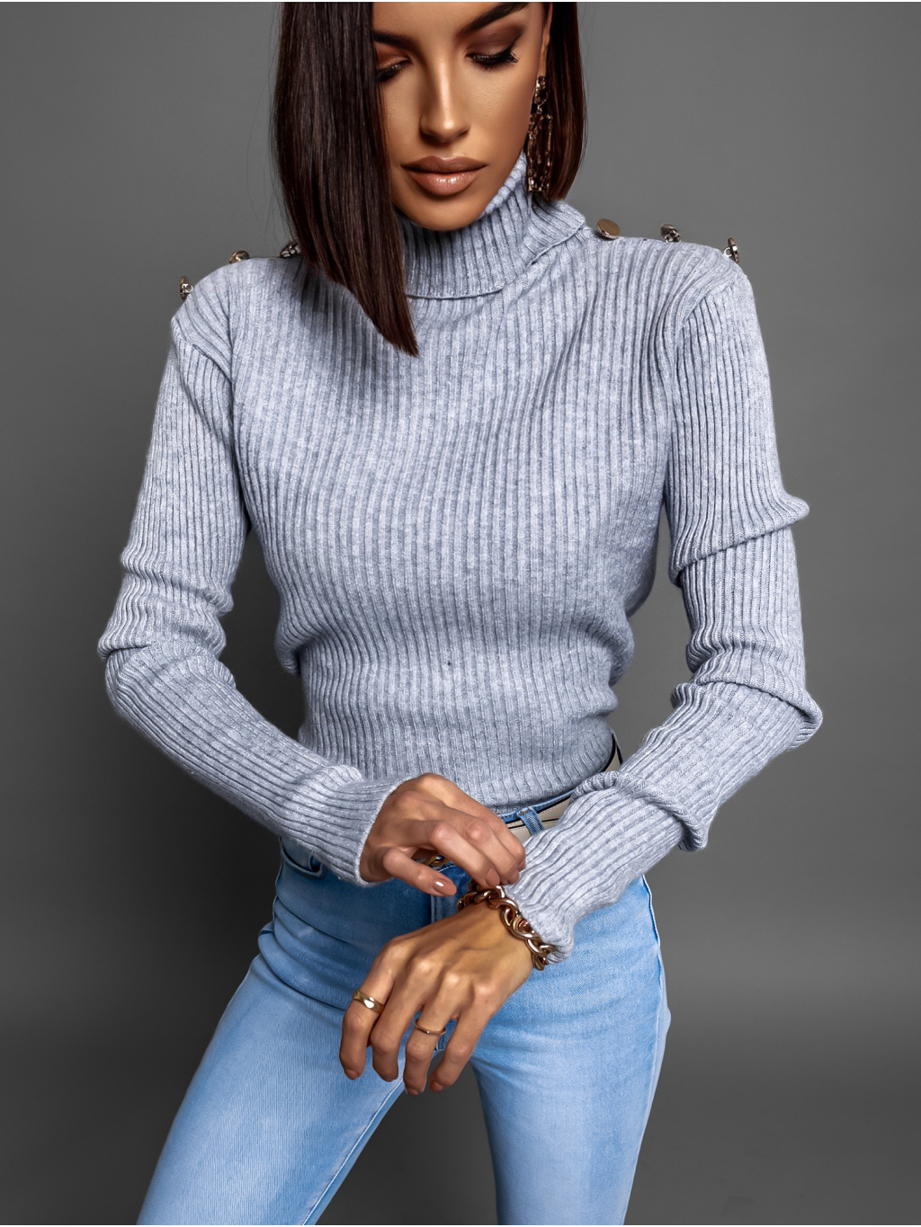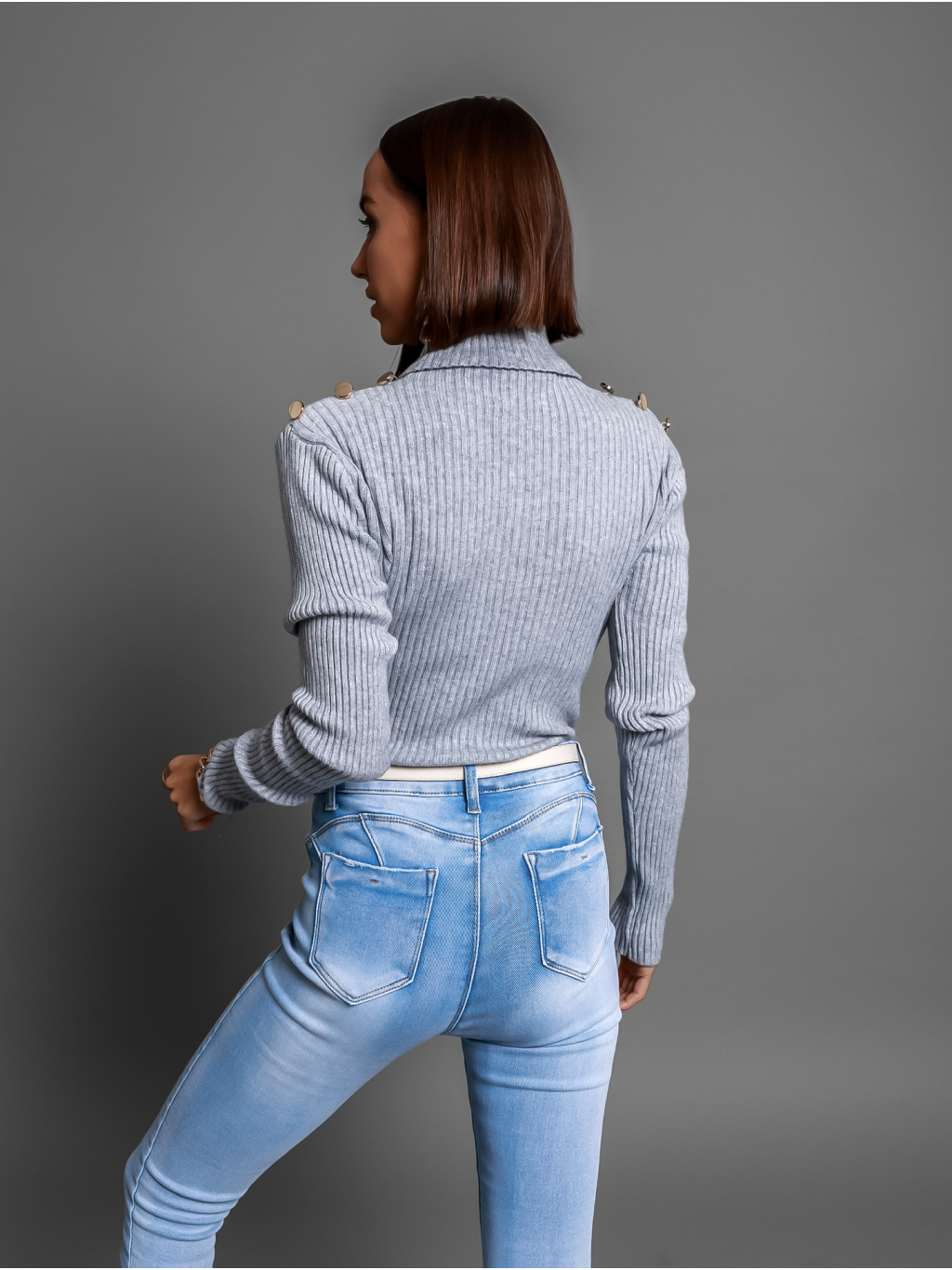 Šedý svetřík CAMEROON se zlatými knoflíky