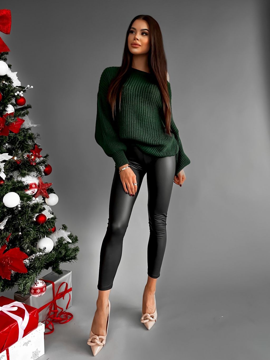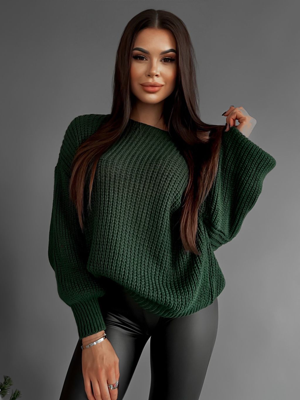 Smaragdový pletený svetr DEITY s volnými rukávy