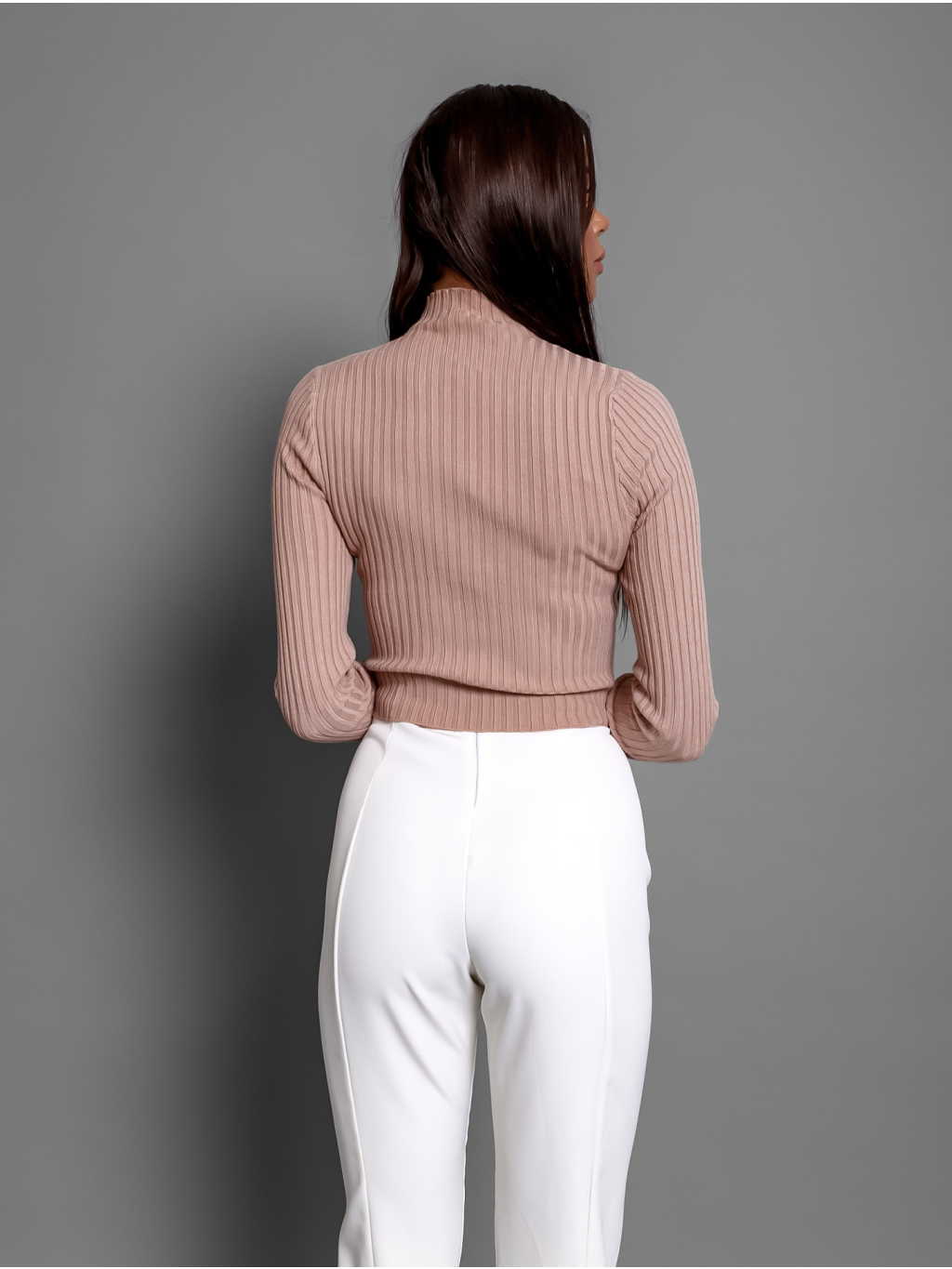 Světle hnědý kratší svetřík VAPOUR se zlatými knoflíky