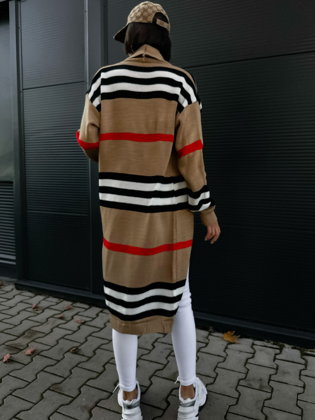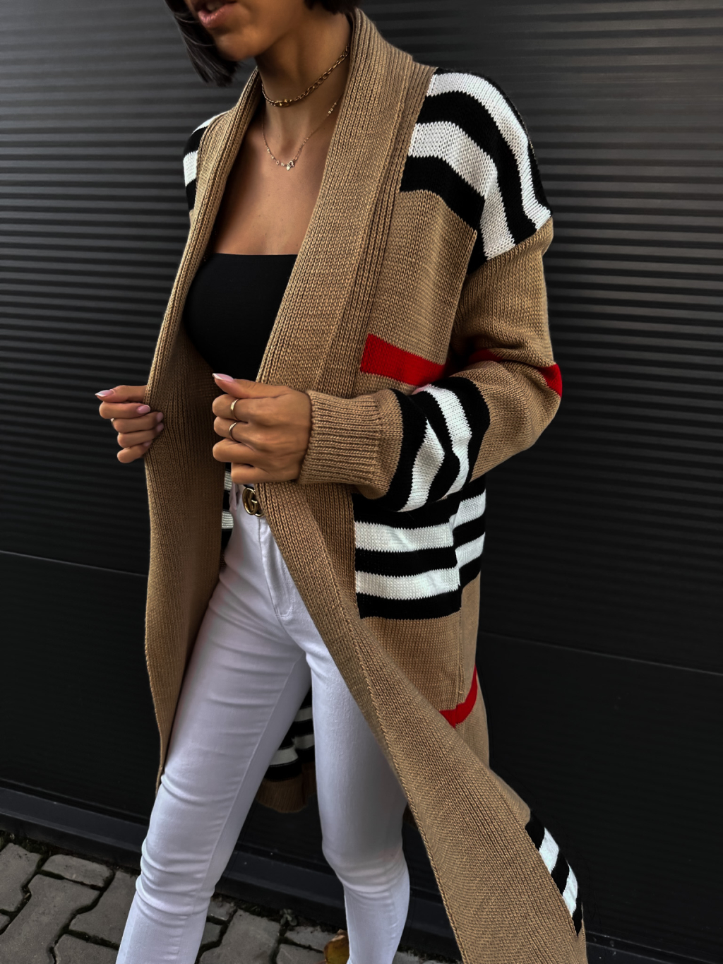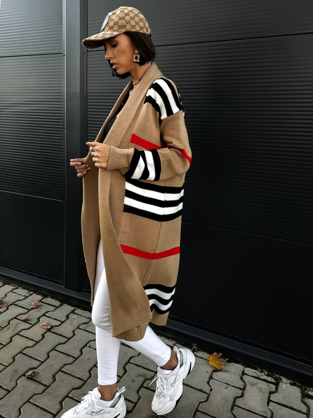 Světle hnědý pletený cardigan ADRIENI s pruhy