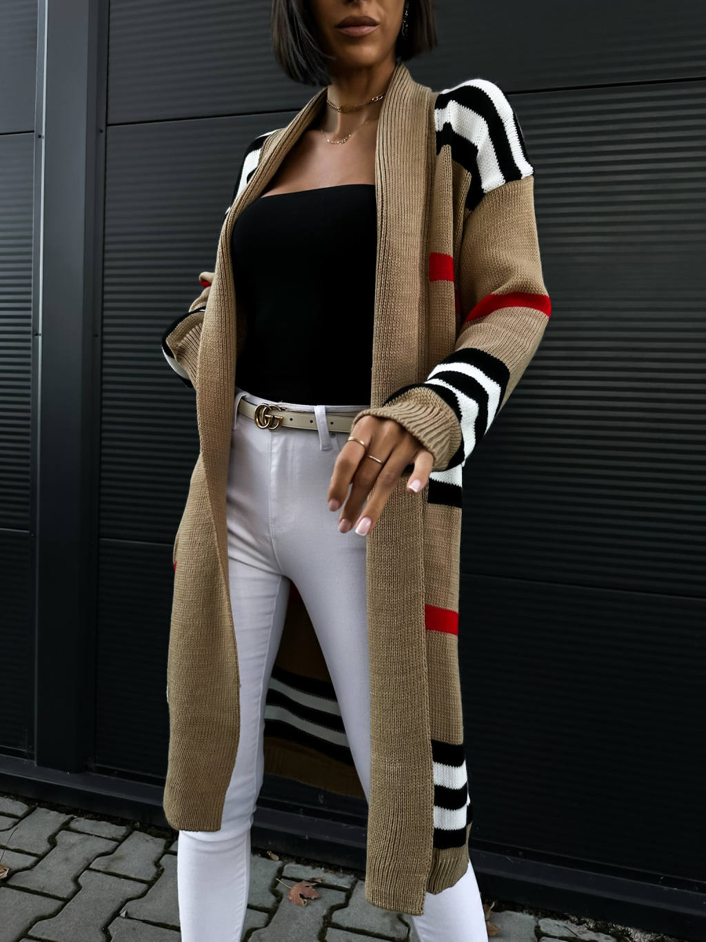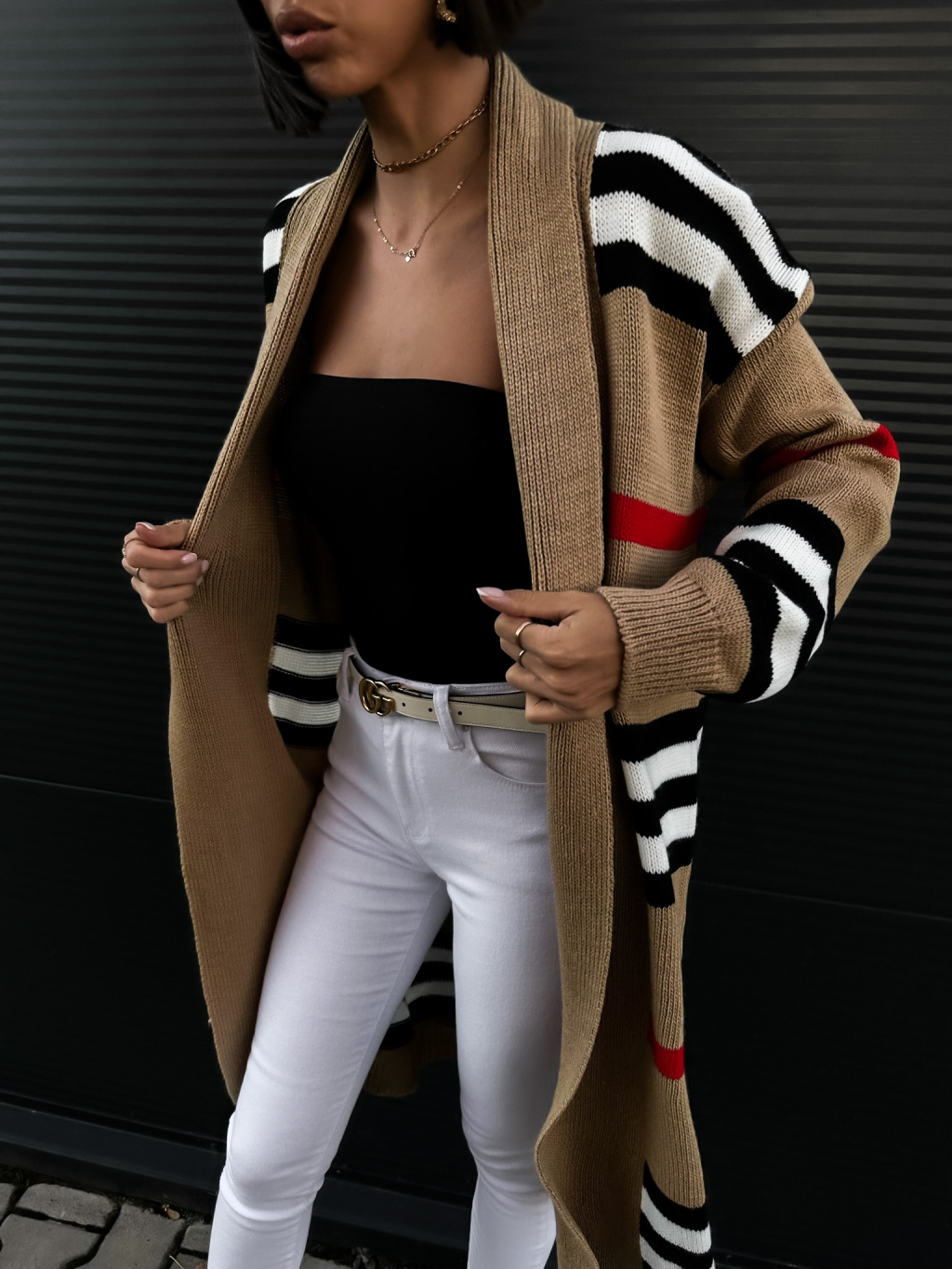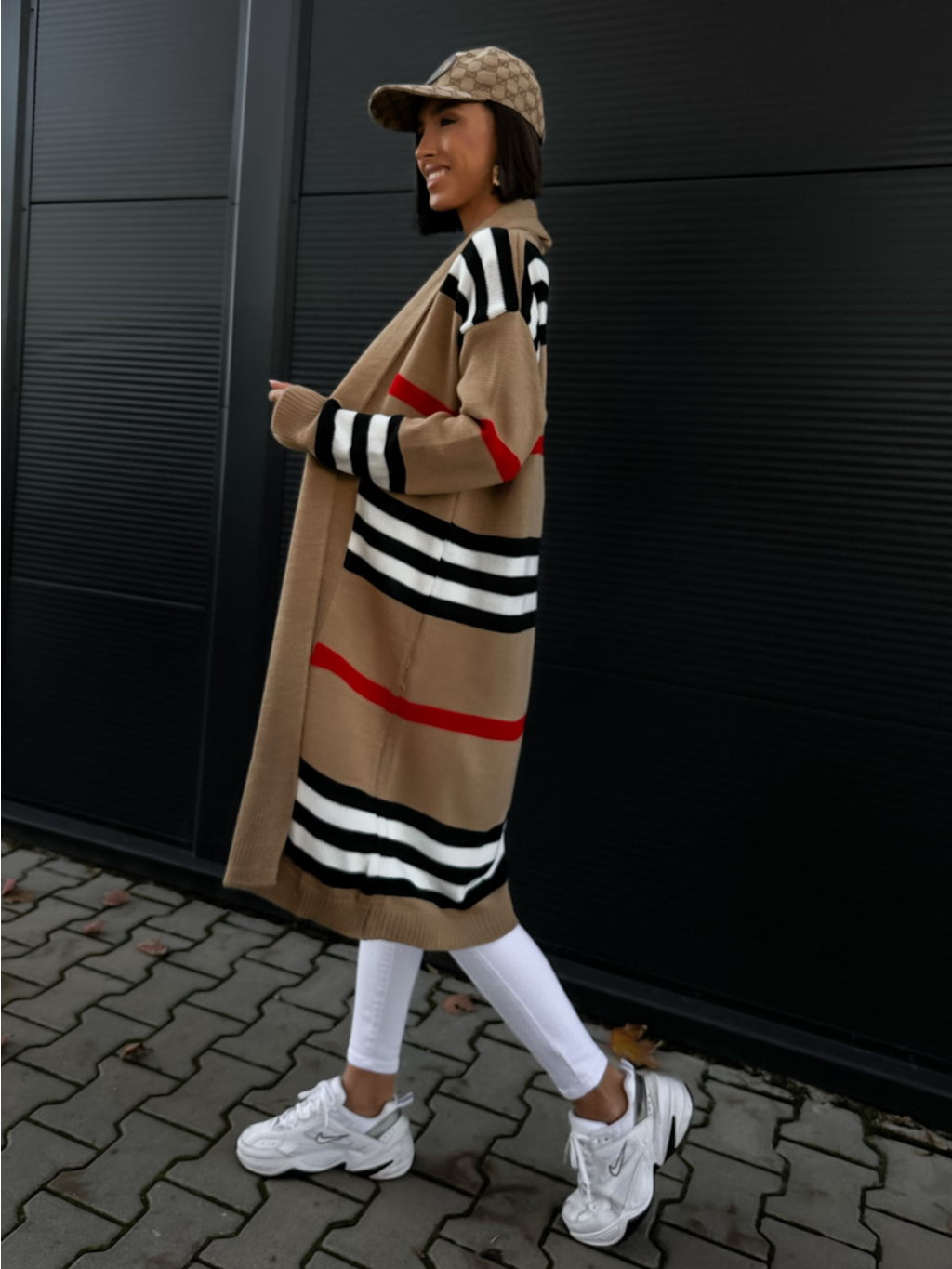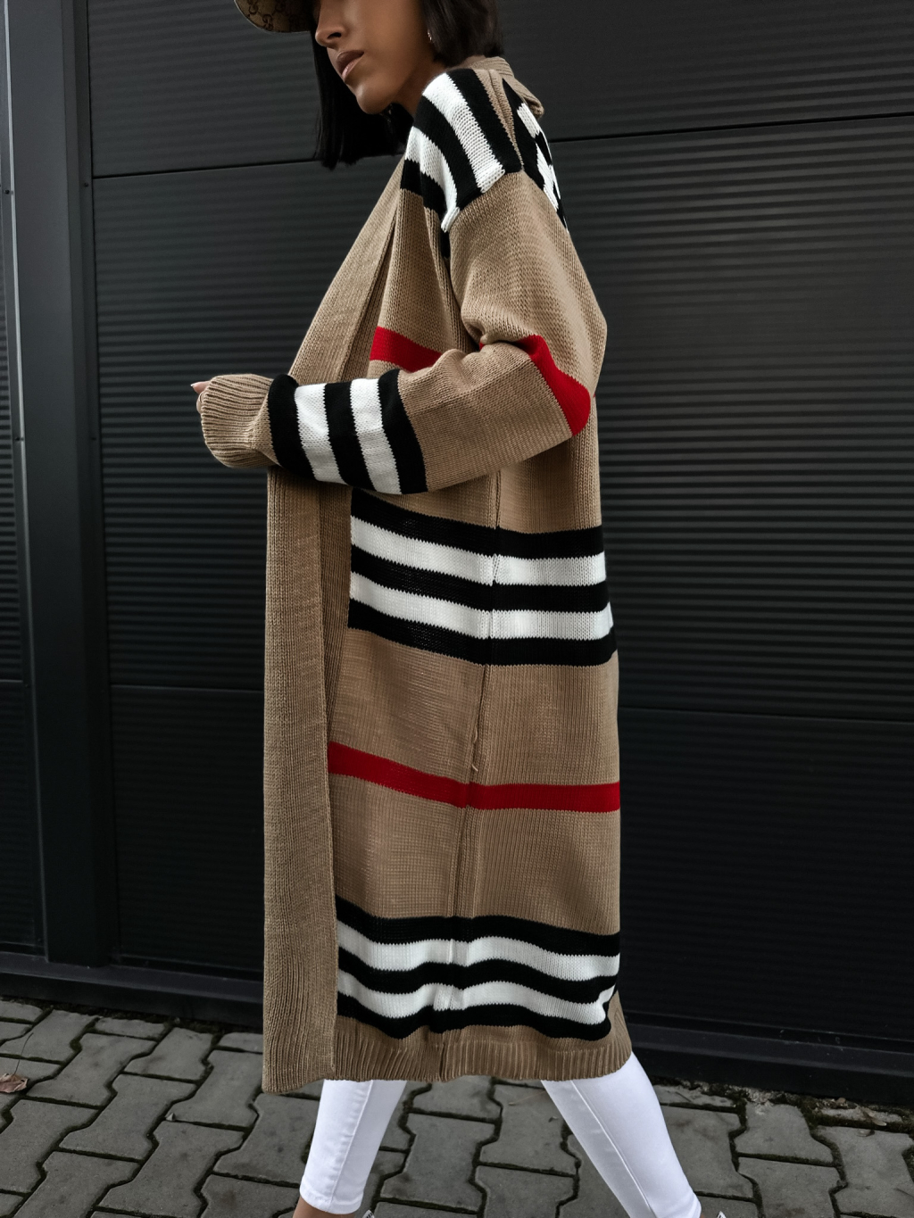 Světle hnědý pletený cardigan ADRIENI s pruhy