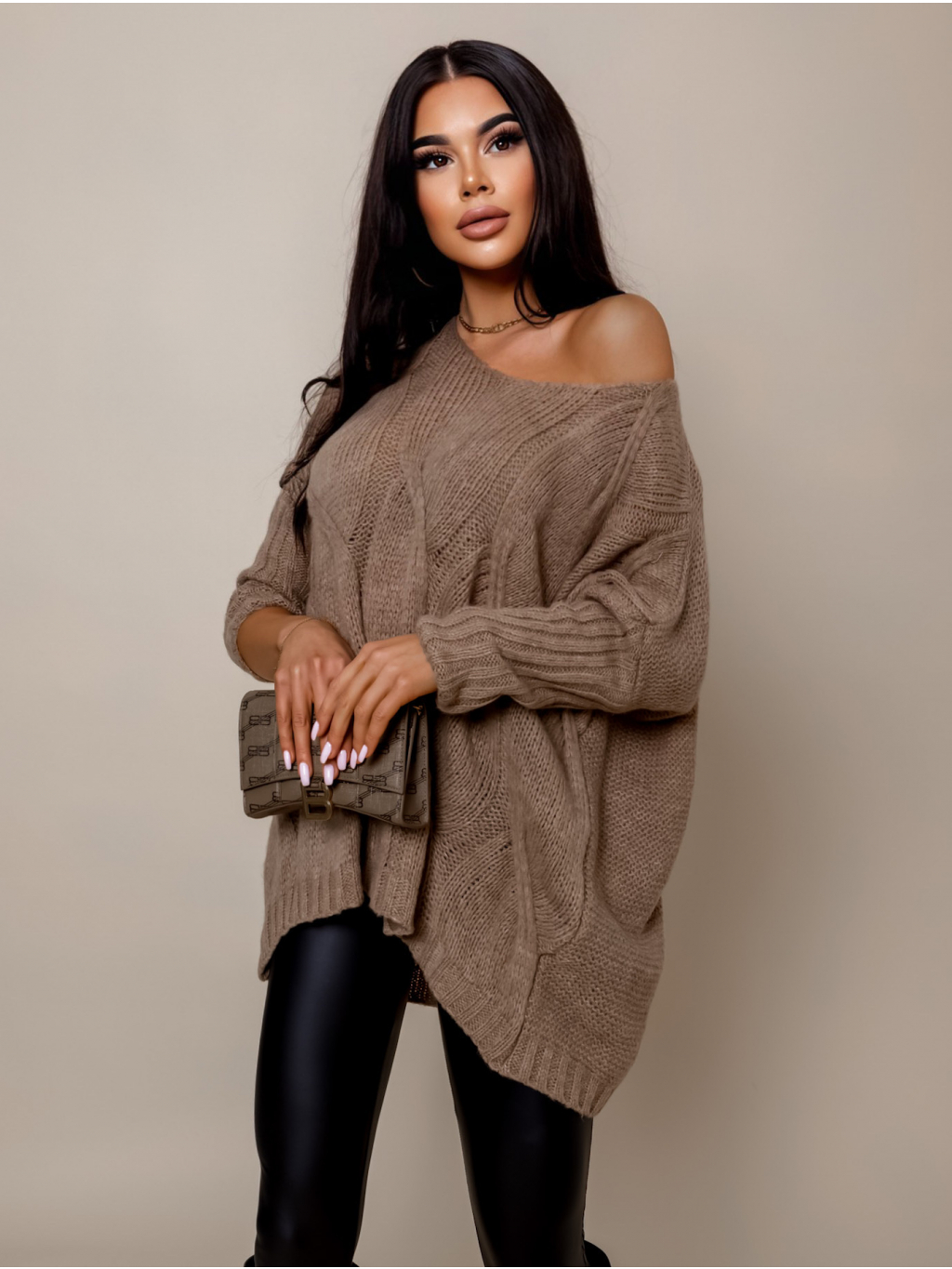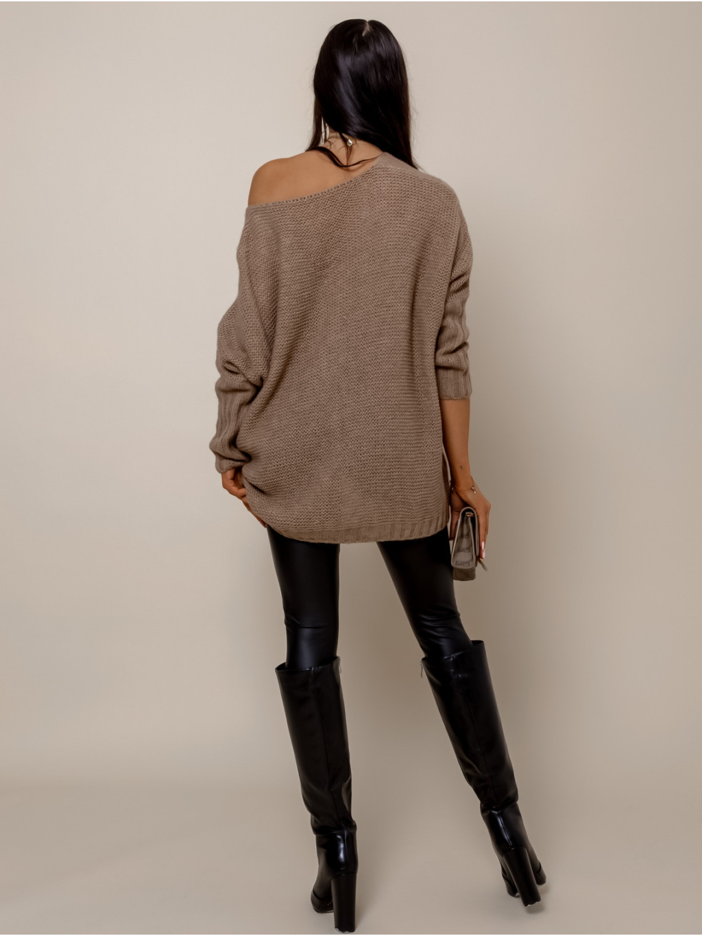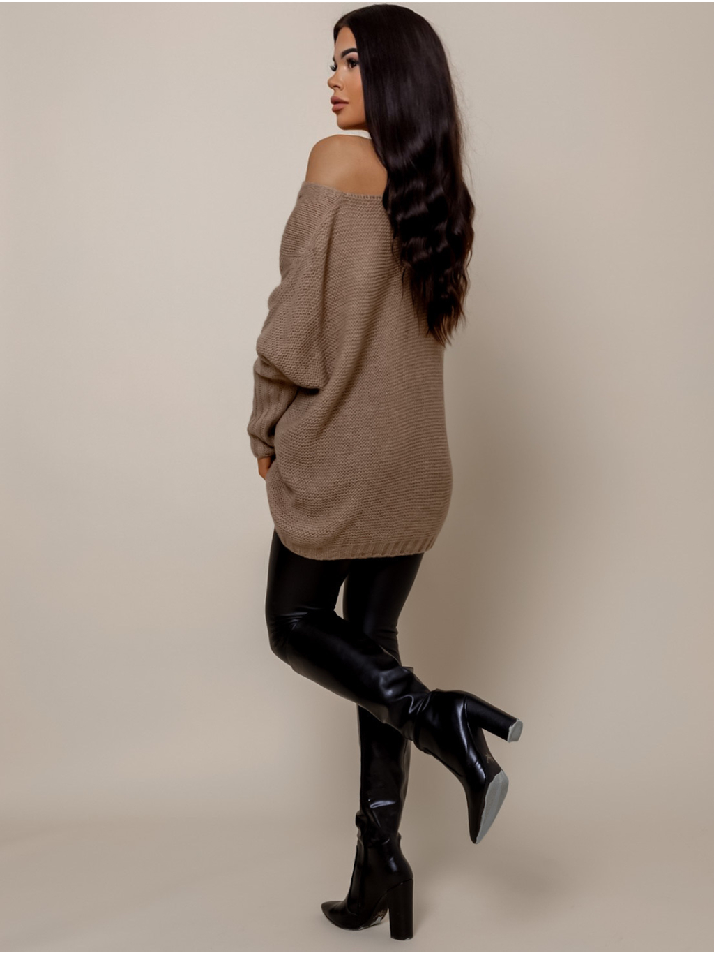 Světle hnědý pletený svetr KADIE s výstřihem do V