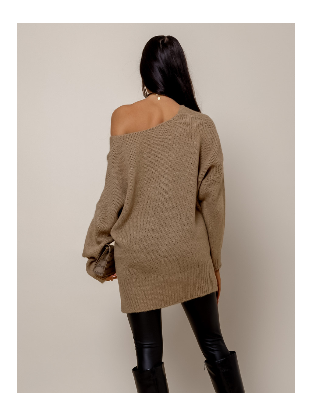 Světle hnědý pletený svetr MARLEI s výstřihem do V