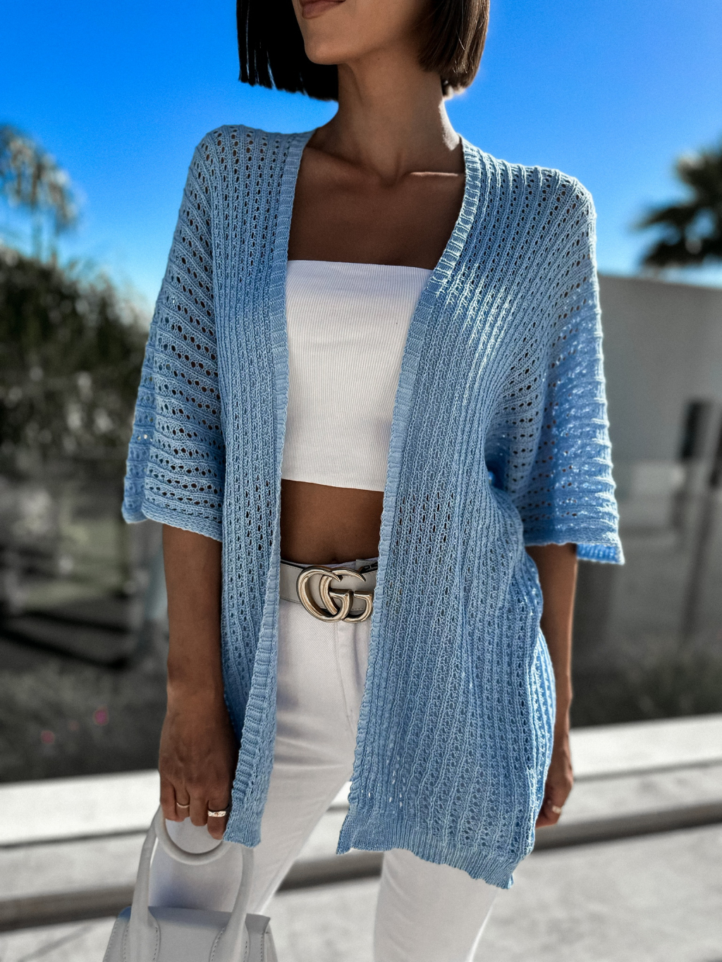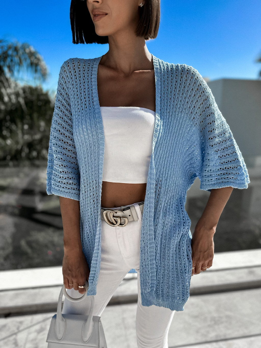 Světle modrý cardigan MACKEA