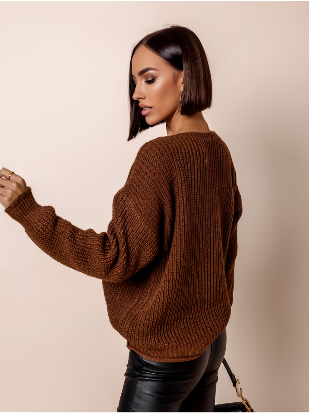 Tmavě hnědý svetr SORENI s výstřihem do V