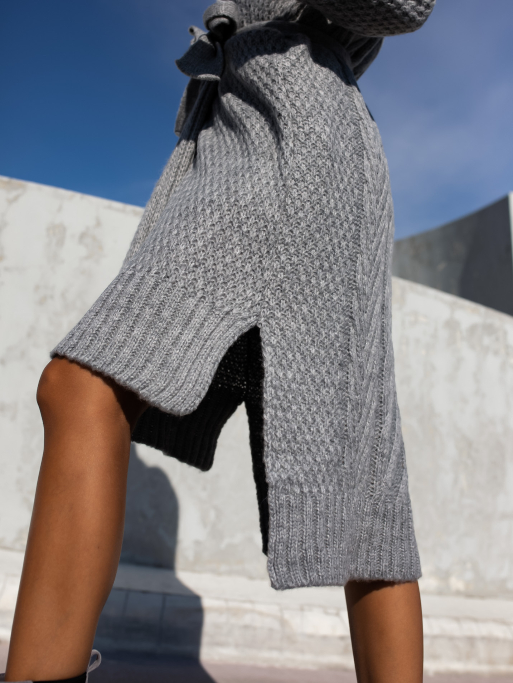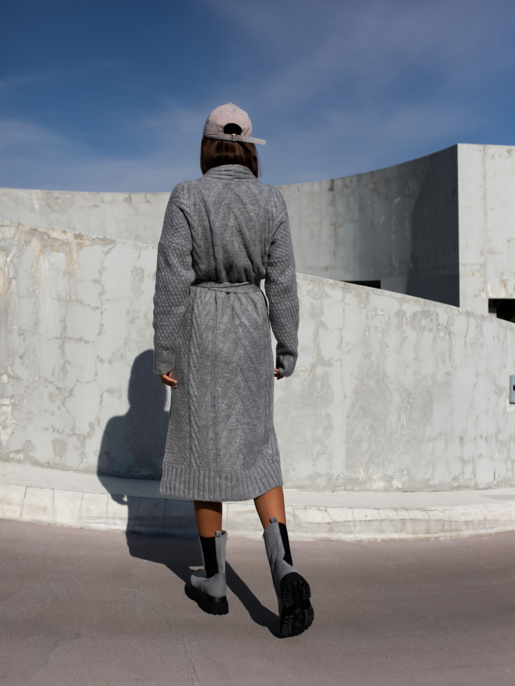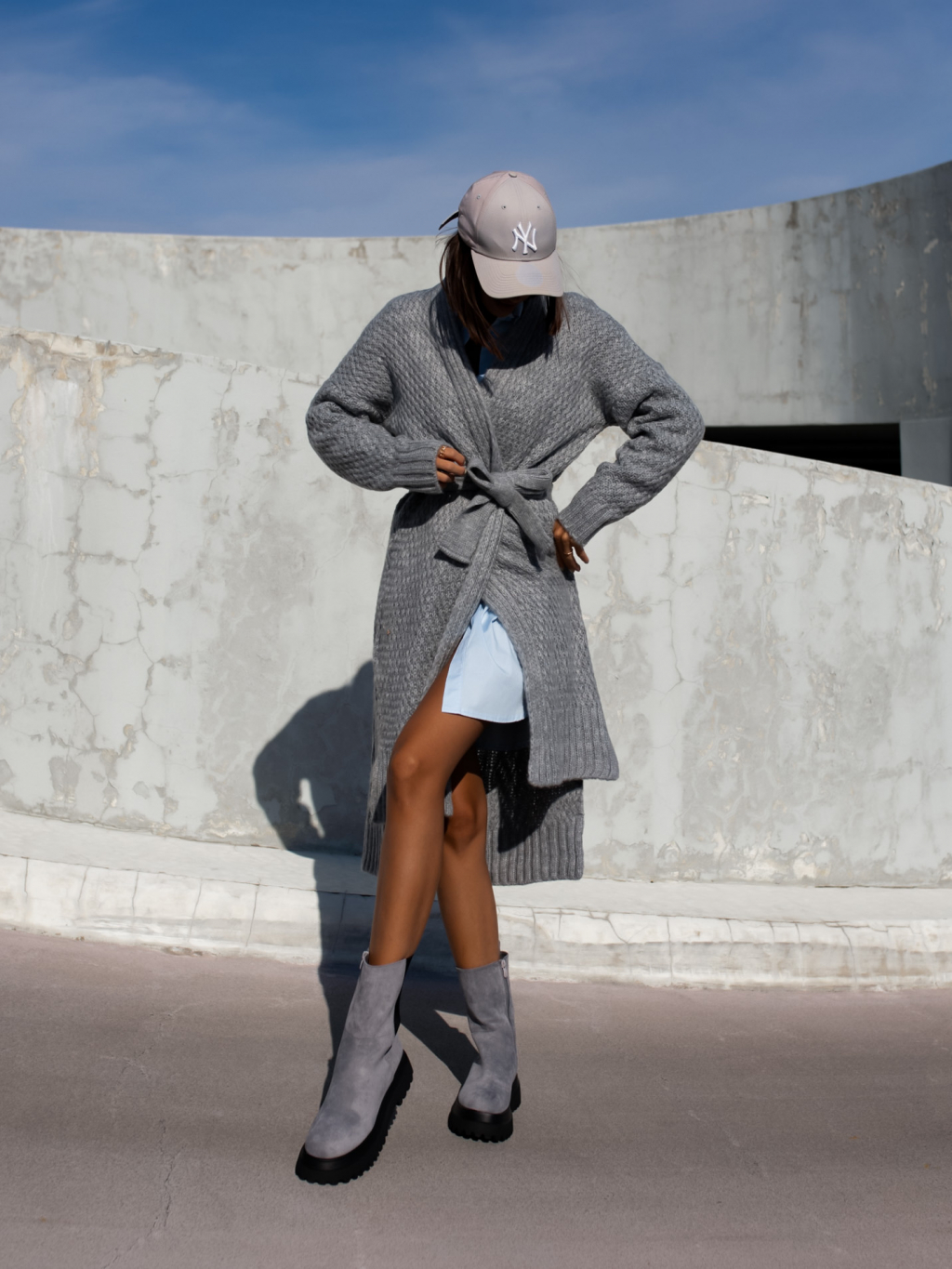 Tmavě šedý pletený cardigan FLAWLESSLY se zavazováním v pase