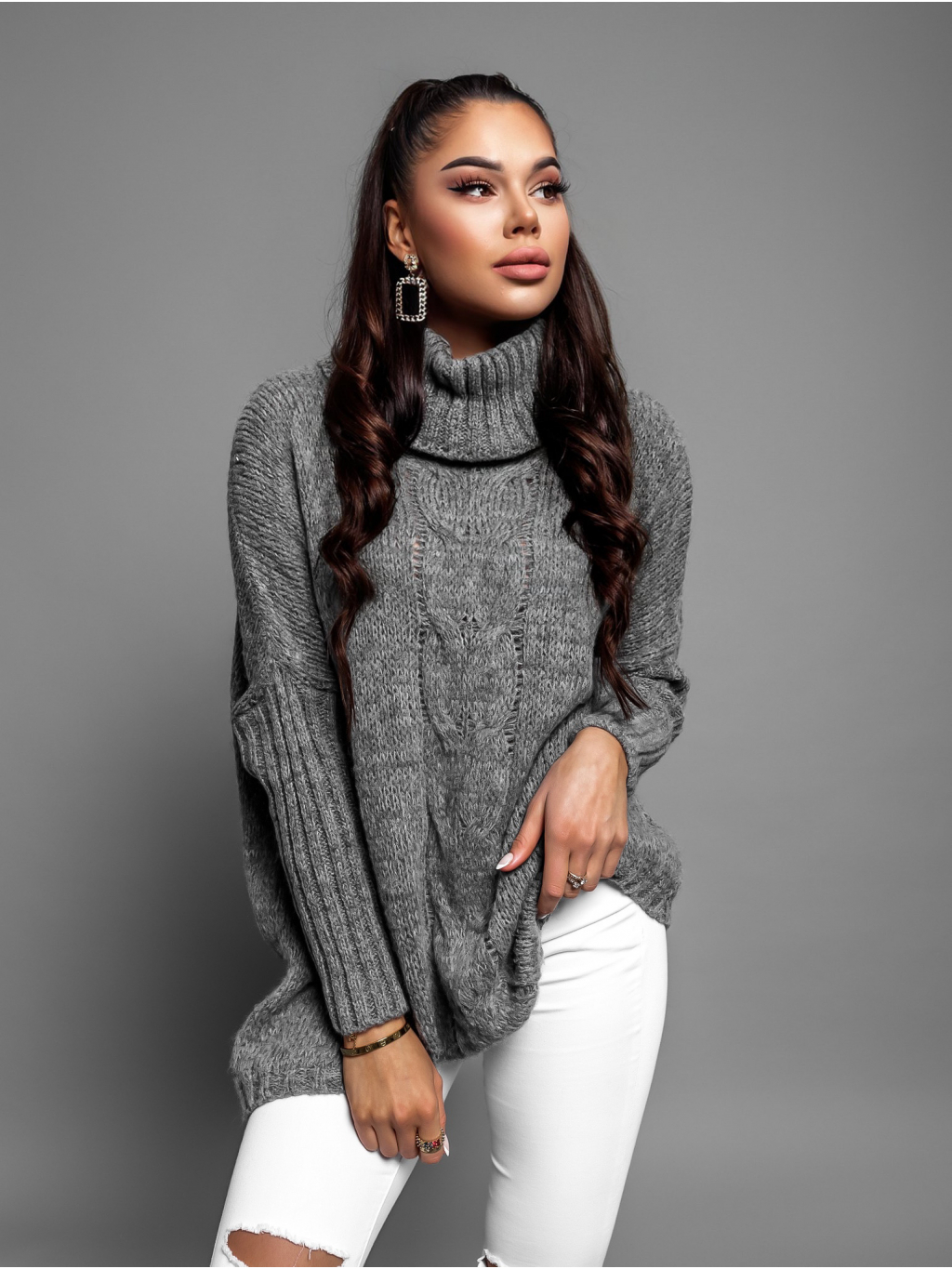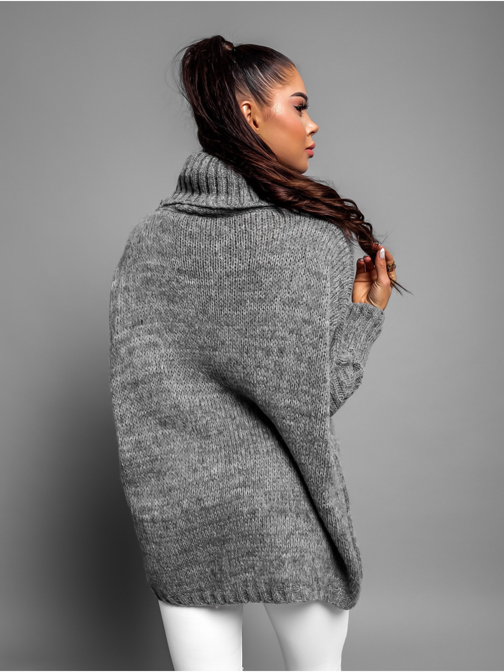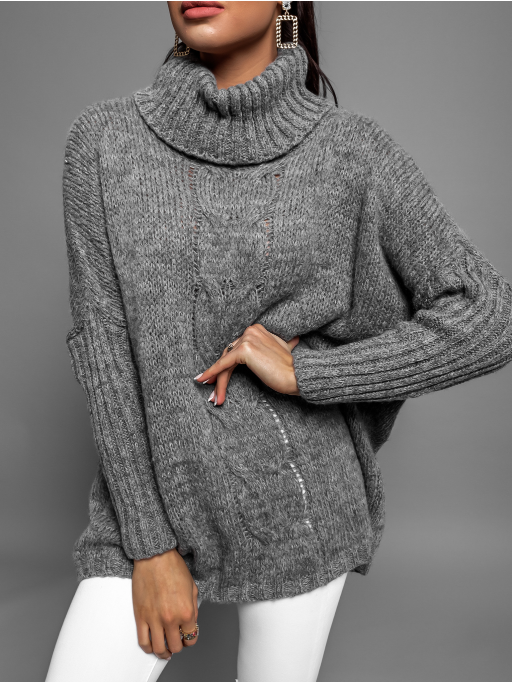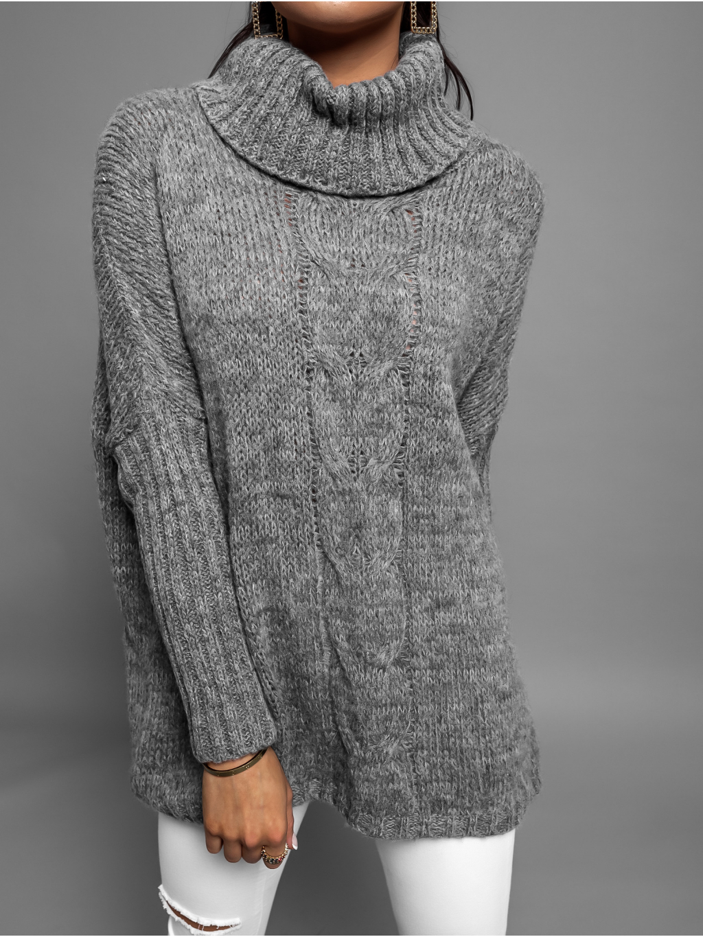 Tmavě šedý pletený oversize svetr TWINED s rolákem