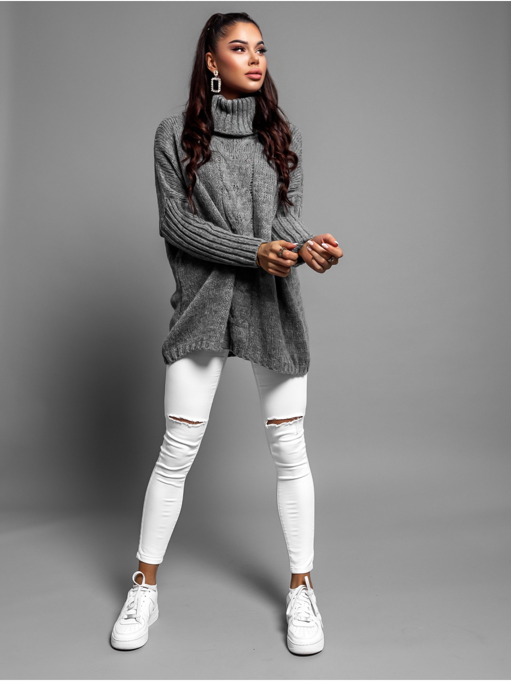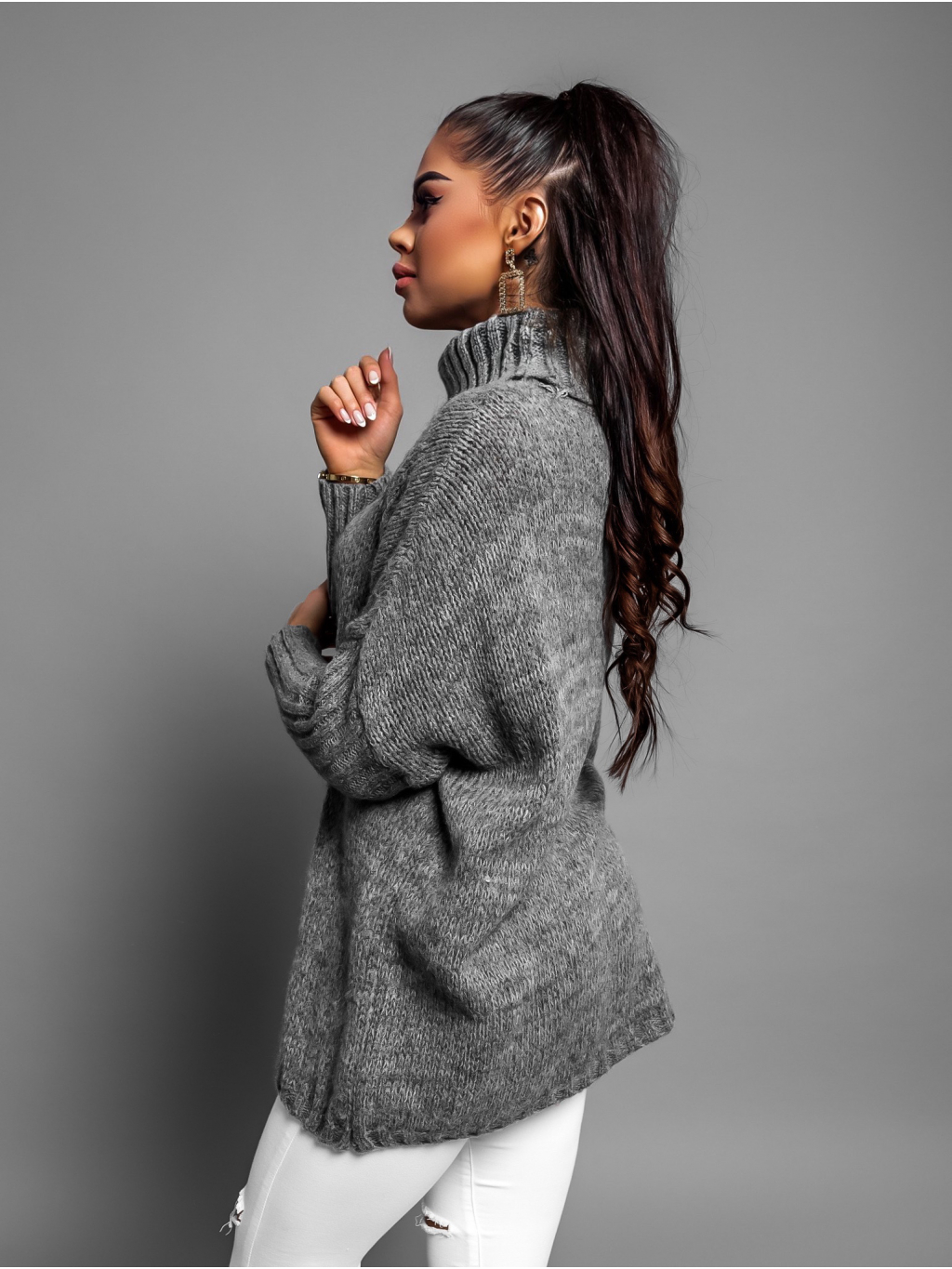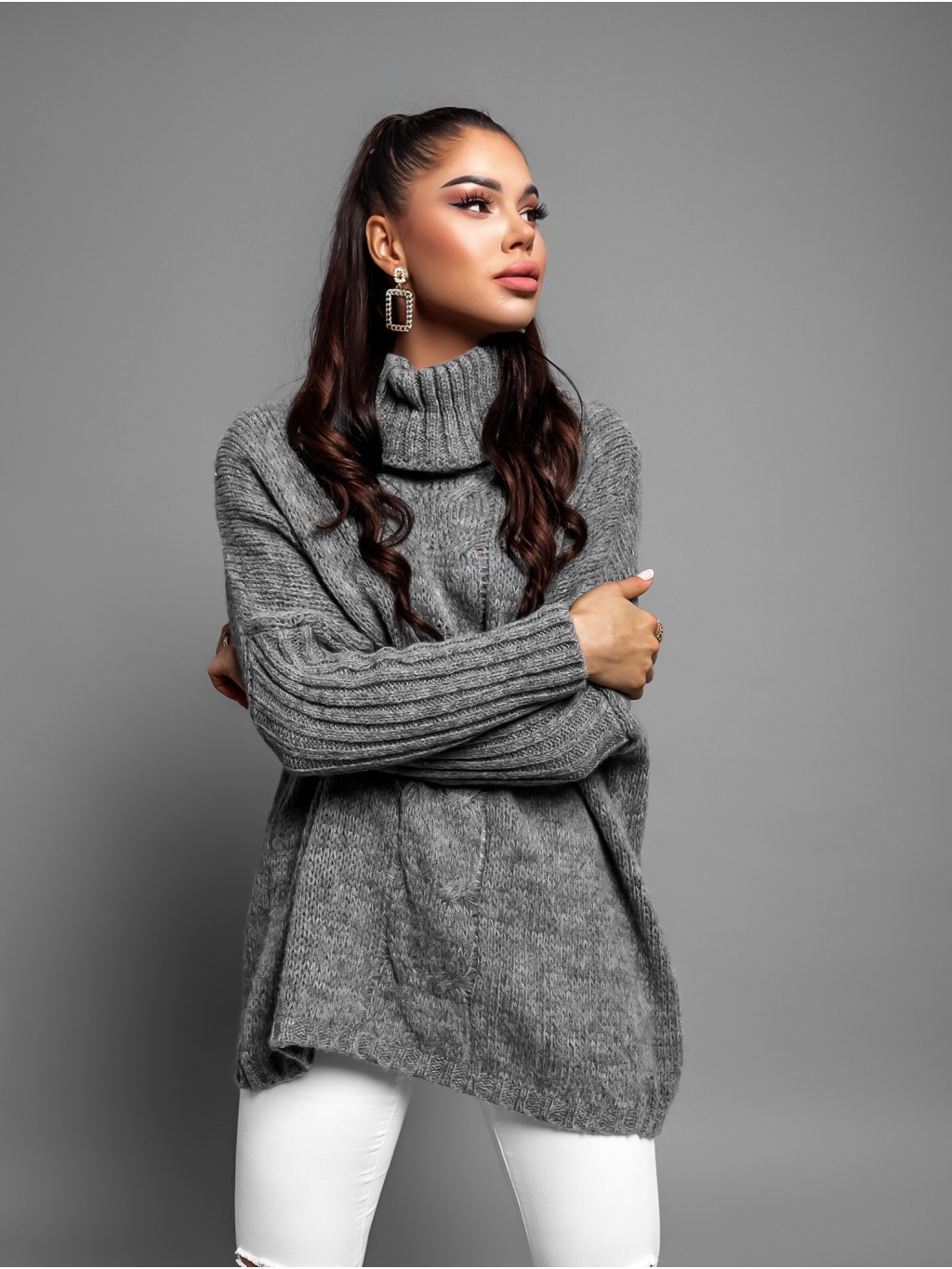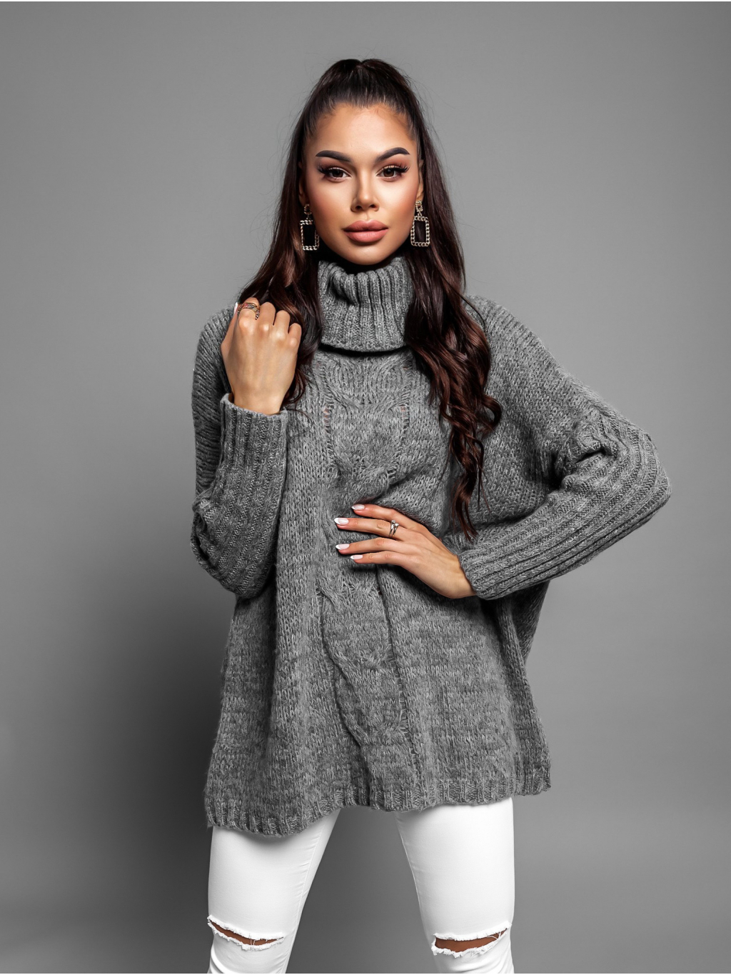 Tmavě šedý pletený oversize svetr TWINED s rolákem