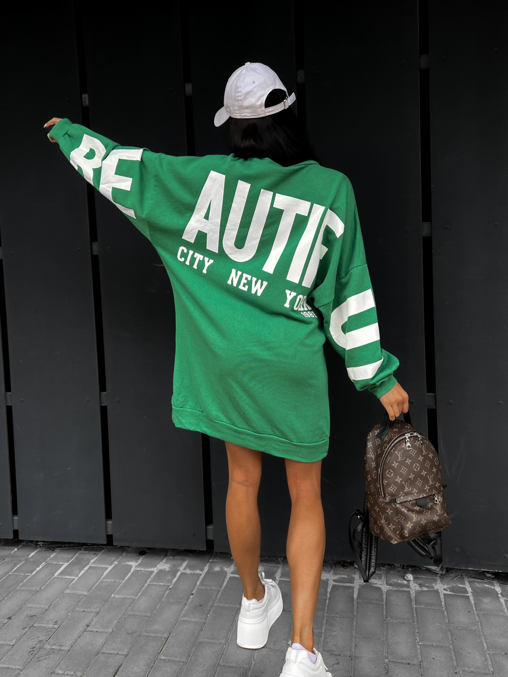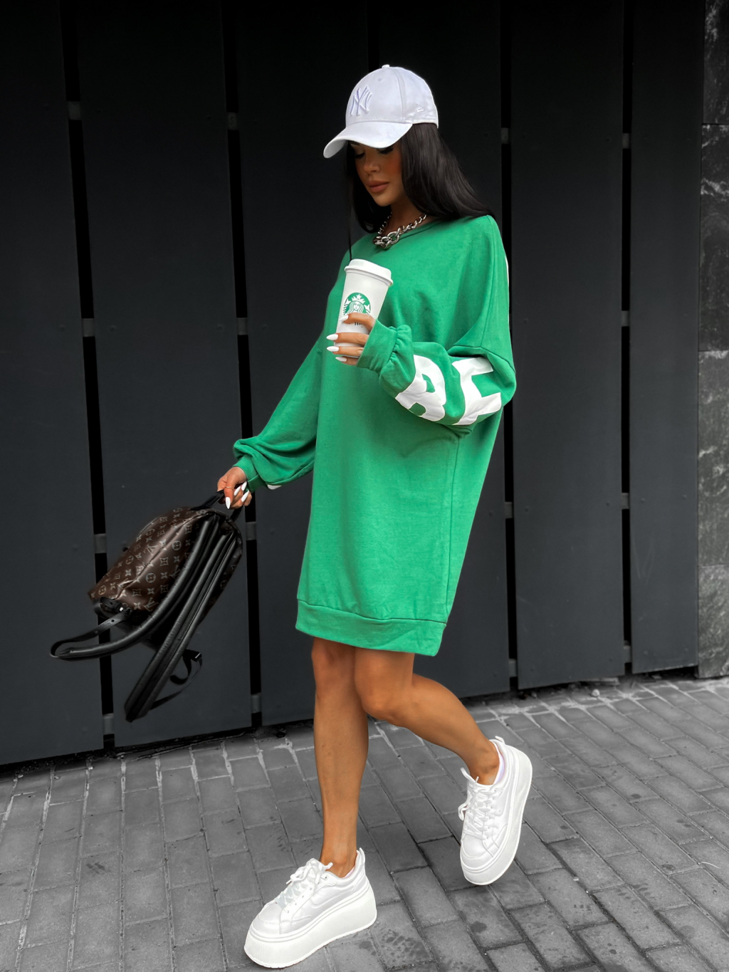Tmavě zelená oversize mikina HUGHEN s potisky