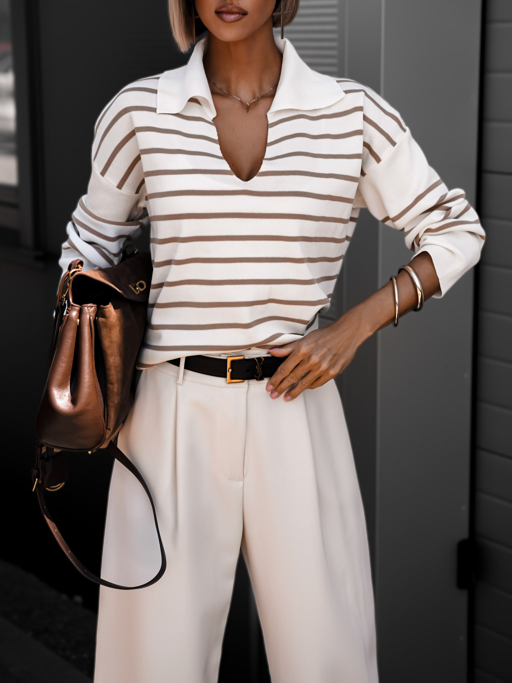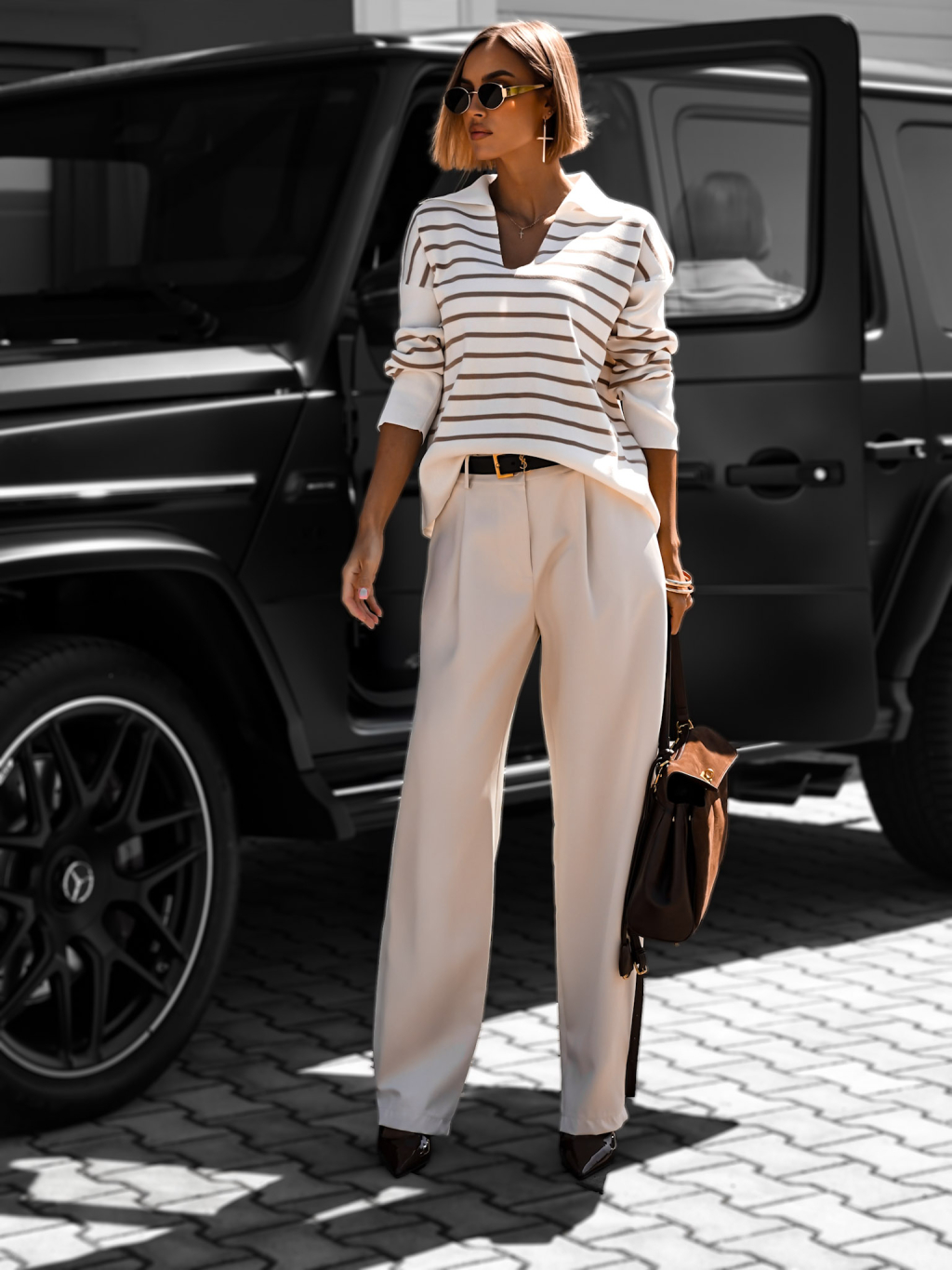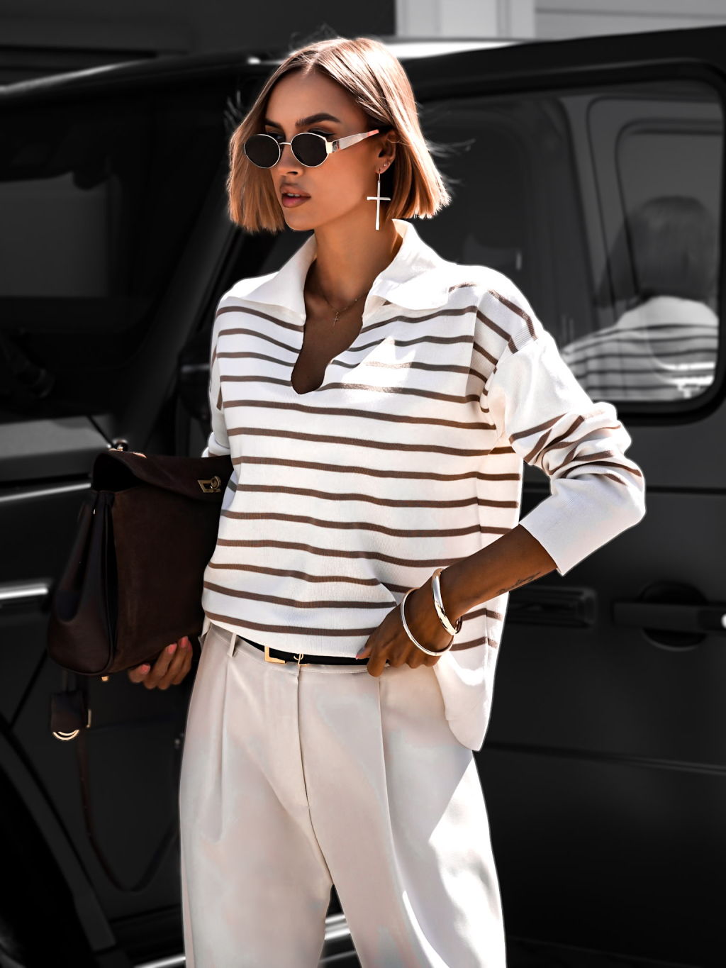 Bílohnědý oversize svetřík FREVIK s výstřihem
