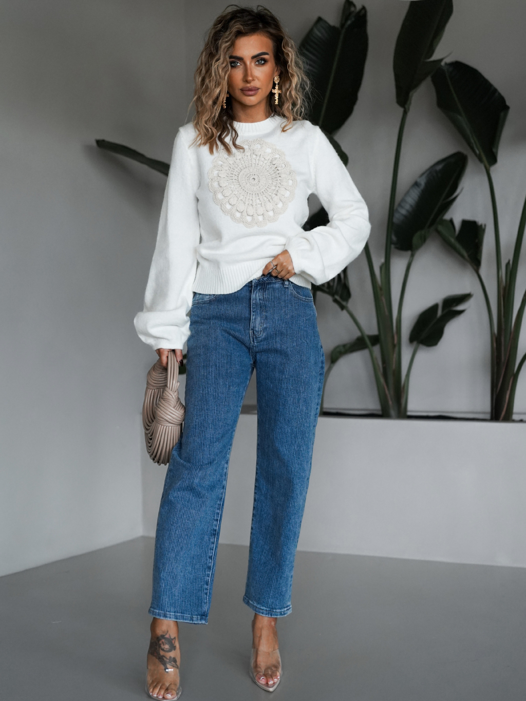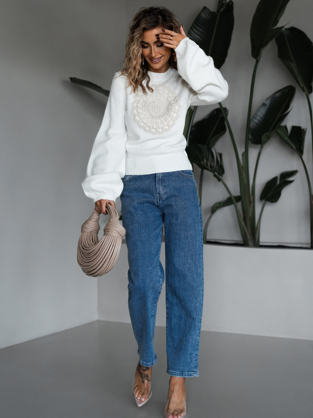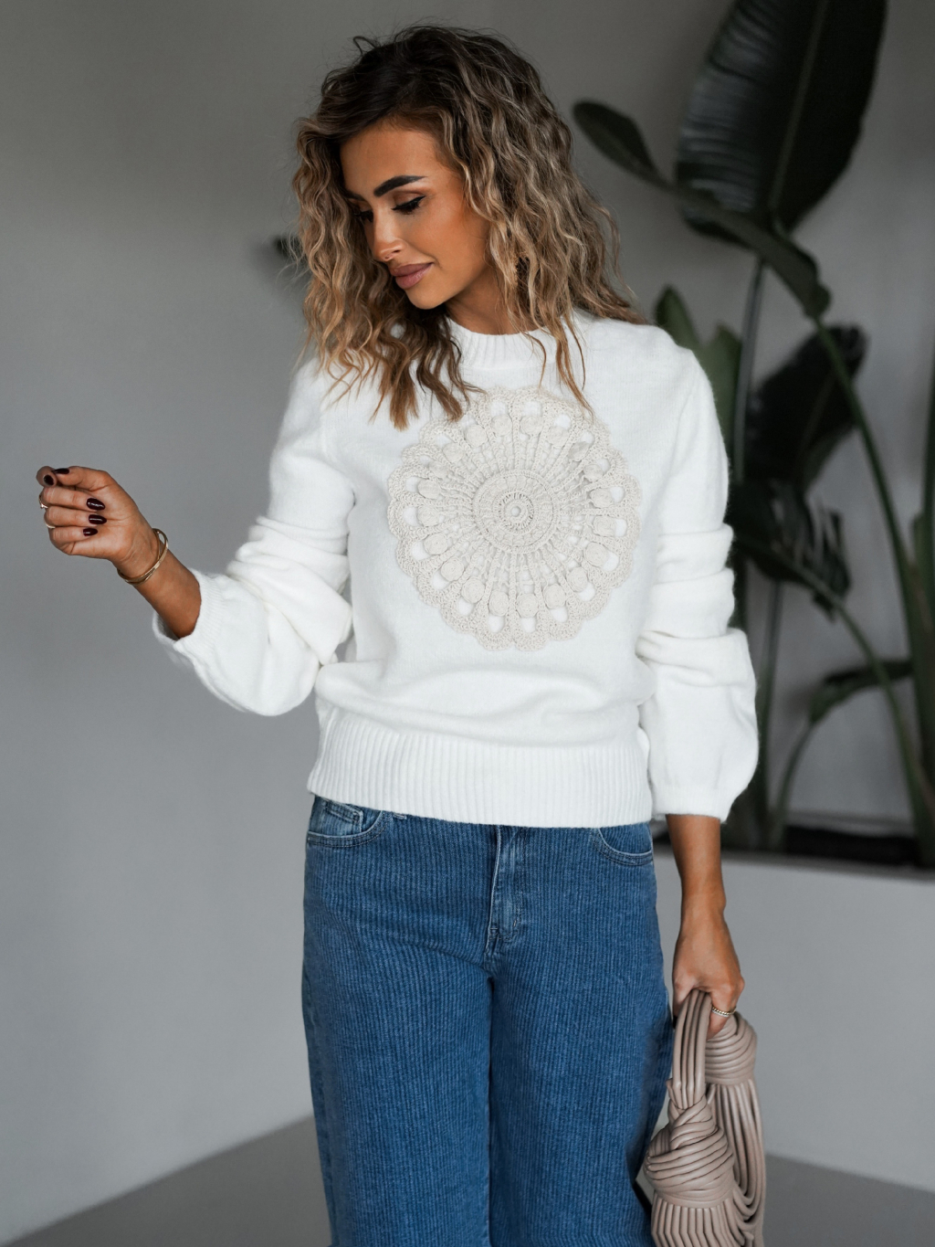 Bílý svetřík BELERON s aplikací