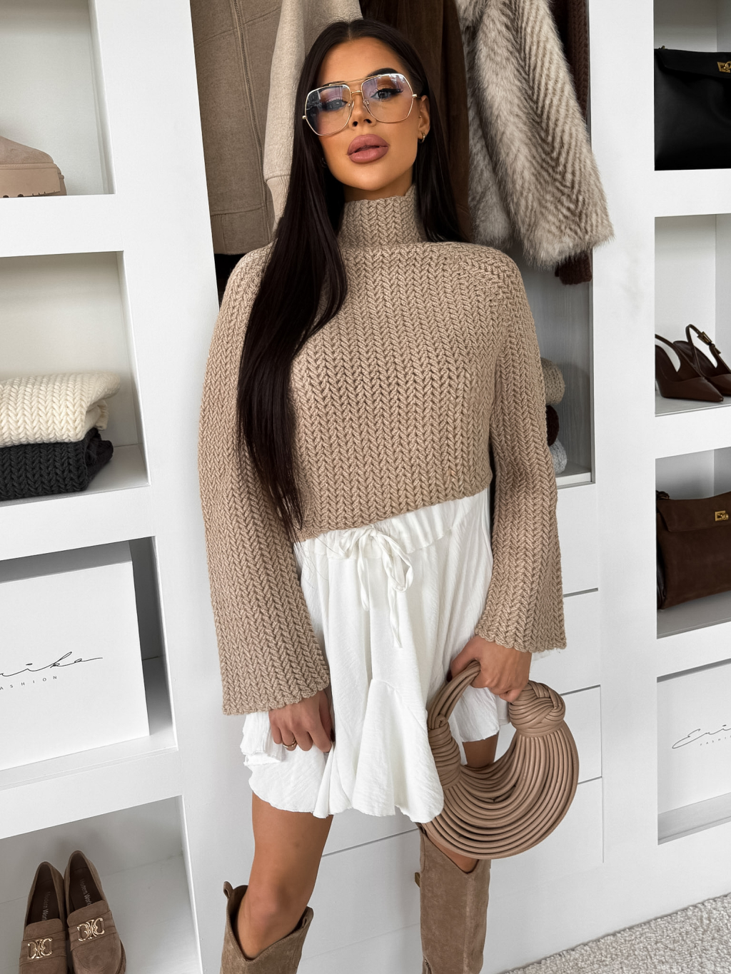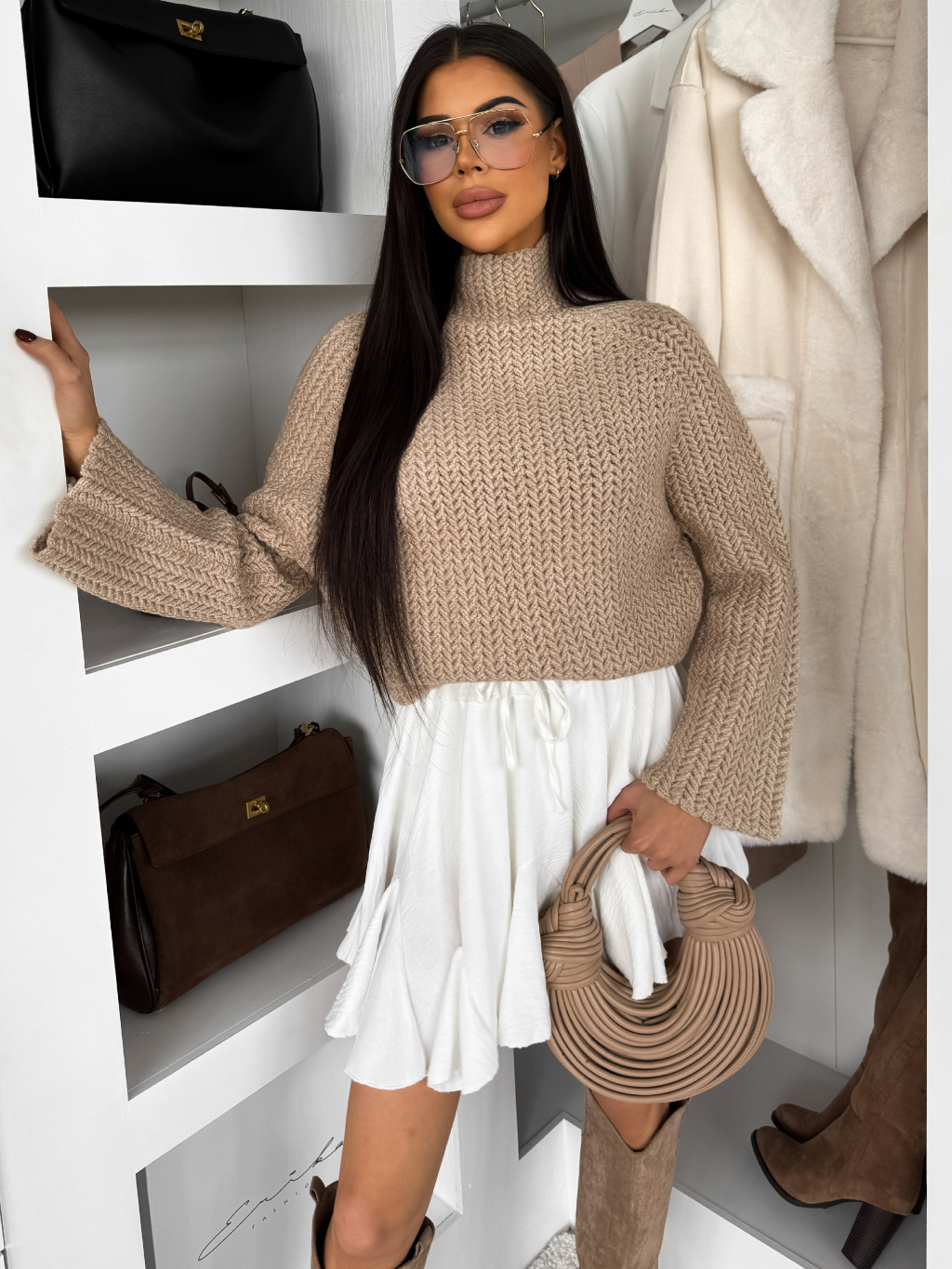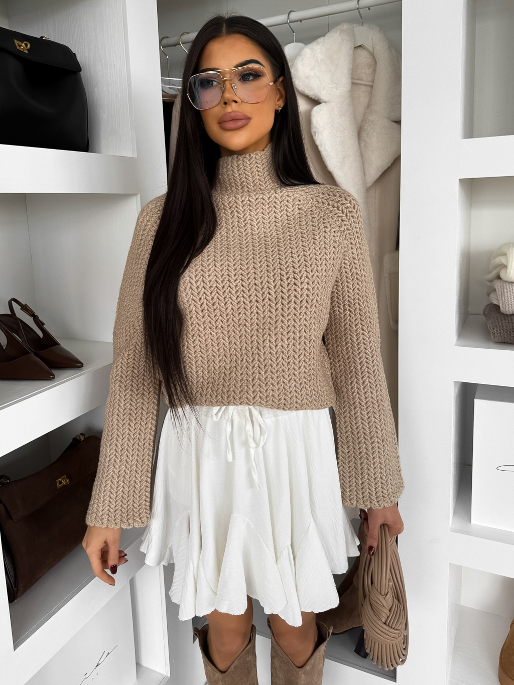 Béžový stylový svetr LUREVIA s rolákem