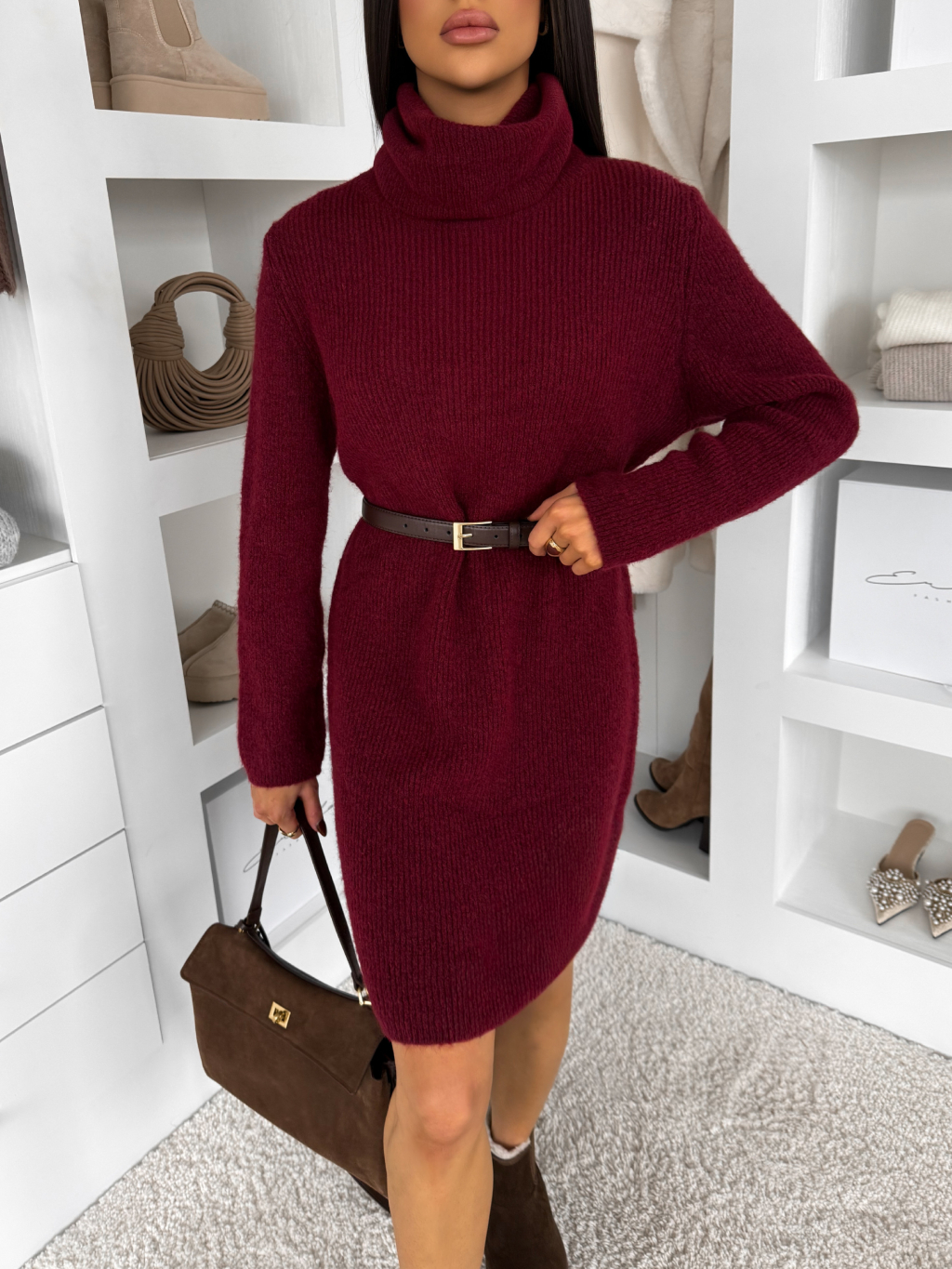 Bordó pletený dlouhý svetr šaty MAGLIO