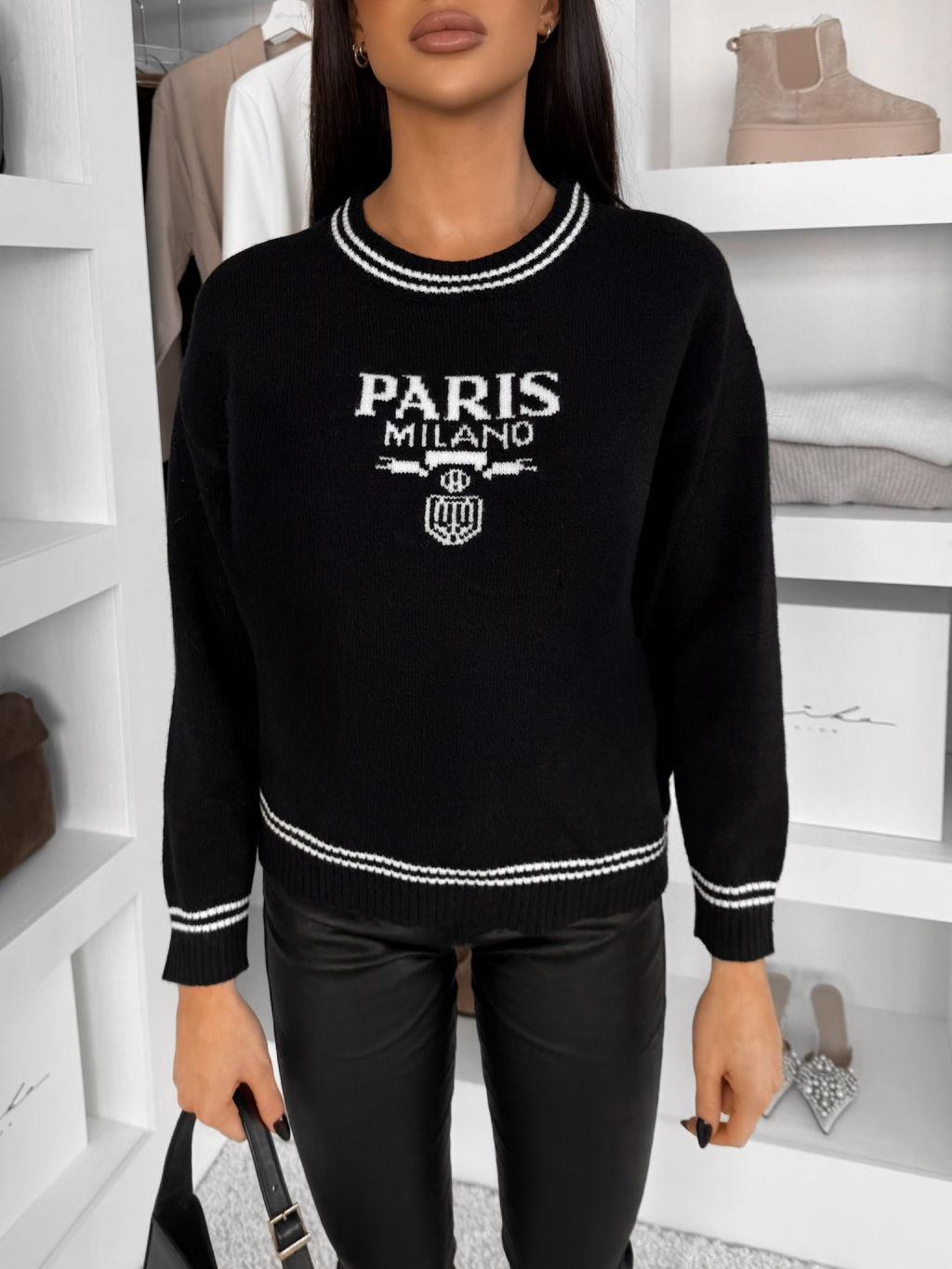 Černý stylový svetr TARELIO s nápisem