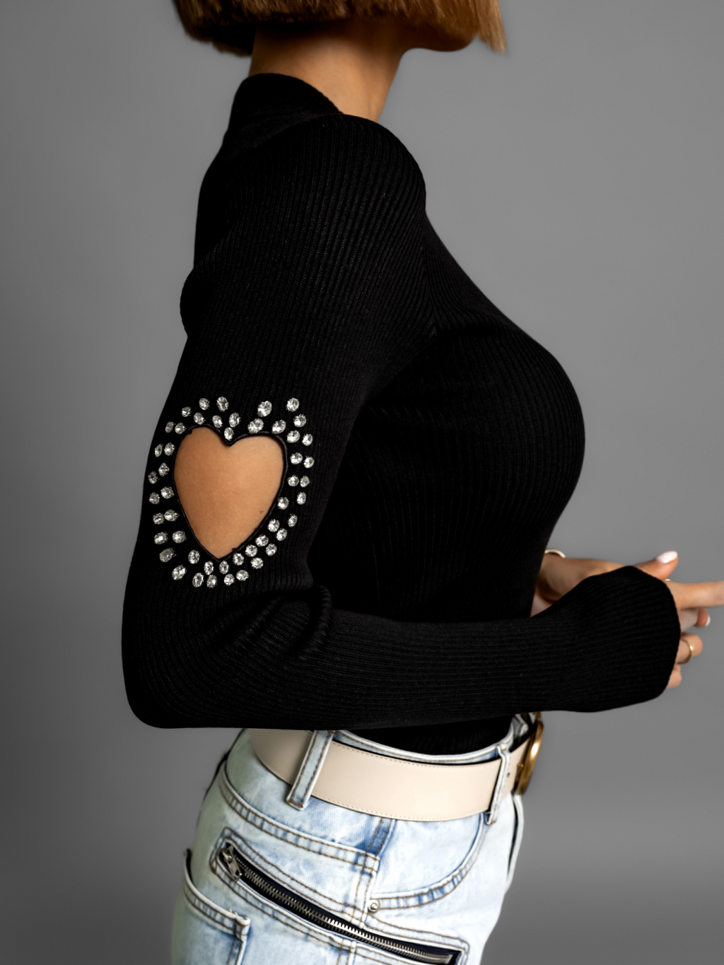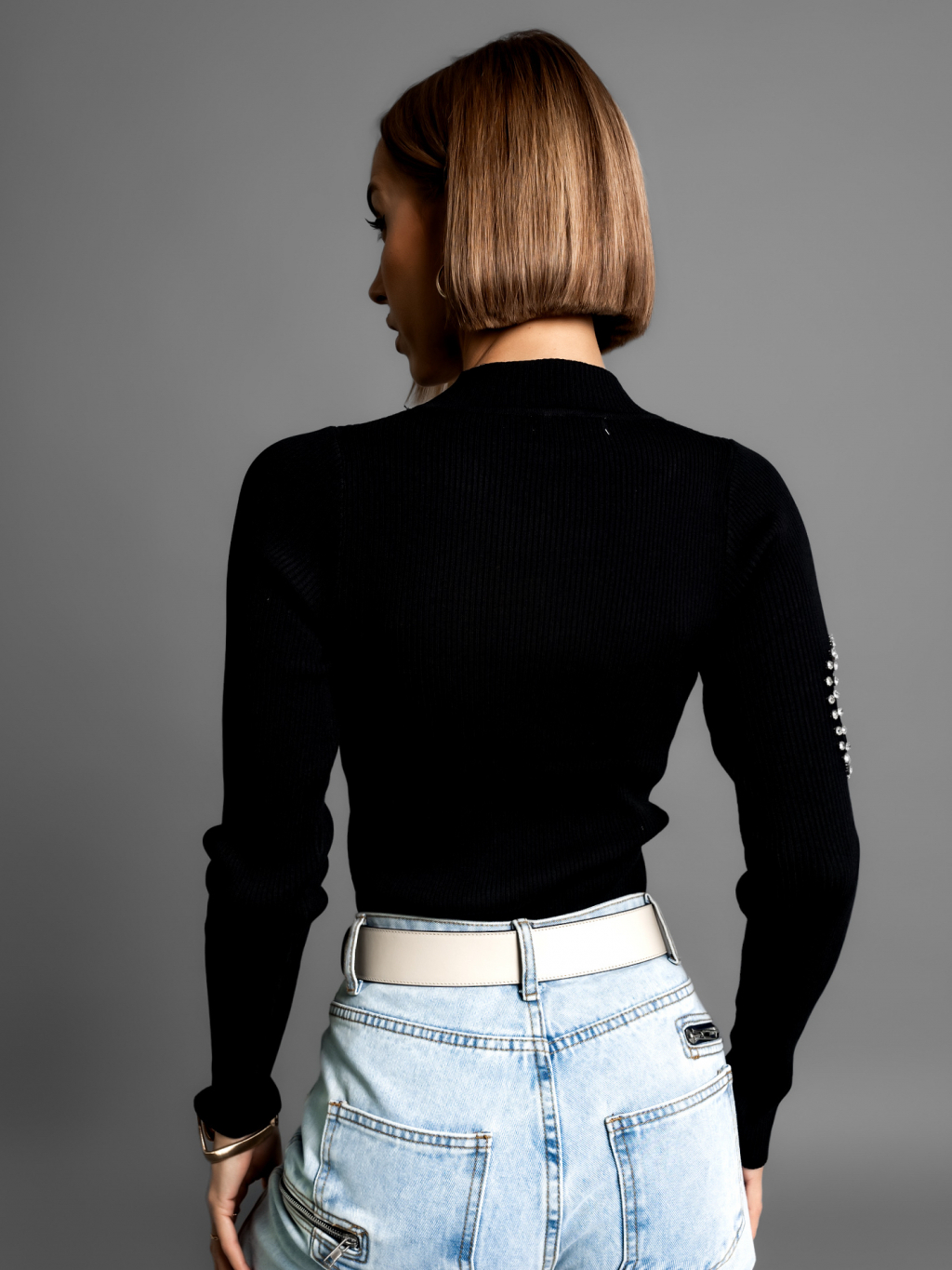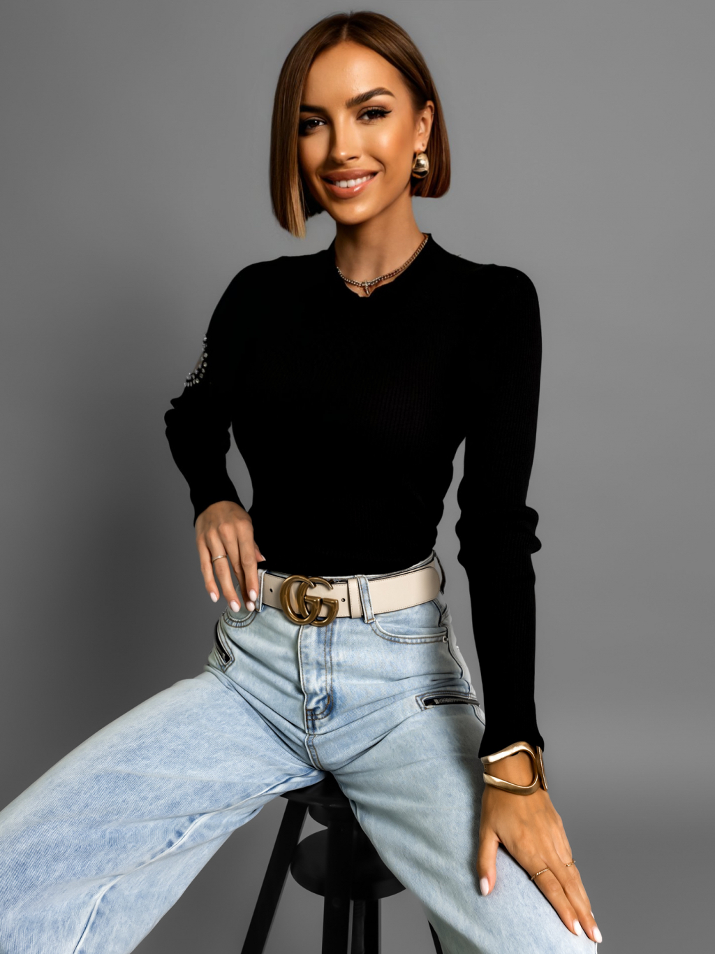 Černý žebrovaný top EBRU s dlouhým rukávem