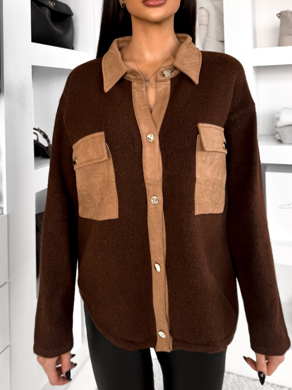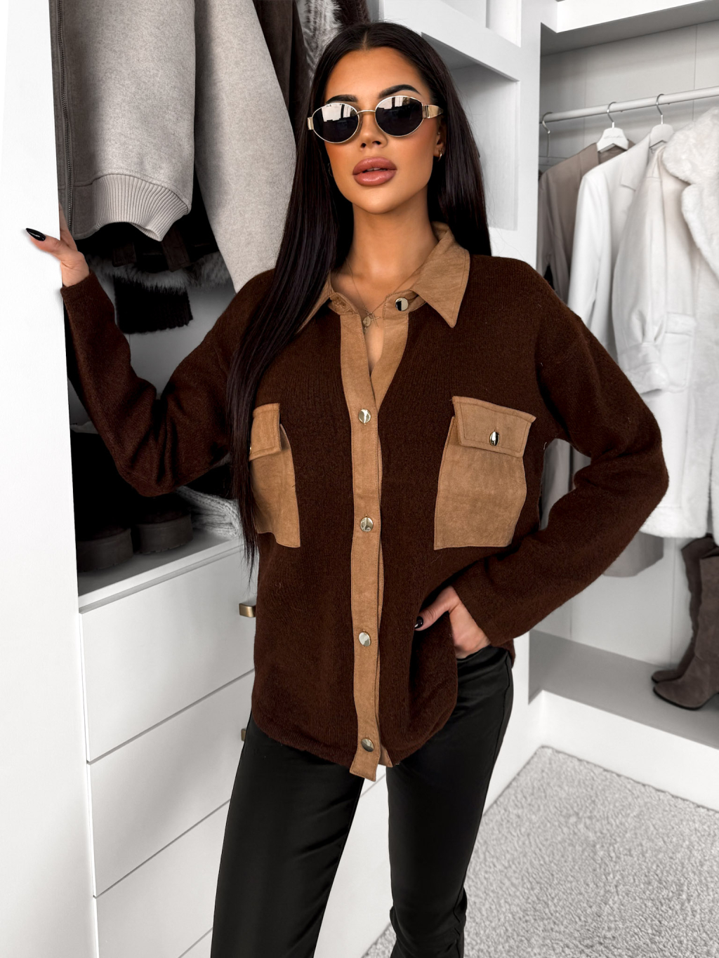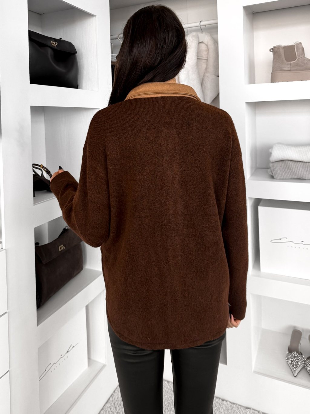 Hnědý oversize košilový svetr ECLANT s knoflíky