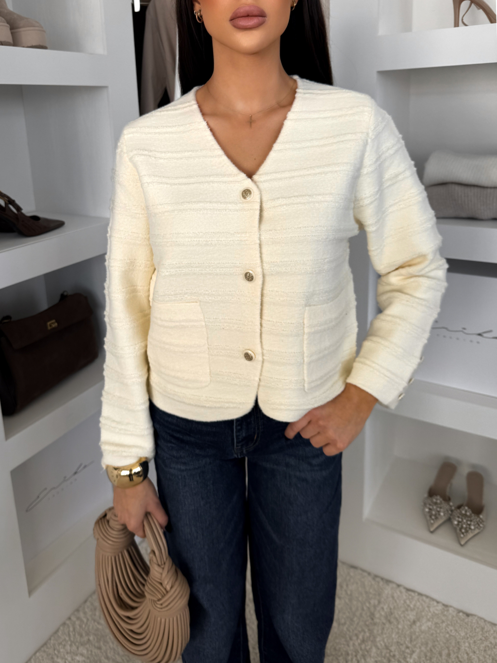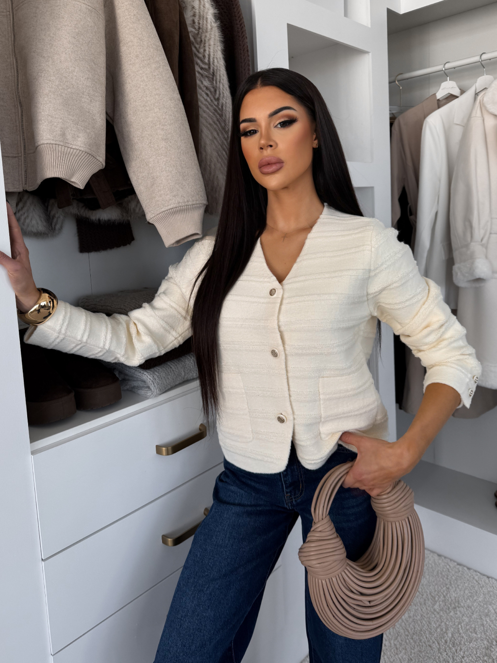 Krémový elegantní svetřík ZANOVIA s knoflíky