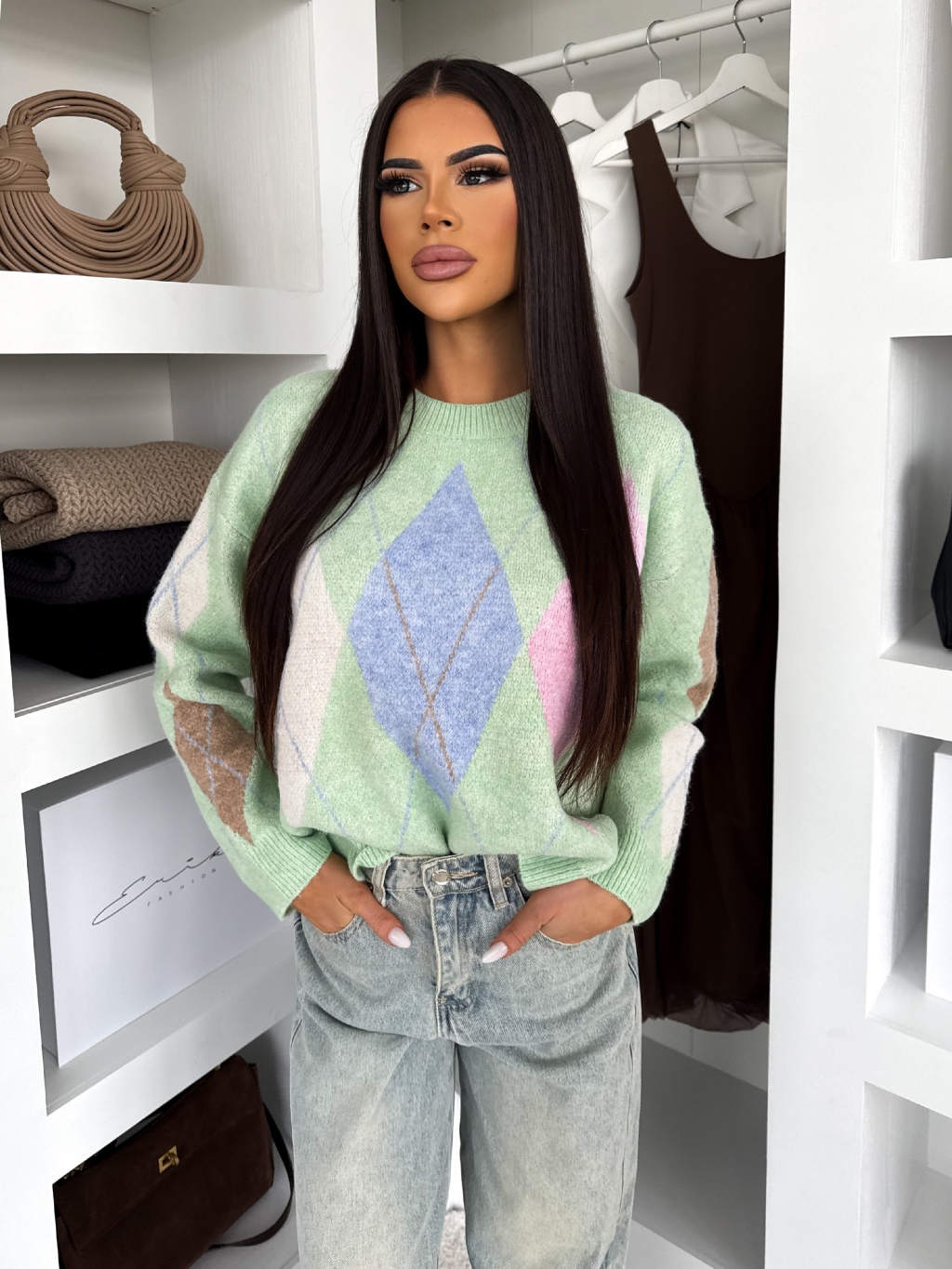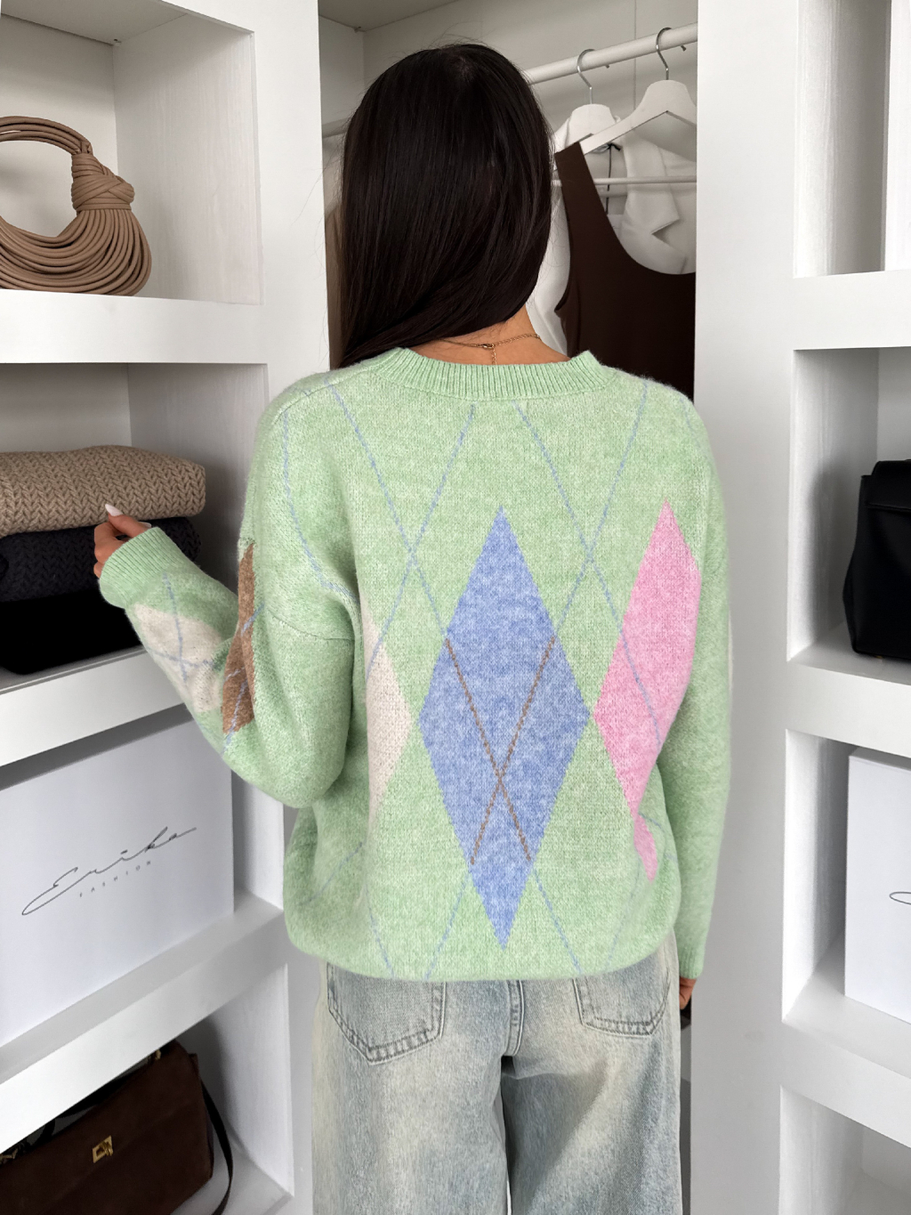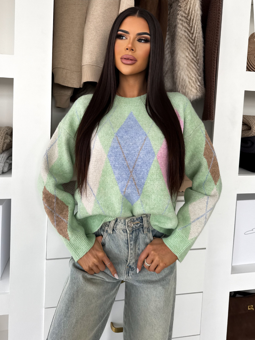 Světle zelený stylový vzorovaný svetr TUVONIX
