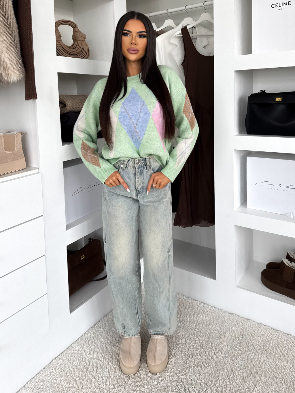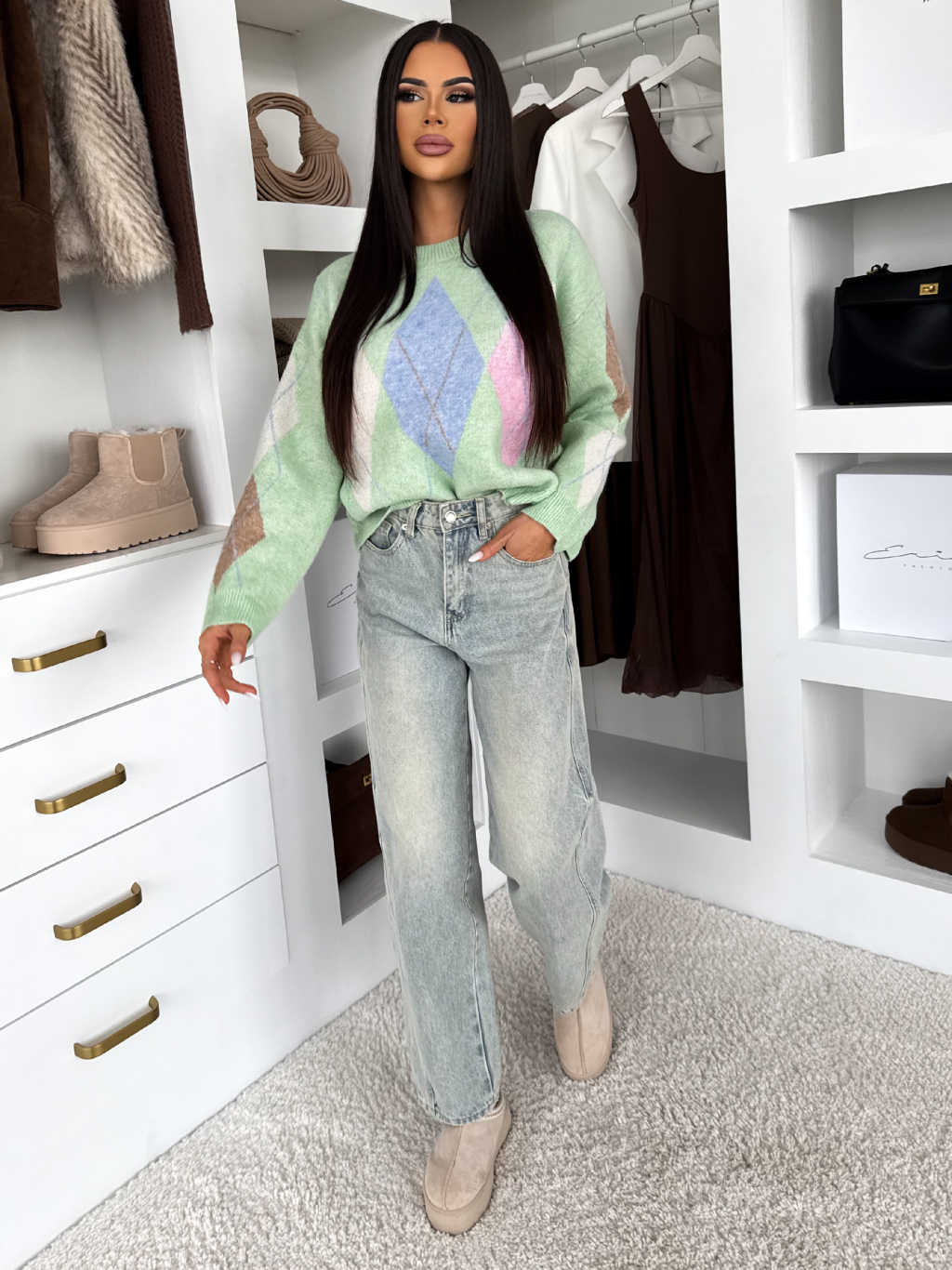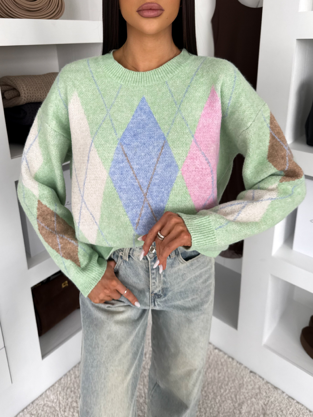 Světle zelený stylový vzorovaný svetr TUVONIX