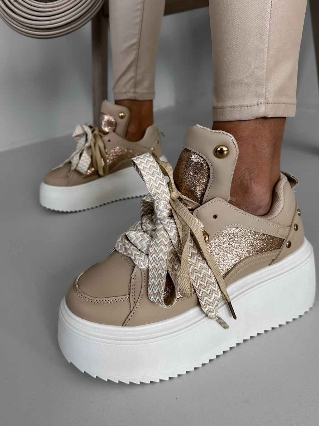 Béžové stylové tenisky BELISSA s vysokou podrážkou