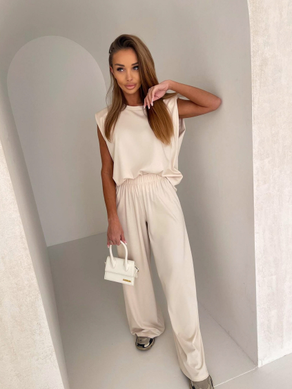 Béžová stylová semišová tepláková souprava BEAUN s topem