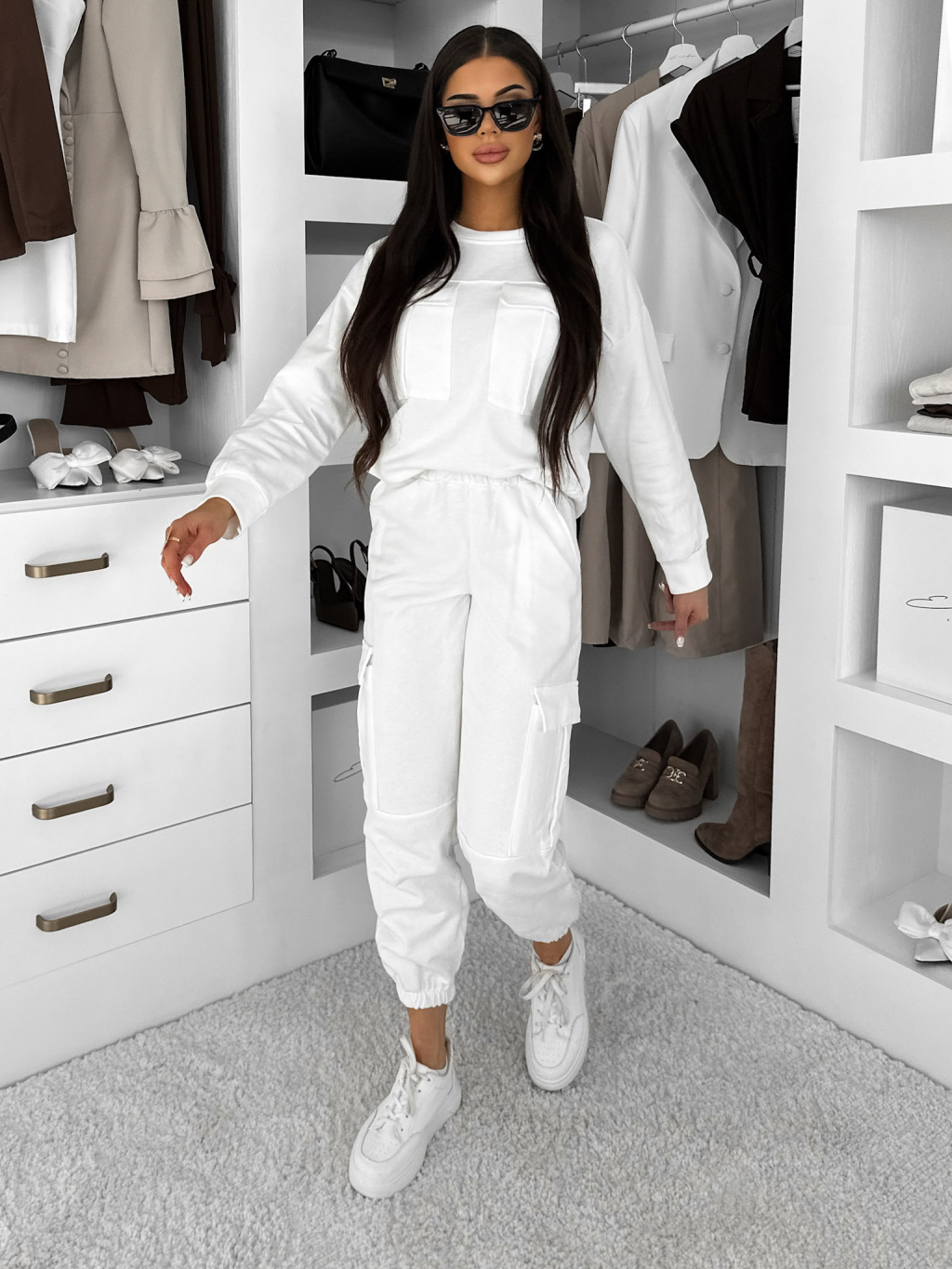Bílá bavlněná cargo teplákovka LUMAXIS s kapsami