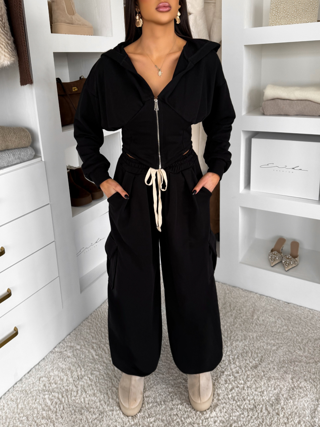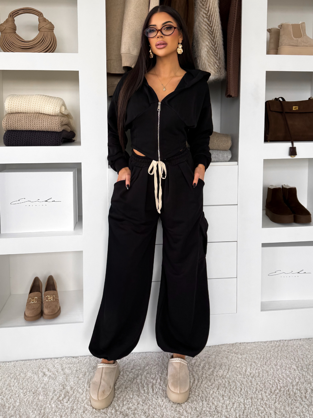 Černá bavlněná tepláková teplákovka souprava WENARI