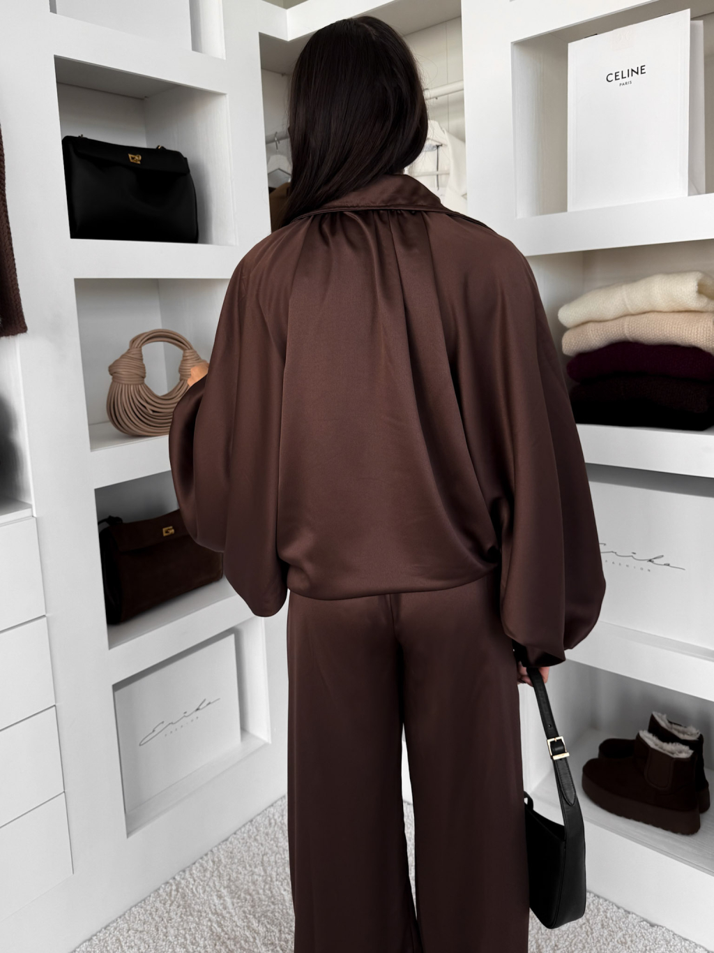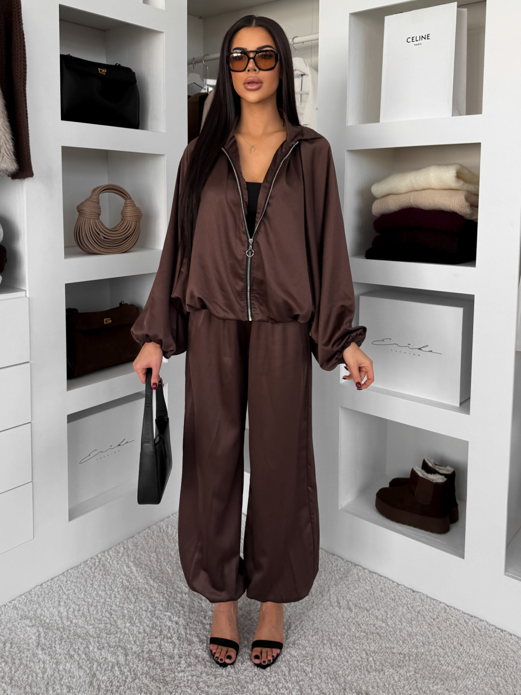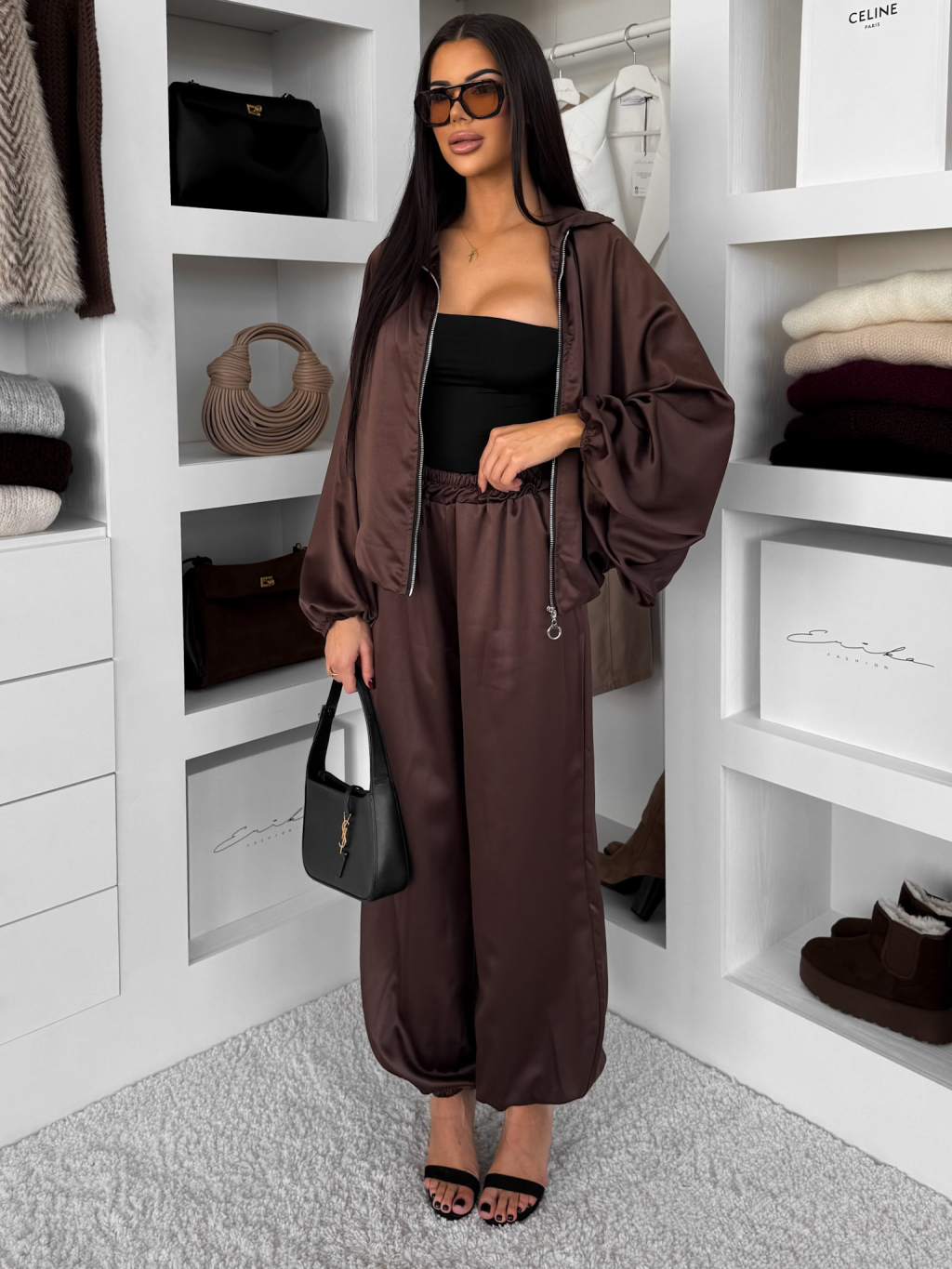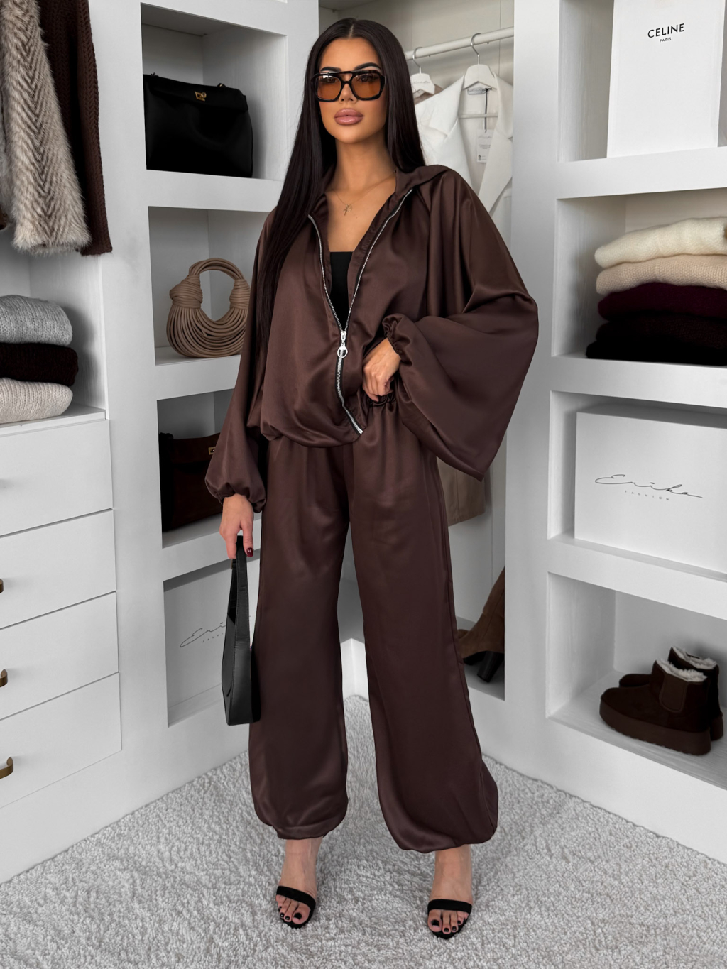 Hnědá stylová saténová souprava BRANYA