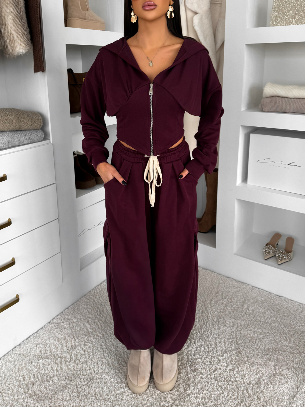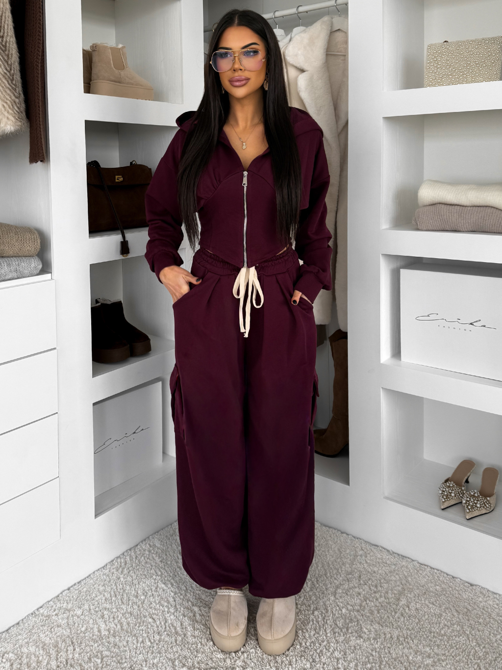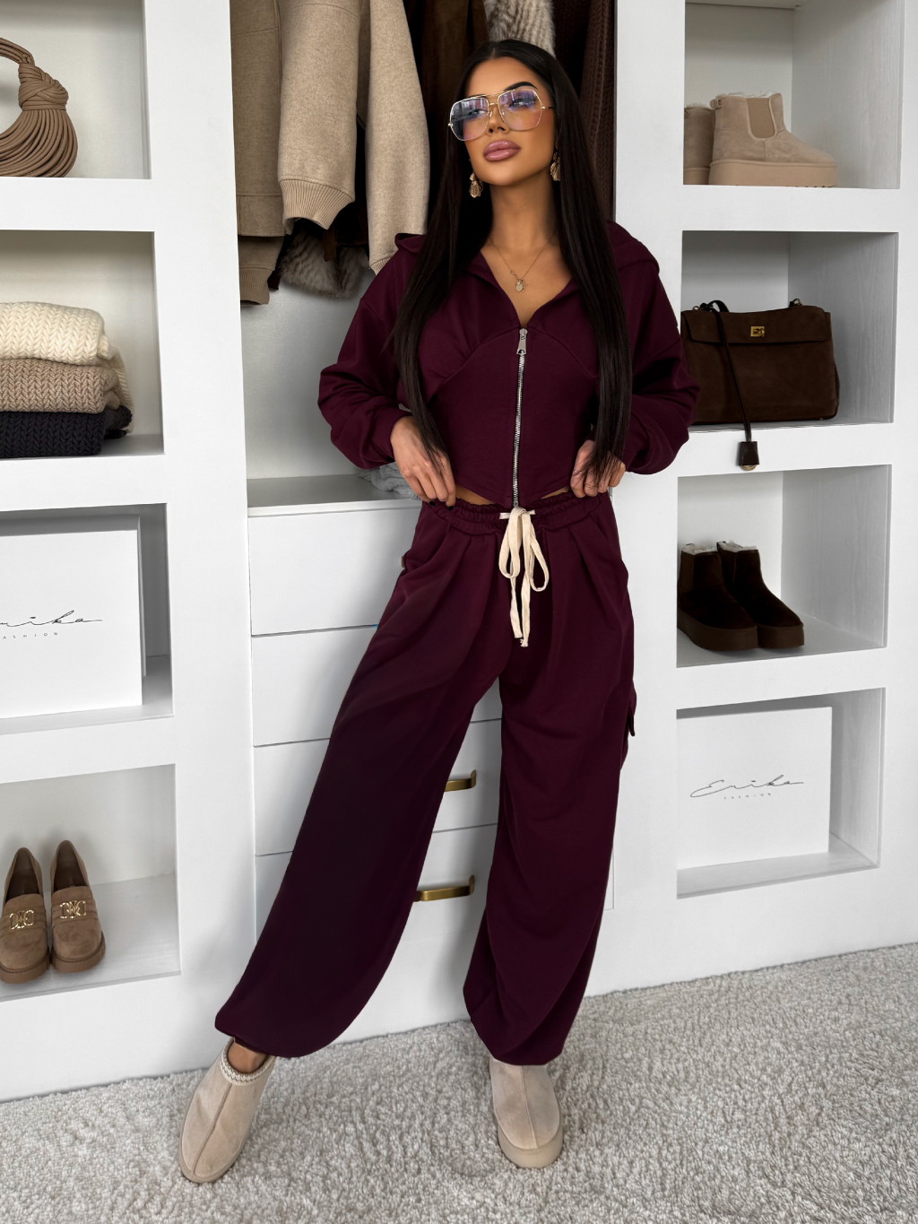 Vínová bavlněná tepláková teplákovka souprava WENARI