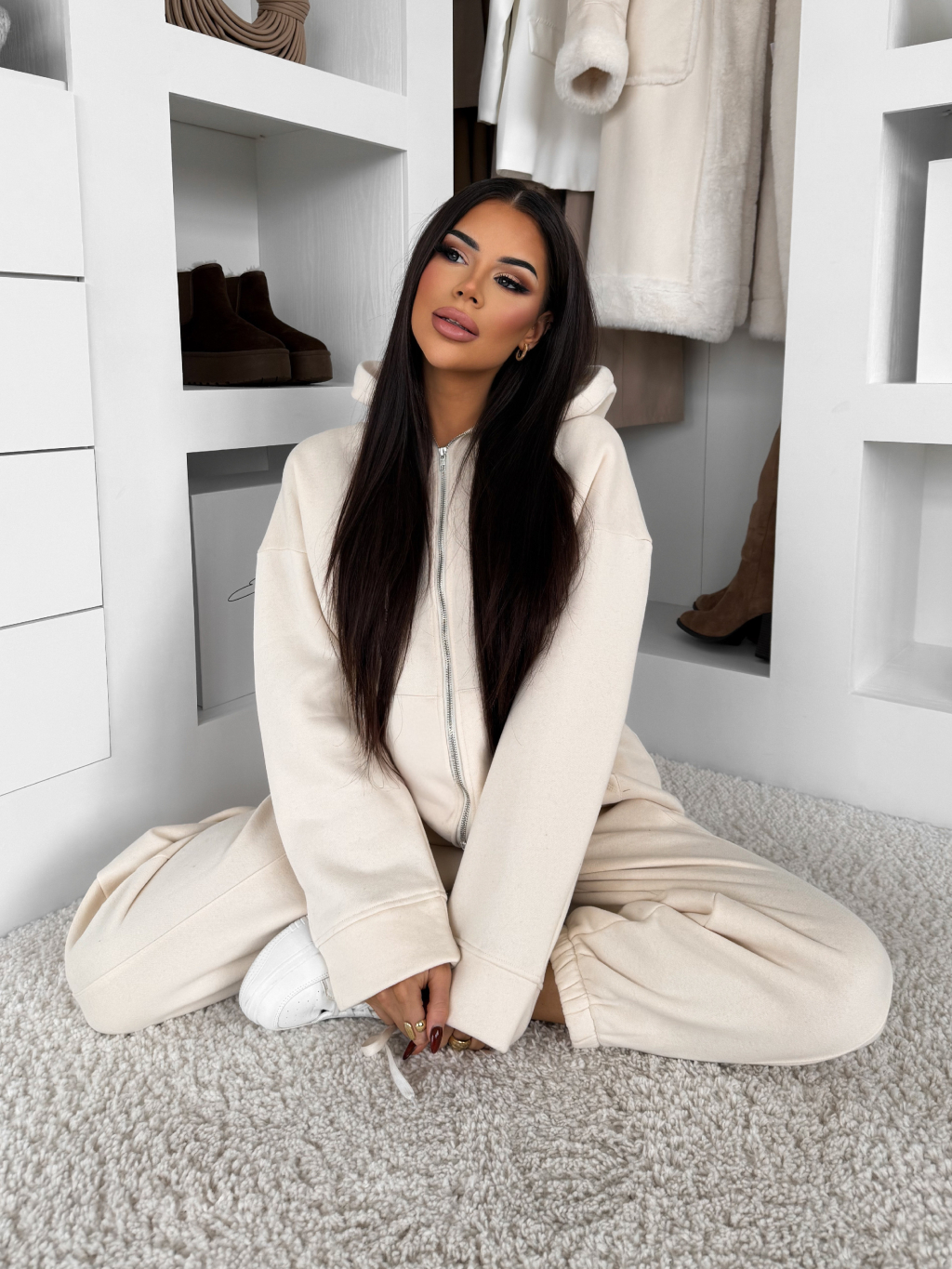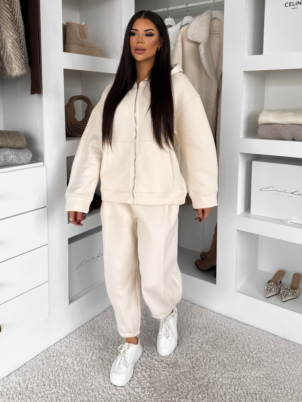 Krémové bavlněné pohodlné tepláky MOTION