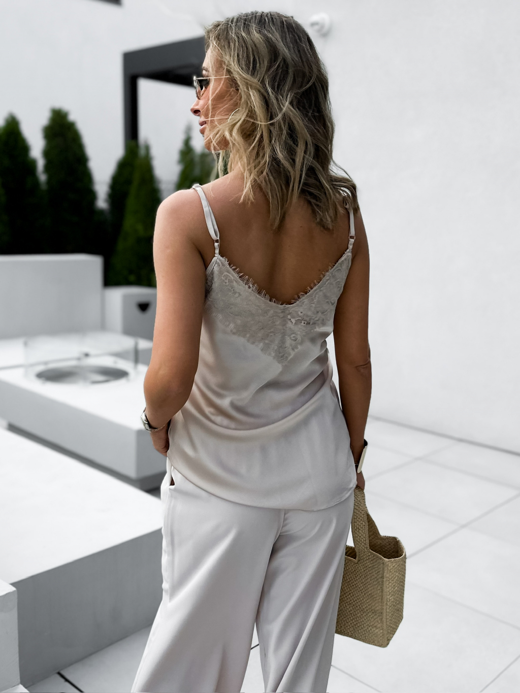 Krémové saténové tílko na ramínka FIONELATIS s krajkou