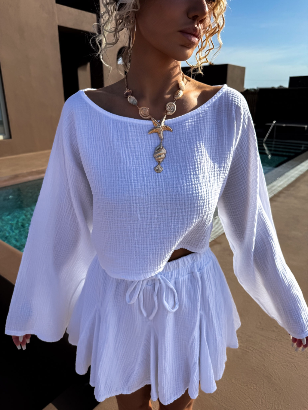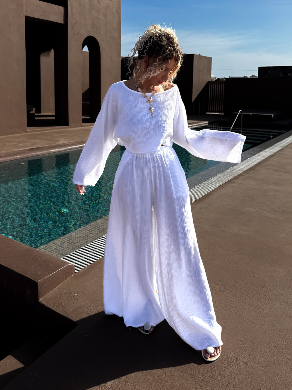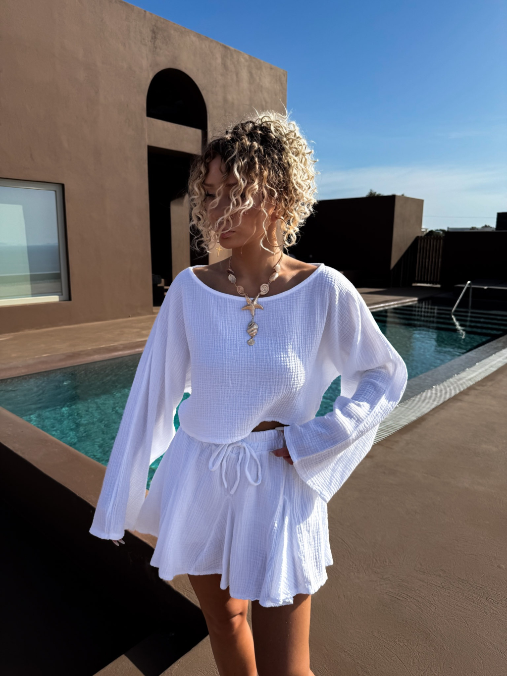 Bílý mušelínový široký top VHAGAR s dlouhým rukávem