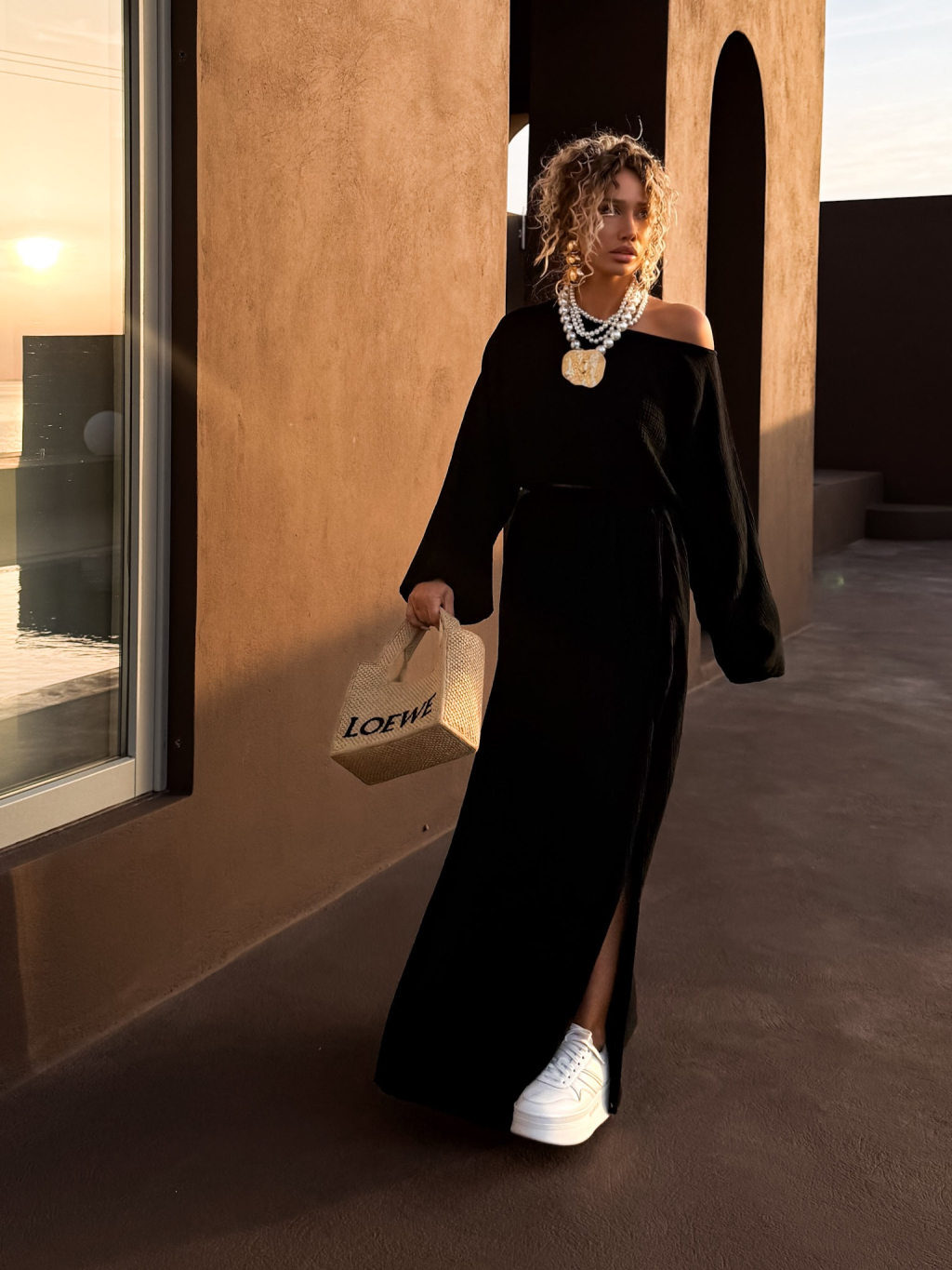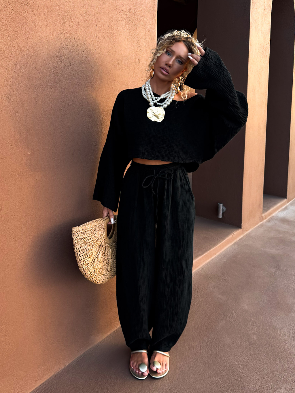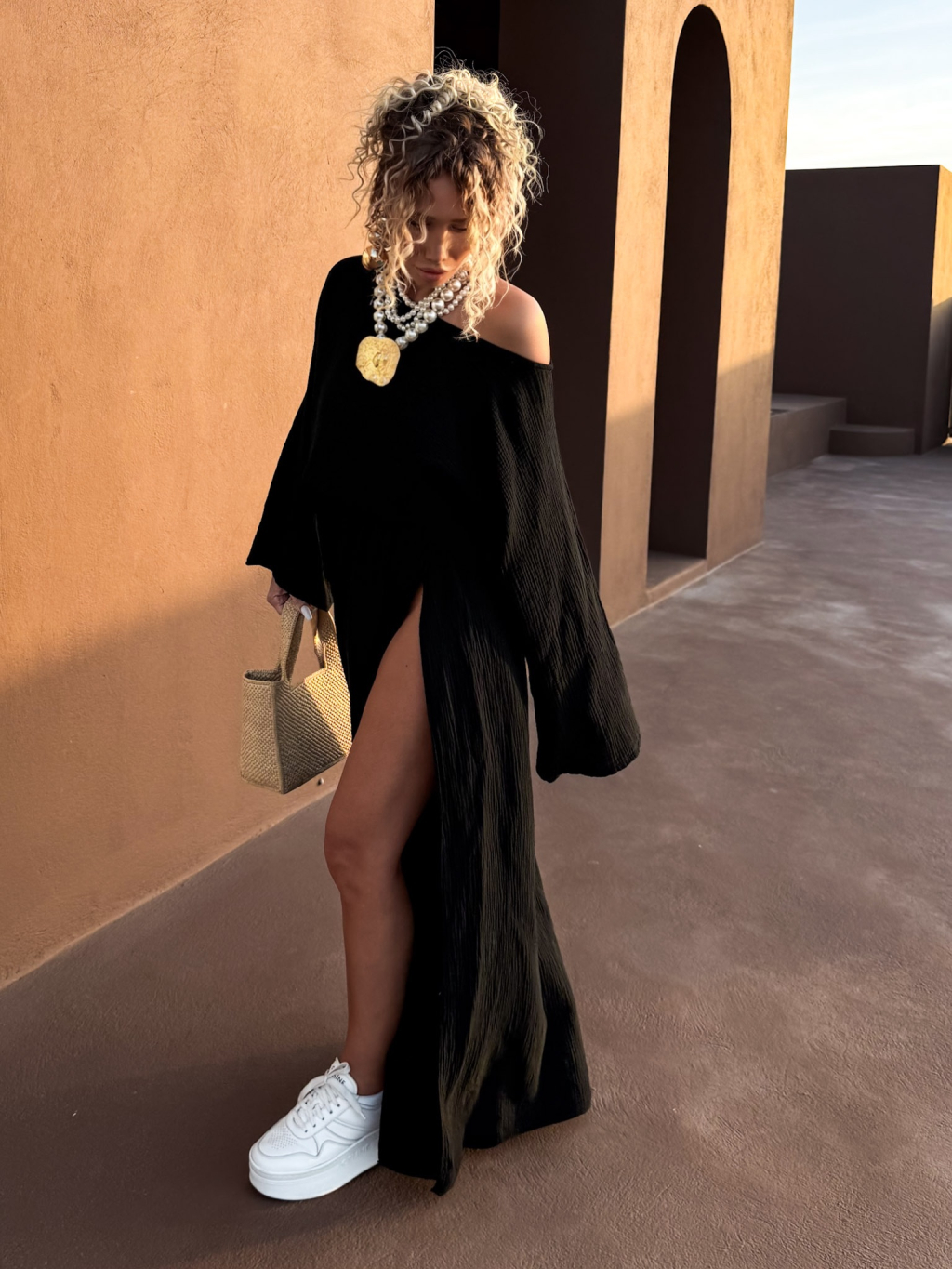 Černý mušelínový letní top VHAGAR s dlouhým rukávem