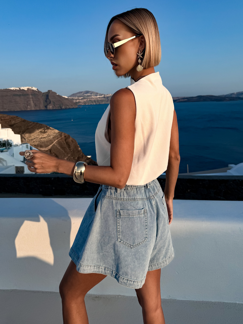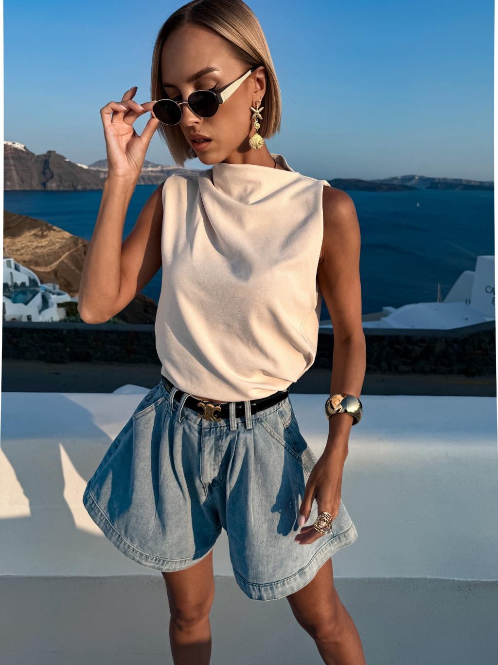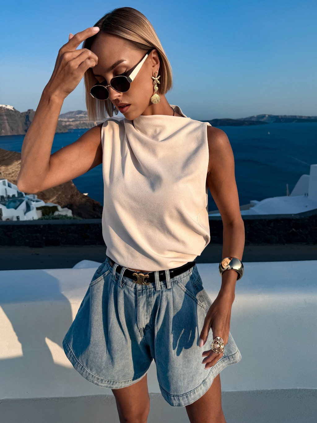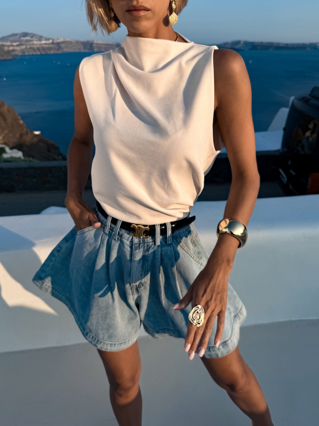 Krémový řasený elegantní top BALEFIRE