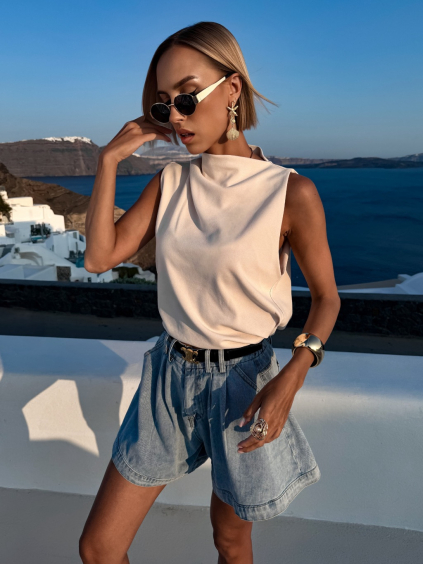 Krémové flitrované elegantní tílko FENILO na ramínka