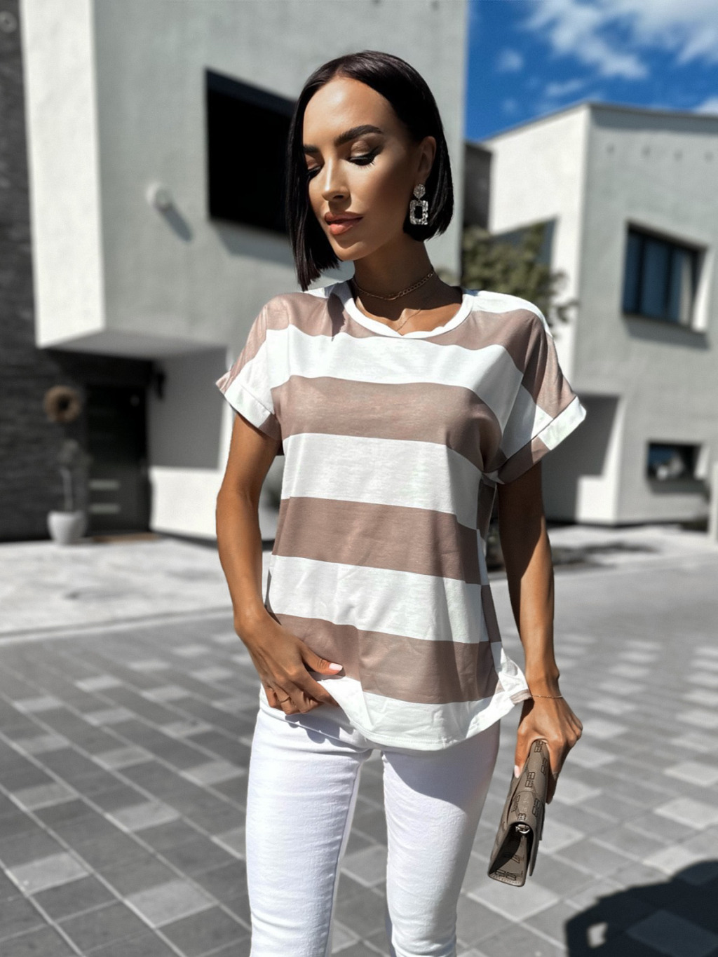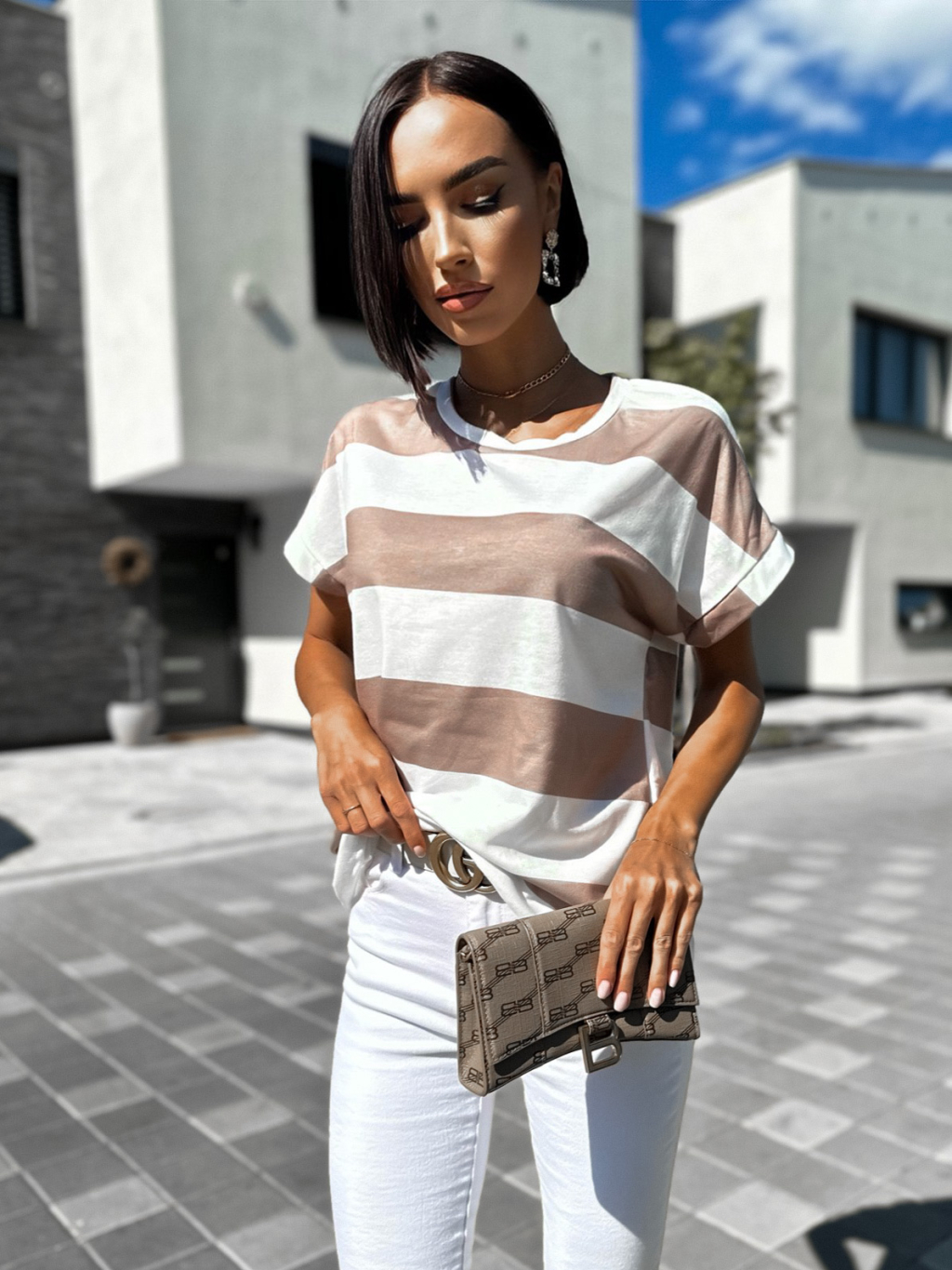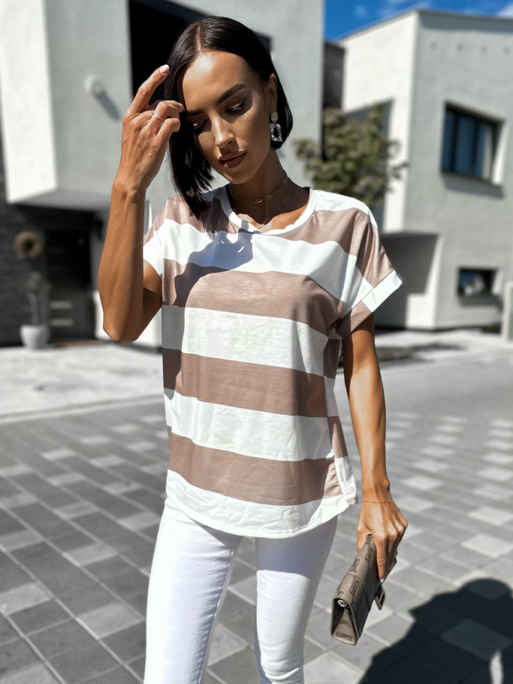 Béžové tričko NAVYTES s pruhy
