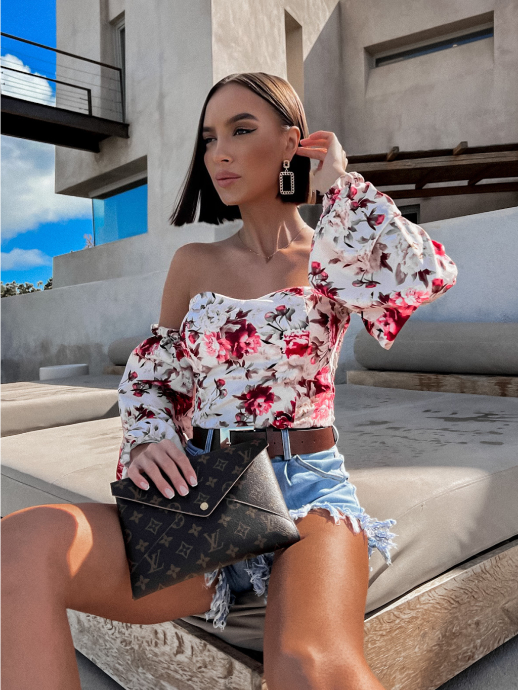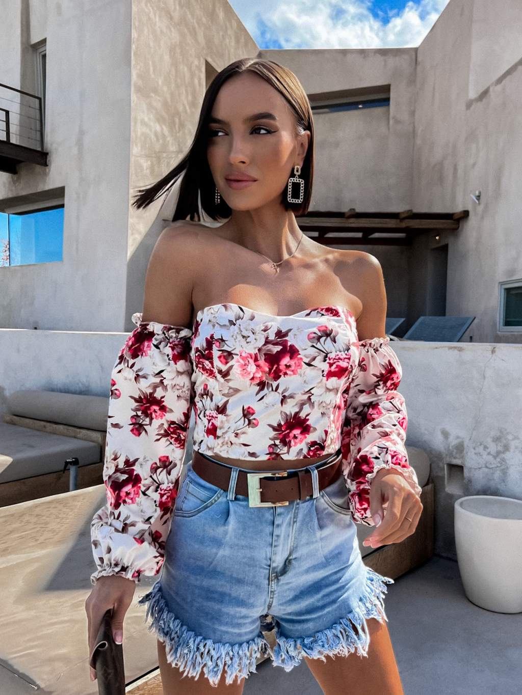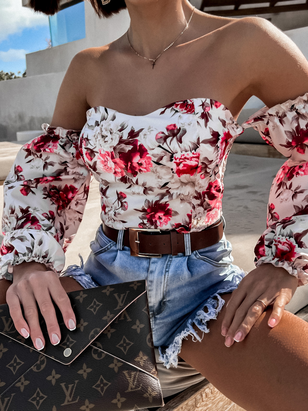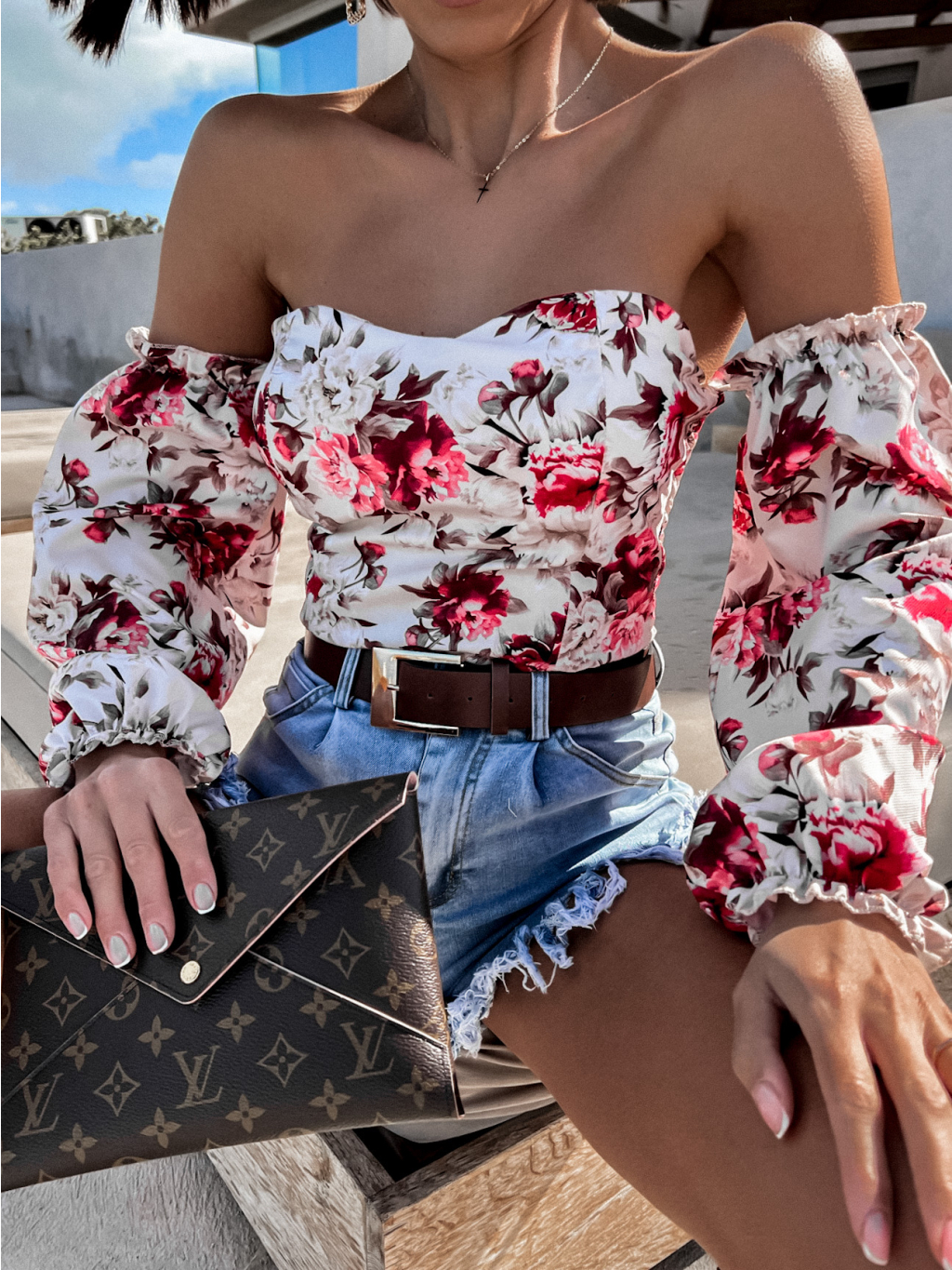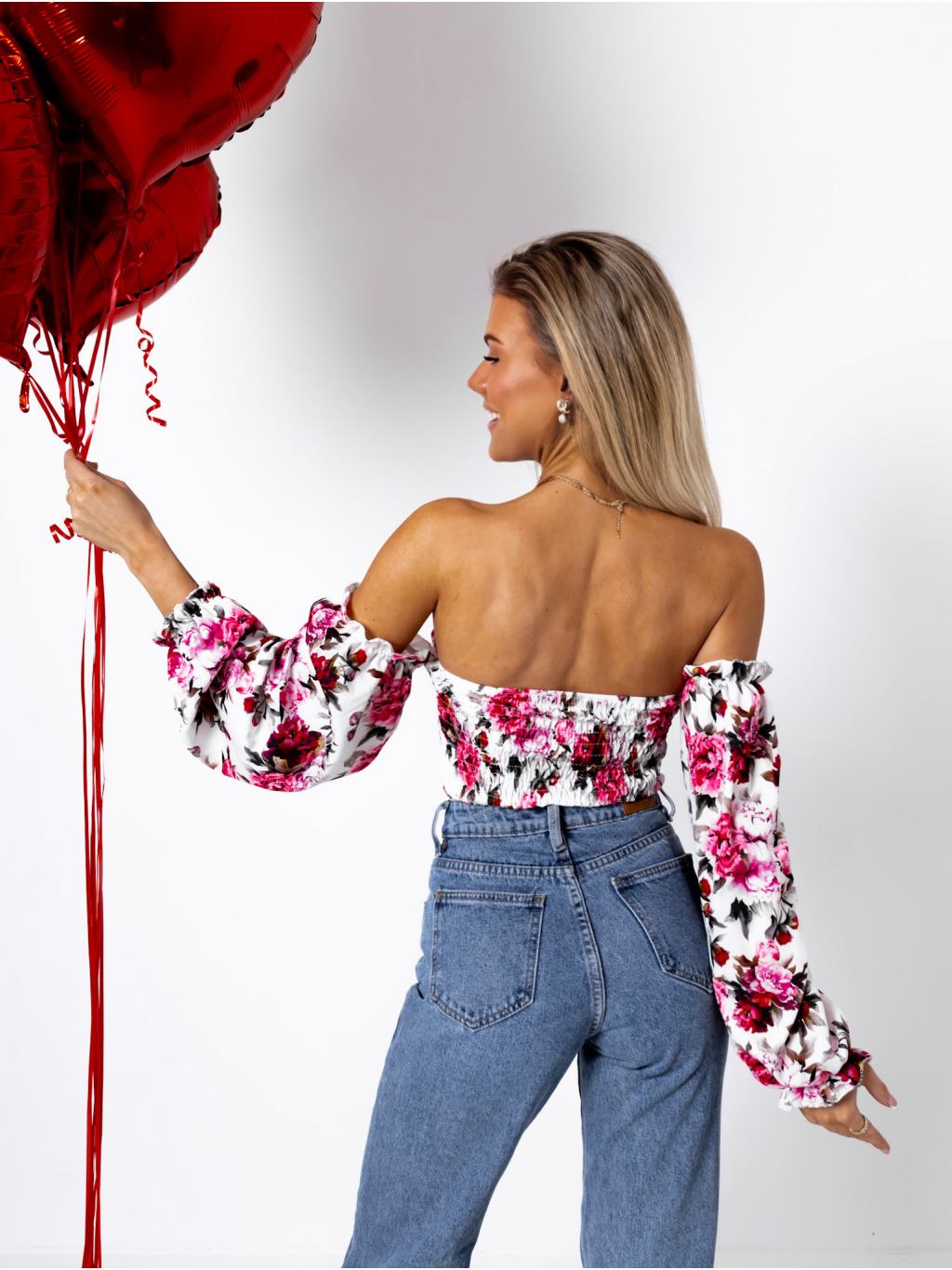 Béžový květovaný elegantní top LATERAL