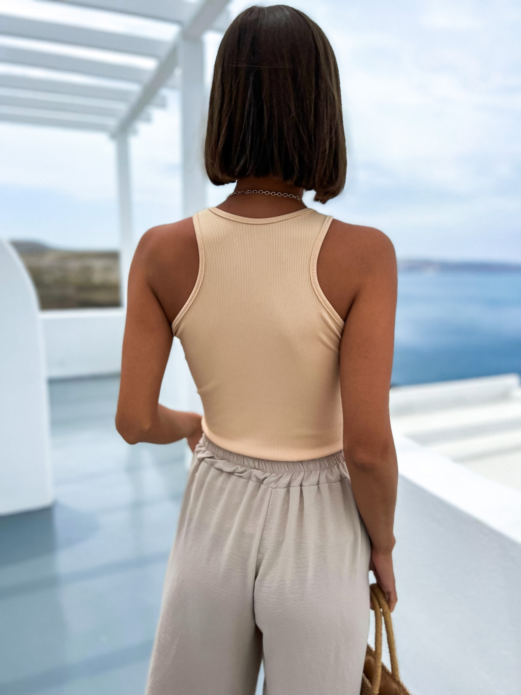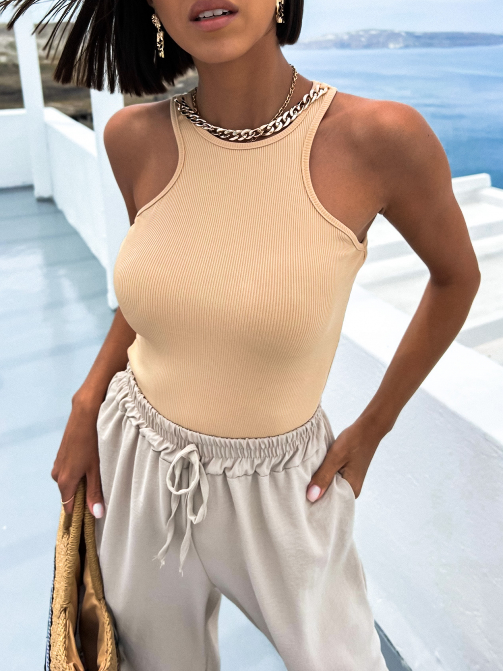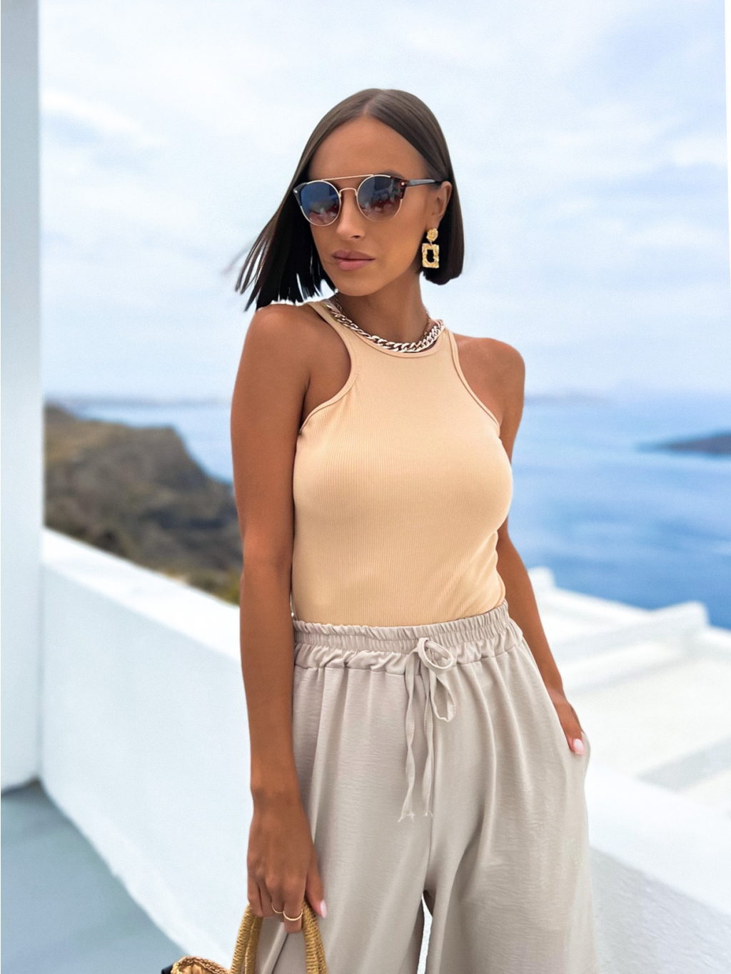 Béžový žebrovaný top PEACHi se zlatým řetízkem