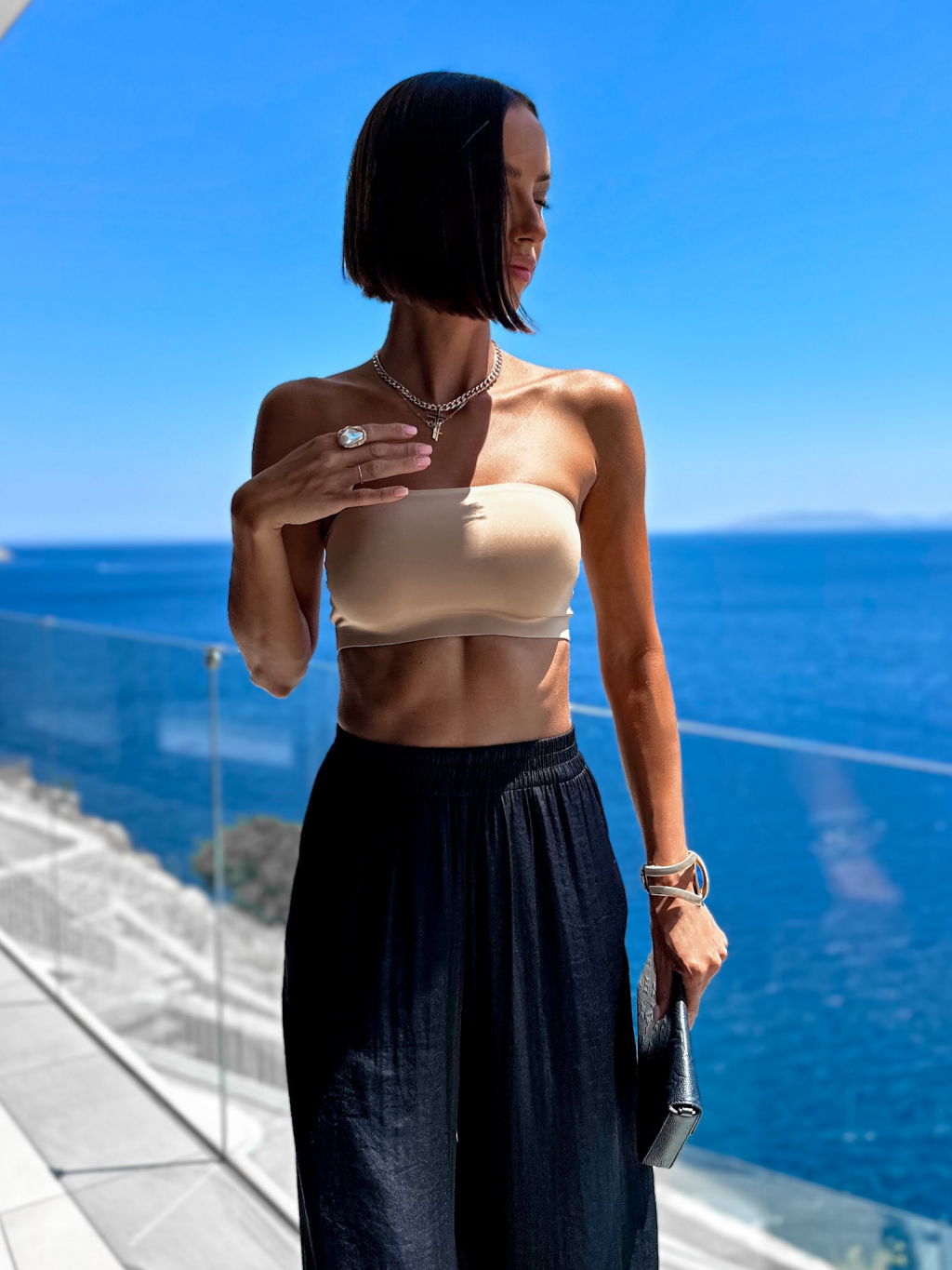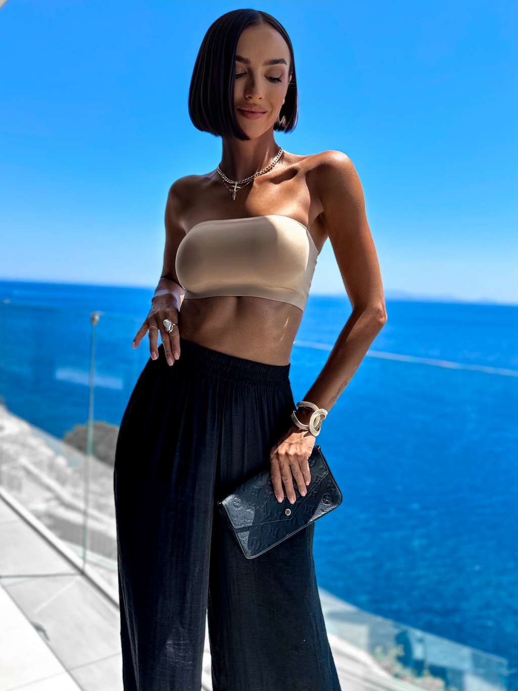 Béžový zpevňující crop top TESEO