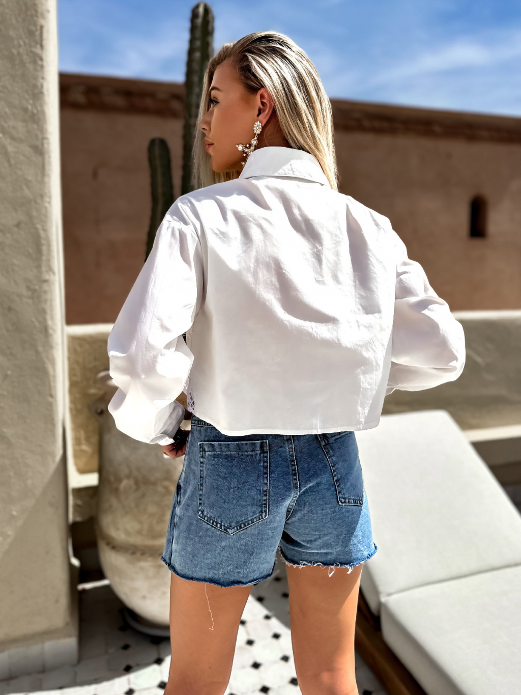 Bílá bavlněná krátká košile DINSKY s krajkou