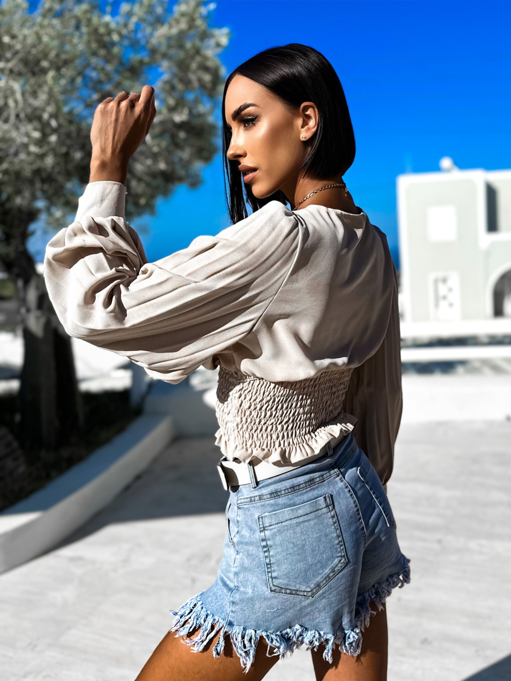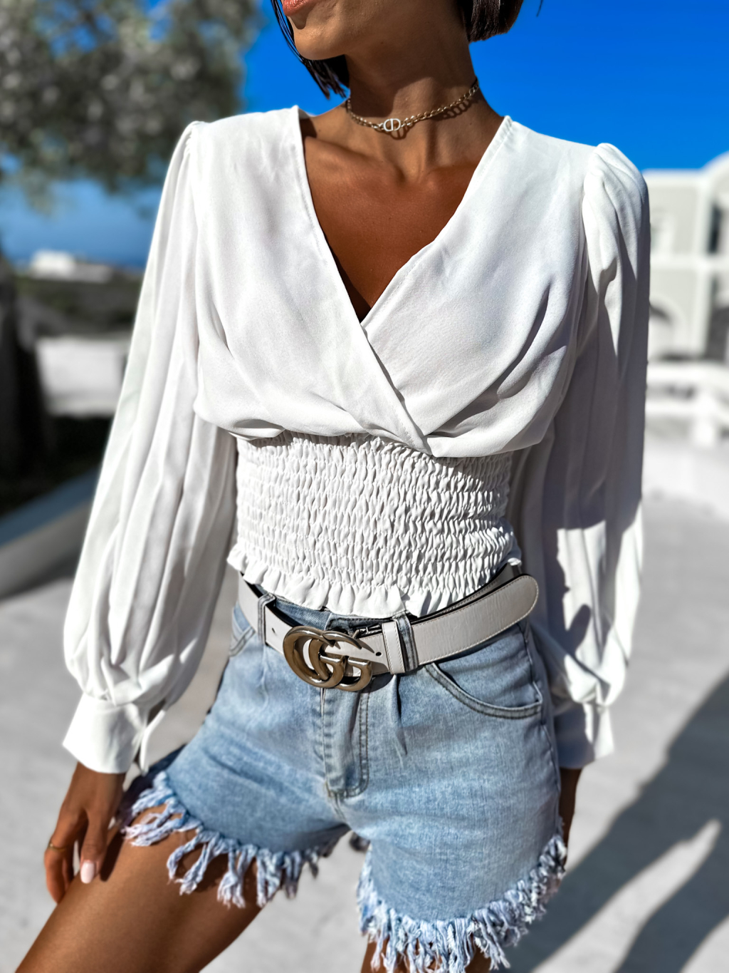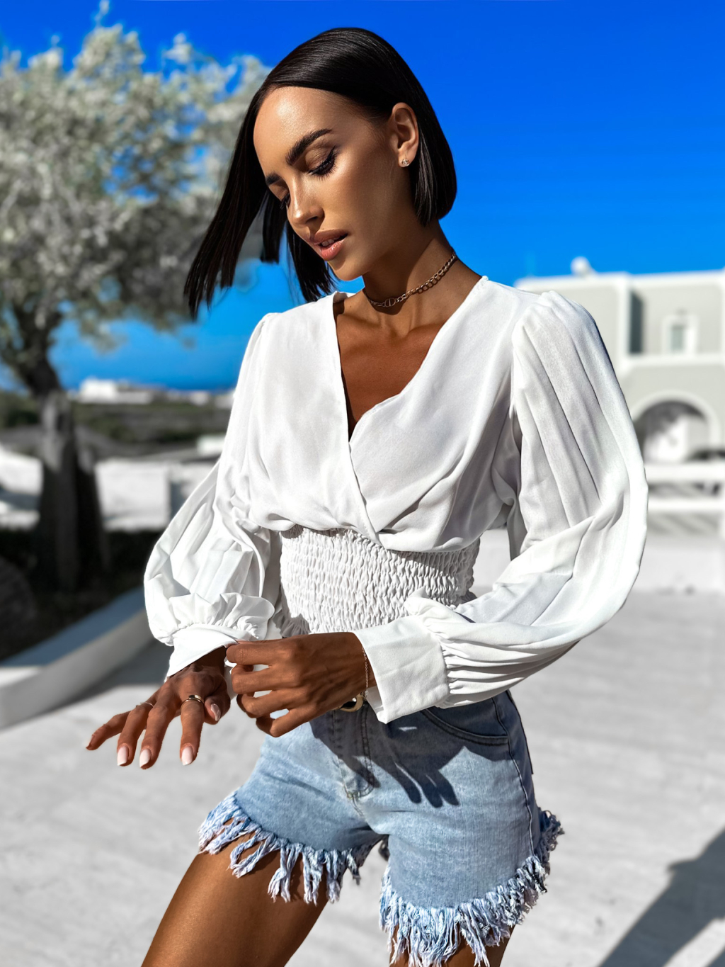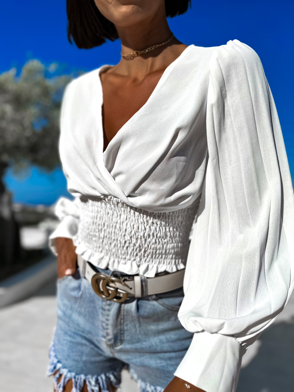 Bílá elegantní halenka FONETY s dlouhým rukávem