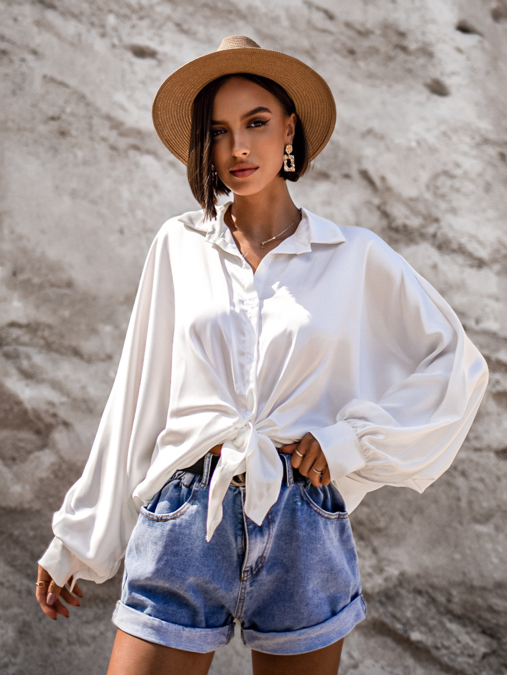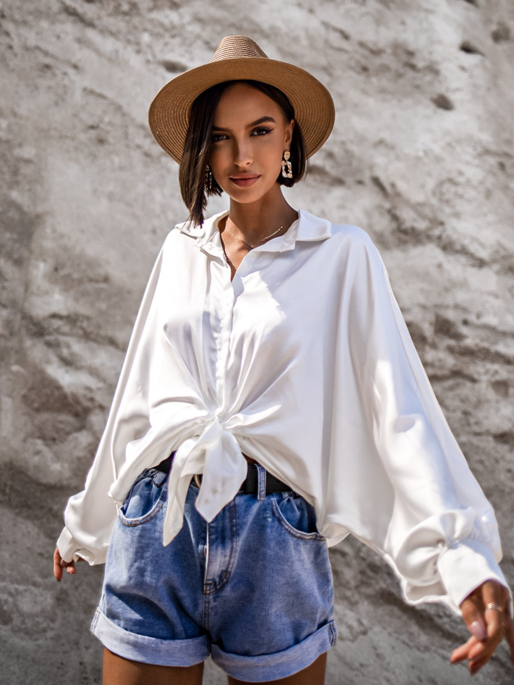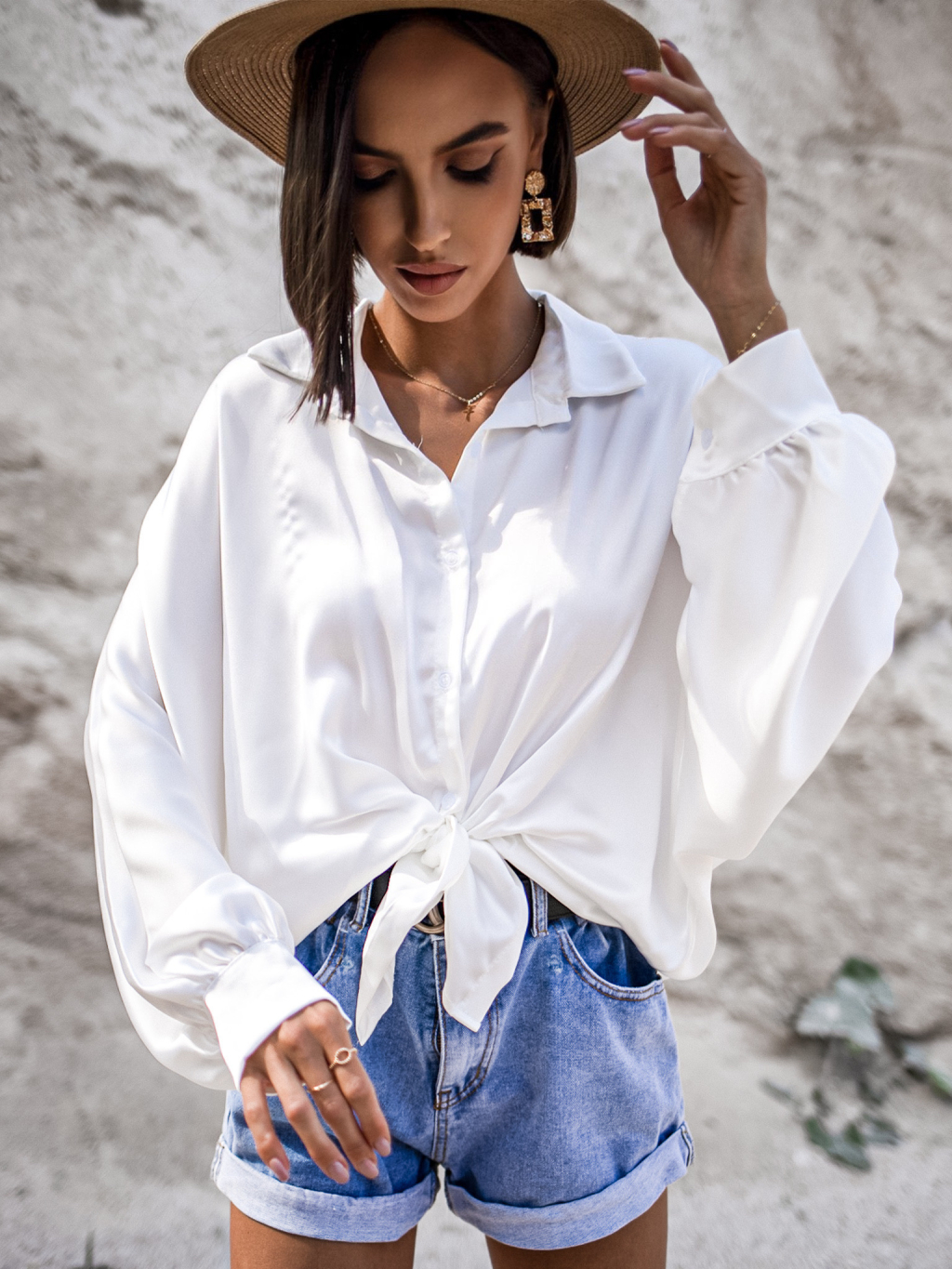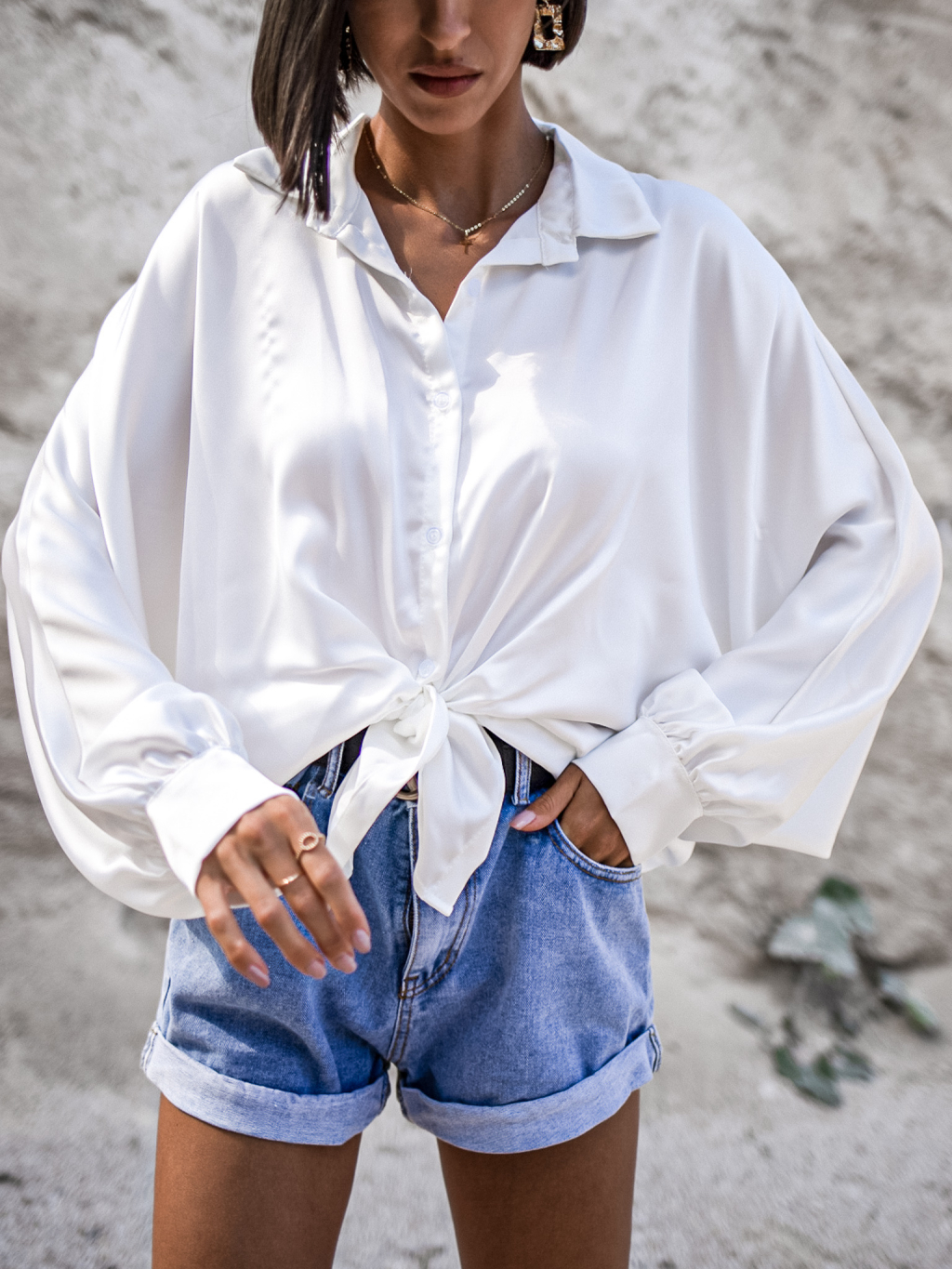 Bílá lesklá elegantní košile SCORPION se zavazováním