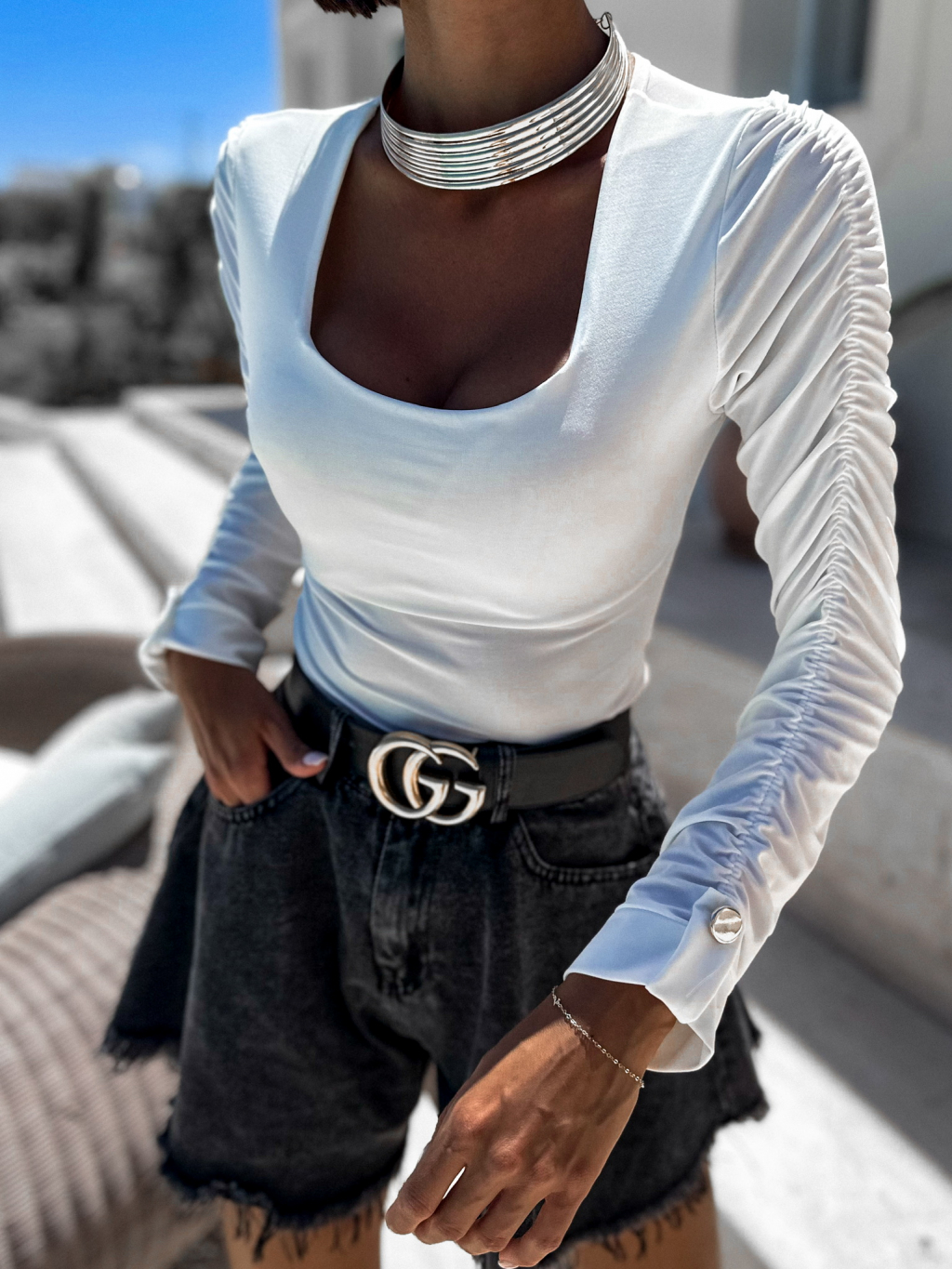 Bílé elegantní body RIGOLDE s řasením
