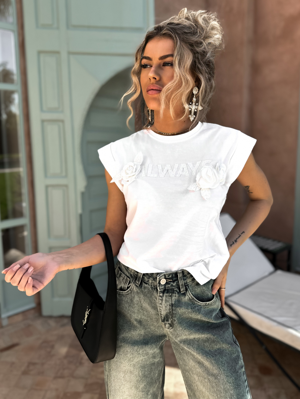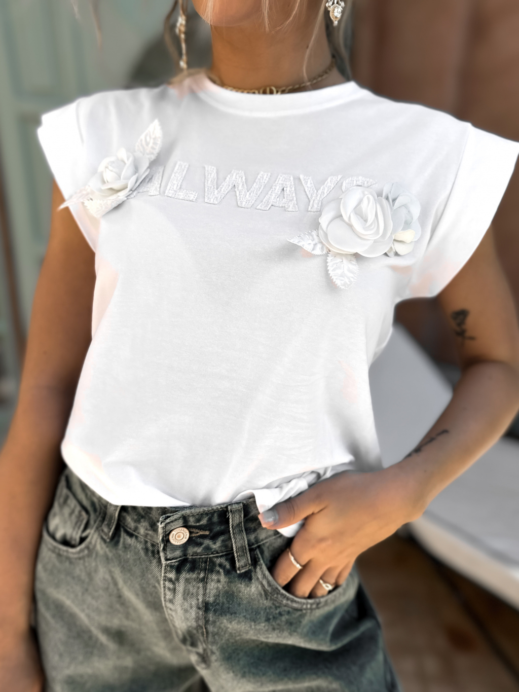 Bílé elegantní tričko OLWEYS s nápisem