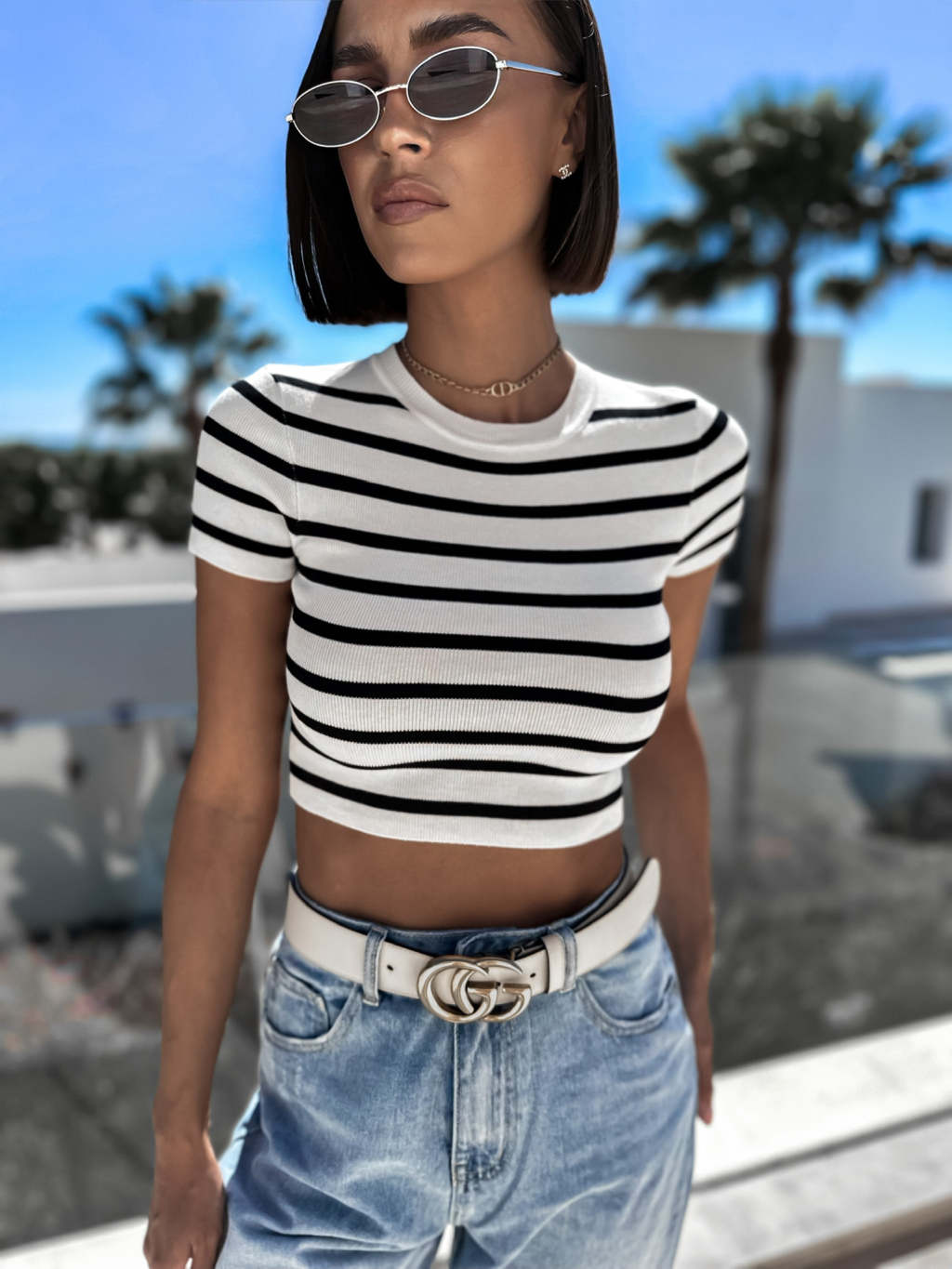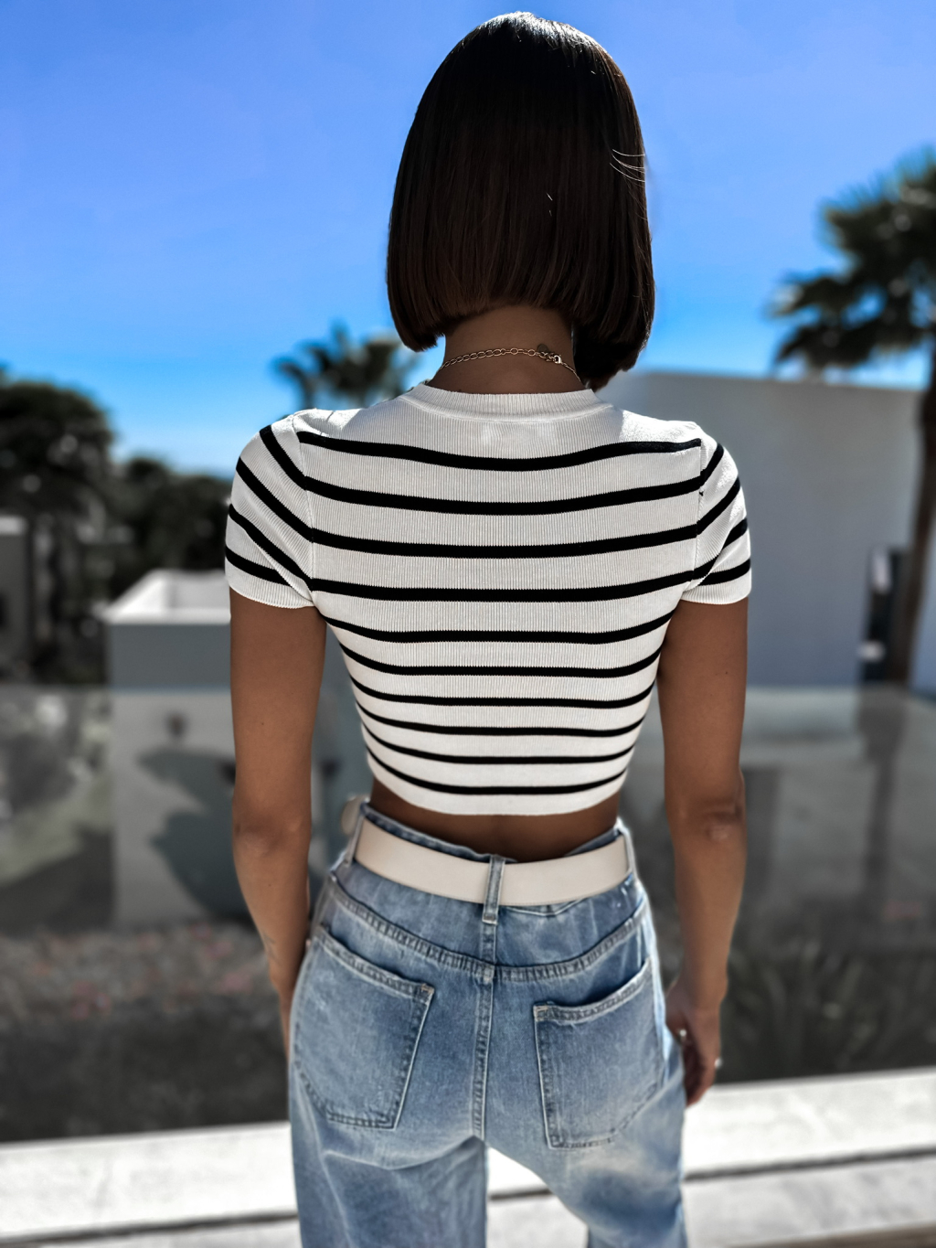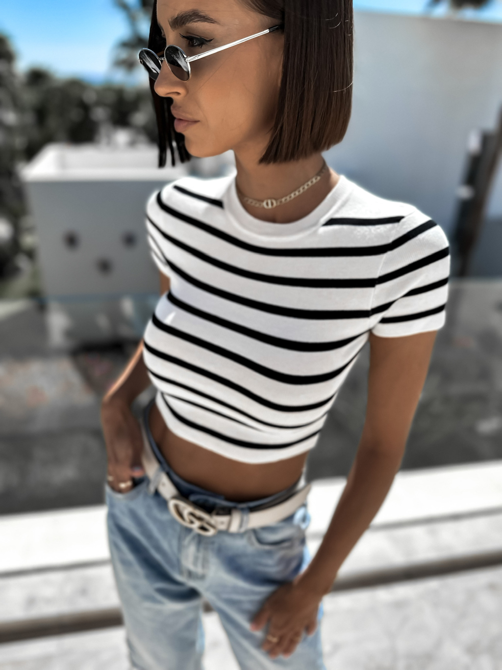 Bílé tričko MYLAS s černými pruhy
